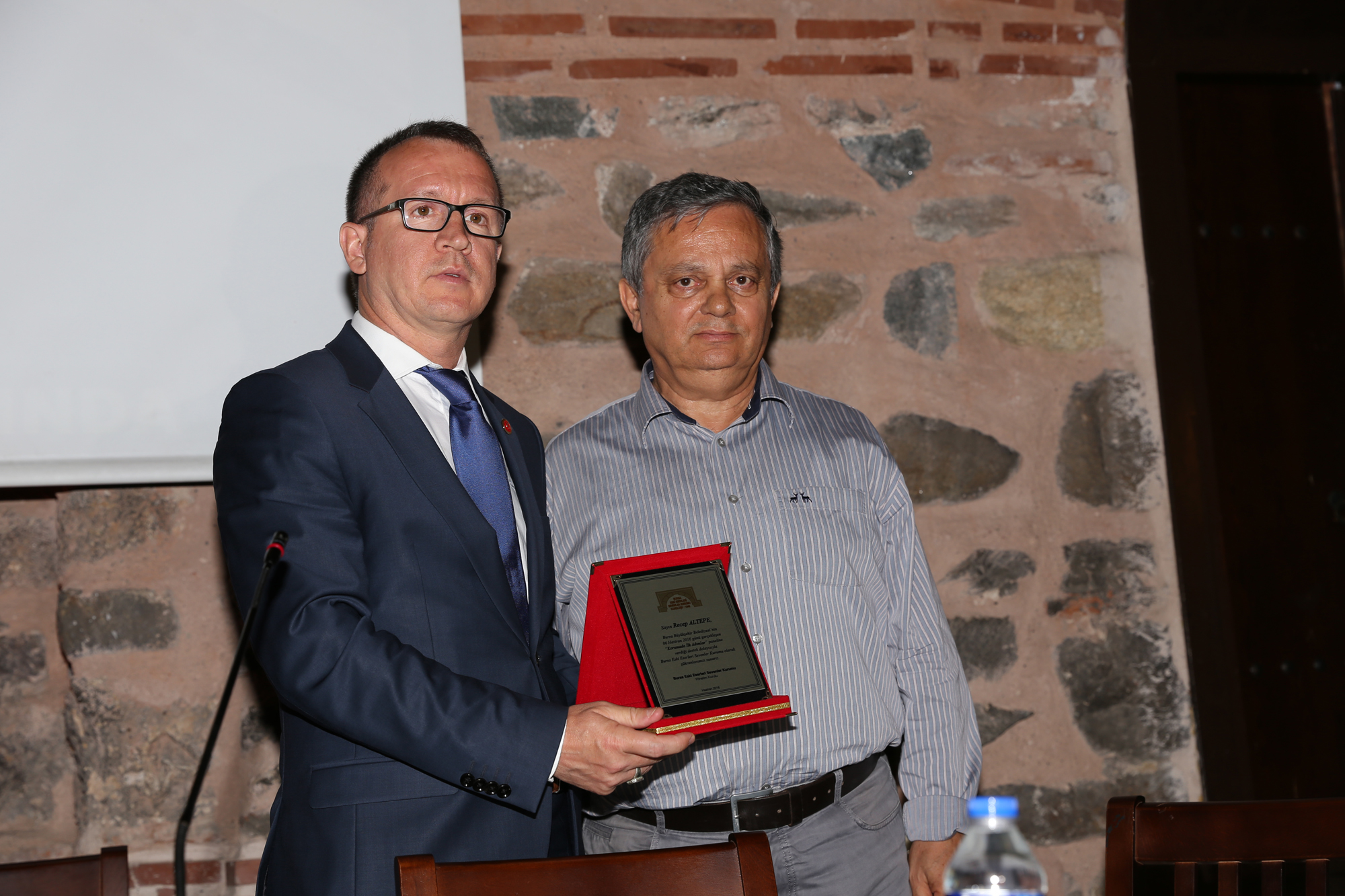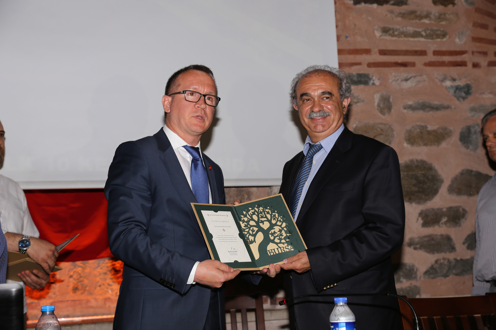 Bursa Eski Eserleri Sevenler Kurumu Başkanı Zafer Ünver de Büyükşehir Belediyesi’nin tarihi eserlere olan duyarlılığı nedeniyle Karlık’a teşekkür plaketi verdi.