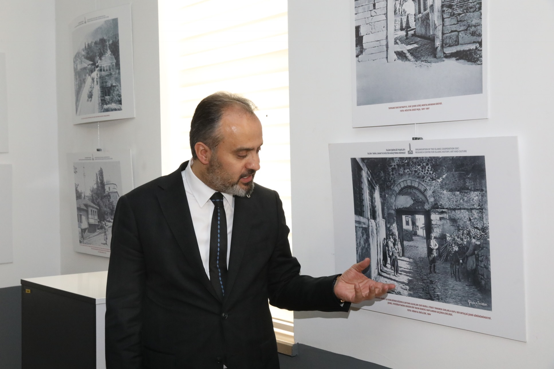 Vakıf Kültürü Müzesi’nde İzlenime sunulan ve Büyükşehir Belediye Başkanı Alinur Aktaş’ın da dikkatle incelediği ‘IRCICA Arşivlerinde ve Sultan II. Abdülhamid Han Albümlerinden Seçilmiş Tarihi Fotoğraflarla Bursa Sergisi’ yoğun ilgi görüyor.