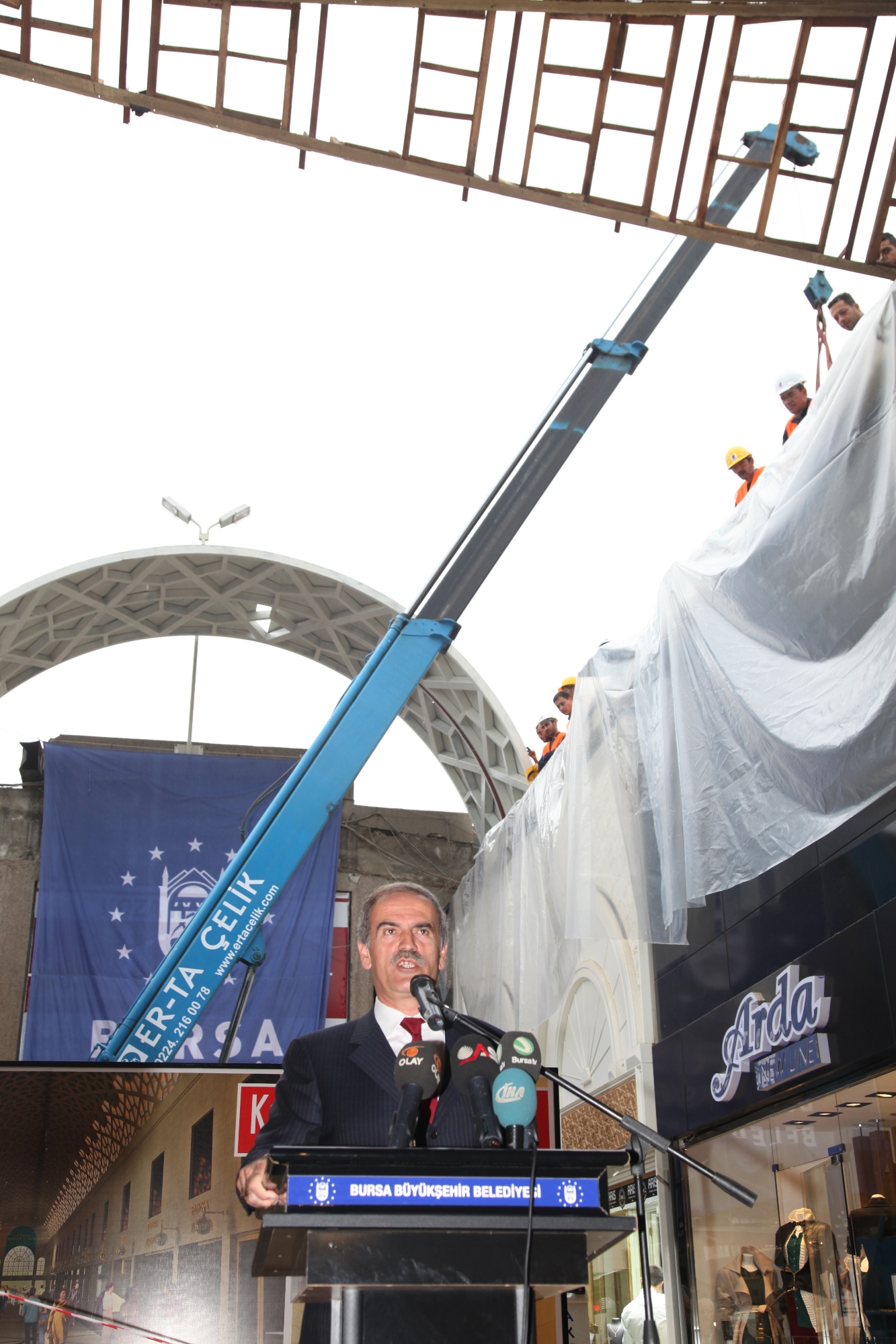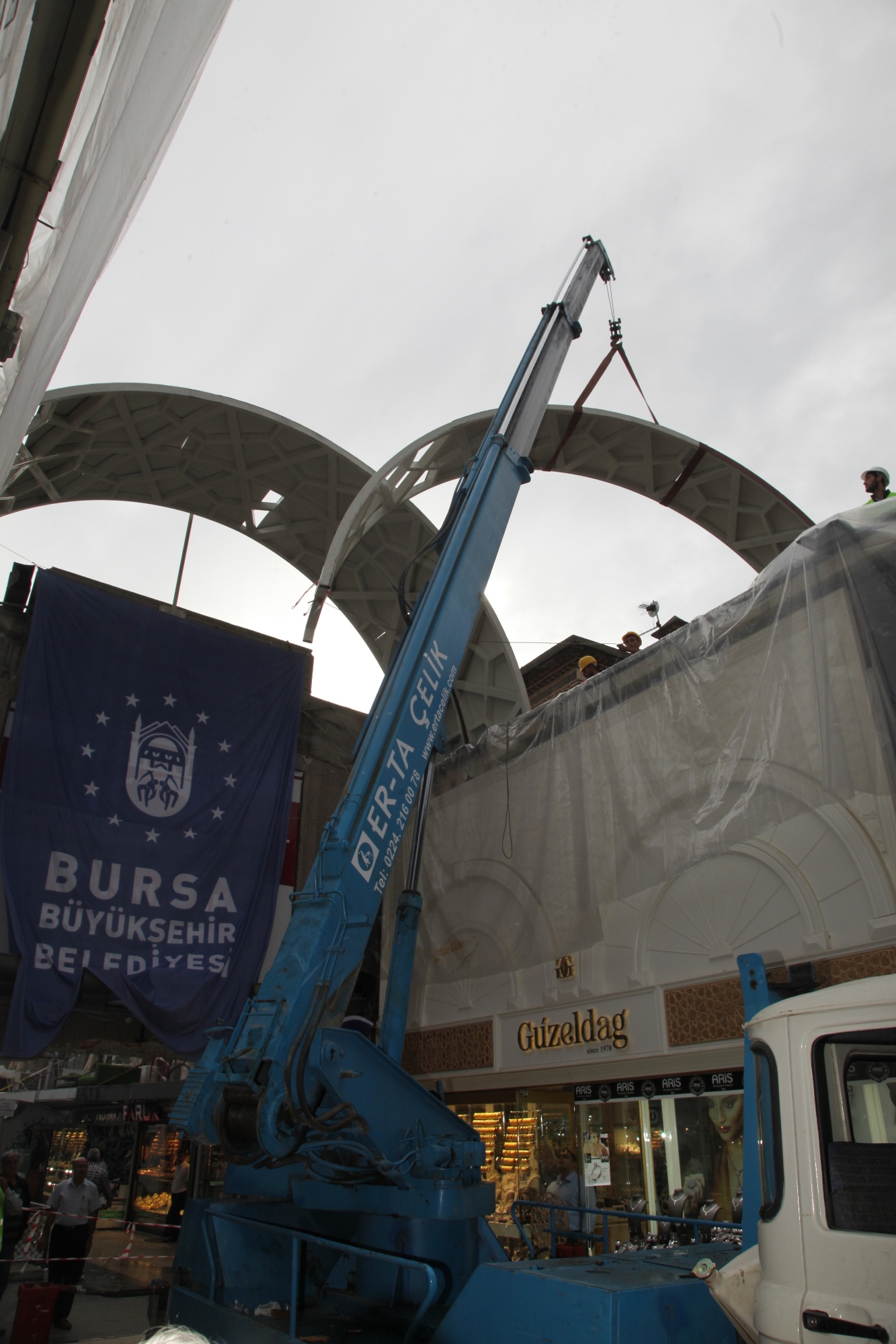 - Bursa’yı tarihi değerleriyle ve kültürel mirasıyla geleceğe taşıyan Büyükşehir Belediyesi tarafından yaptırılan ‘Kapalı Çarşı Cephe Sağlıklaştırma ve Çatı Örtüsü Uygulama Projesi’, ilk tonozun yerleştirilmesiyle başladı.