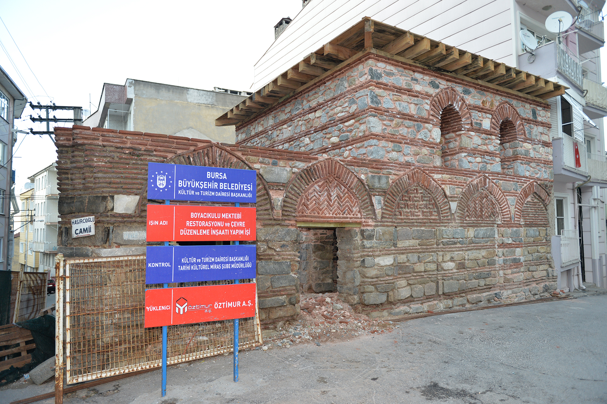 Tarihi Çarşı Hanlar Bölgesi, sultan külliyeleri ve Cumalıkızık ile Bursa’nın UNESCO Dünya Mirası Listesi’ne girmesinin ardından rotayı sokak aralarında kalmış harabe halindeki ecdat yadigarı eserlere çeviren Büyükşehir Belediyesi, bir tarihi değeri daha ilk günkü ihtişamına kavuşturuyor. Namazgah Mahallesi’nde bakımsızlık nedeniyle harabeye dönen, sadece 1 metre yüksekliğinde dış duvarları günümüze ulaşan Boyacıkulu Mektebi de bu kapsamda ilk günkü orijinal haline kavuşturuyor. 1520’li yıllarda Hoca Sinan adlı bir tüccar tarafından yaptırılan ve yıllarda eğitime hizmet veren tarihi yapıda restorasyon çalışmaları hızla sürüyor.