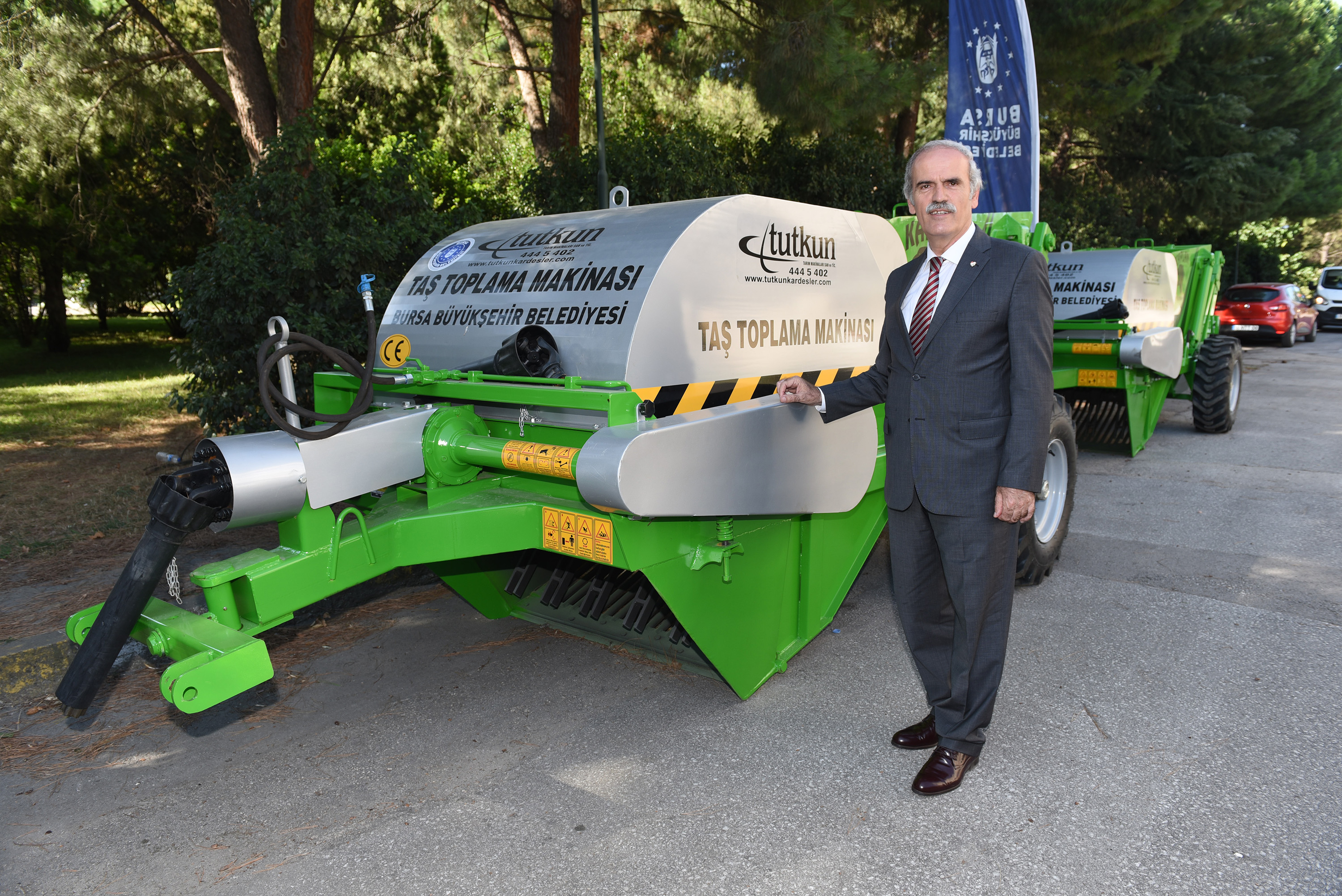 - BURSA BÜYÜKŞEHİR BELEDİYESİ HEM ÜRETİM KALİTESİNİN ARTIRILMASI HEM DE HASAT DÖNEMLERİNDE YAŞANAN KAZALARIN ORTADAN KALDIRILMASI AMACIYLA ÇİFTÇİLERE MAKİNE DESTEĞİ VERMEYE DEVAM EDİYOR.