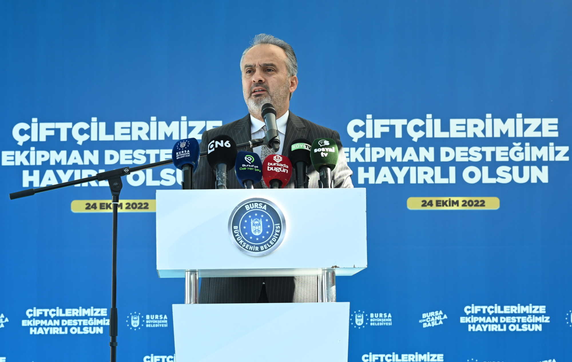 Bursa yüzölçümünün yüzde 75’inin orman ve tarım alanlarından oluştuğunu ve Bursa’nın çok iyi bir tarım şehri olduğunu belirten Büyükşehir Belediye Başkanı Alinur Aktaş, gerçeği bilip ona göre hareket etmek gerektiğini söyledi. Bursa’nın bereketli topraklara sahip olduğunu kaydeden Başkan Aktaş, “Övünmek yetmez, hakkını vermek lazım. Bunun için de bilgi, birikim ve tecrübenin yanında, makine ve ekipman gibi donanımlarla üreticimizin desteklenmesi gerekiyor. Bursa Büyükşehir Belediyesi olarak Tarım Peyzaj A.Ş. marifetiyle, Kırsal Hizmetler Daire Başkanlığı, BUSKİ Genel Müdürümüz ve HAGEL ile birlikte bunları yapmaya çalışıyoruz. Her zaman üreticinin yanında olmaya çalışıyoruz. Ürün toplama merkezlerinden ekipman desteklerine, fide-fidan dağıtımlarından arıcılık ve ipekböcekçiliğinin gelişmesine kadar her alanda destekler verdik. Bursa'nın tarımsal teknolojik altyapısının yükseltilmesi için çaba gösteriyoruz” dedi.