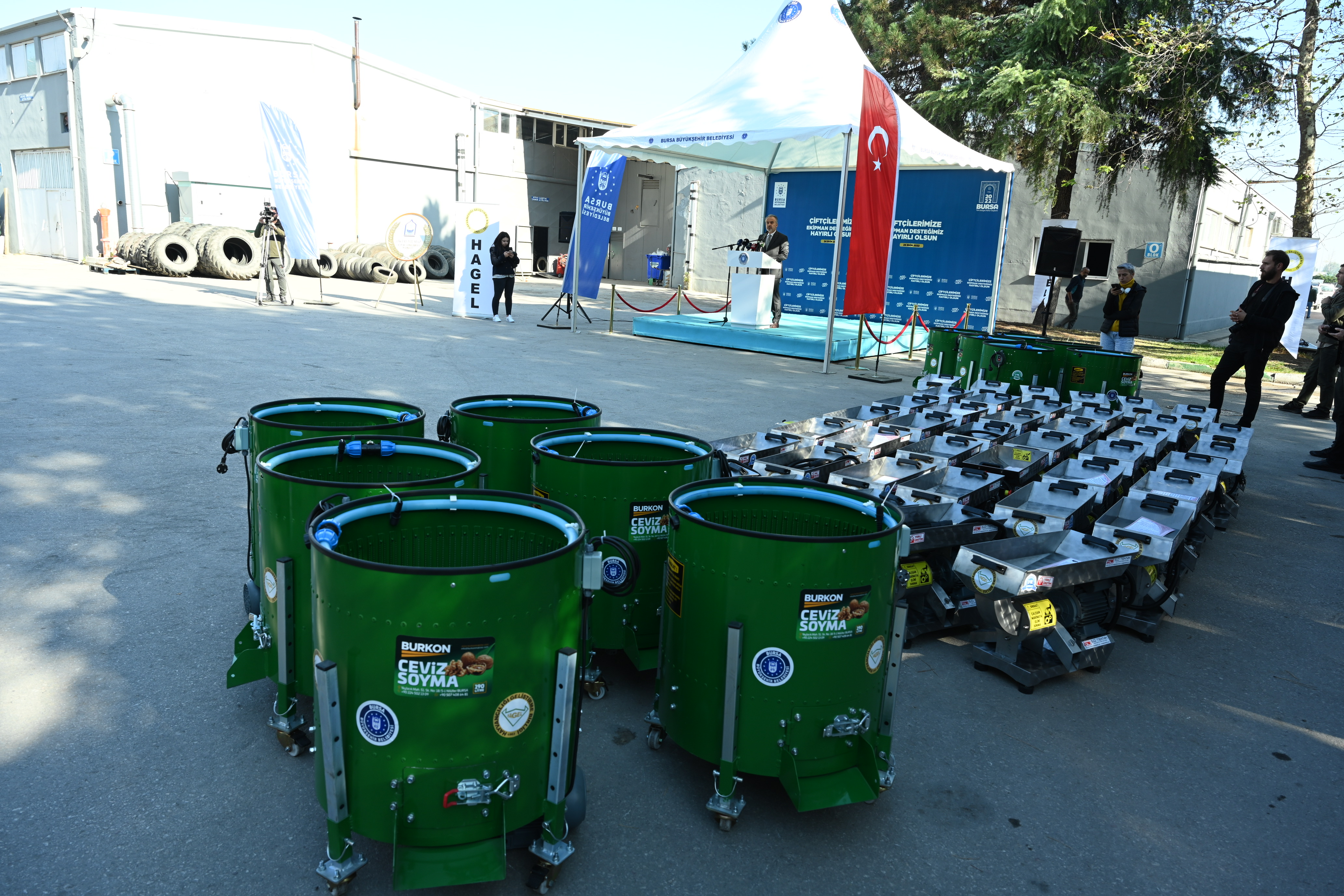 Bursa’da kırsal kalkınmayı sağlayarak köyden kente göçün önüne geçmeyi hedefleyen Büyükşehir Belediyesi, çiftçilere yönelik makine ve ekipman desteğini hız kesmeden sürdürüyor. Son alarak Mustafakemalpaşa, İznik, Keles, Nilüfer, Yenişehir, İnegöl, Orhangazi, Gürsu, Gemlik, Karacabey, Osmangazi, Mudanya, Orhaneli, Yıldırım ve Büyükorhan ilçelerindeki 81 kırsal mahalleye, ceviz soyma ve silkeleme makinesi, yem ezme makinesi, salça makinesi ve asılır çekilir merdane dağıtıldı. BUSKİ bahçesinde düzenlenen tarım makineleri dağıtım törenine, Büyükşehir Belediye Başkanı Alinur Aktaş’ın yanı sıra Orhaneli Belediye Başkanı Ali Aykurt, Bursa Milletvekili Zafer Işık, İl Tarım ve Orman Müdürü Hamit Aygül, AK Parti İl Başkanvekili Ufuk Ay, mahalle muhtarları, ziraat odalarının başkanları ve üreticiler katıldı.