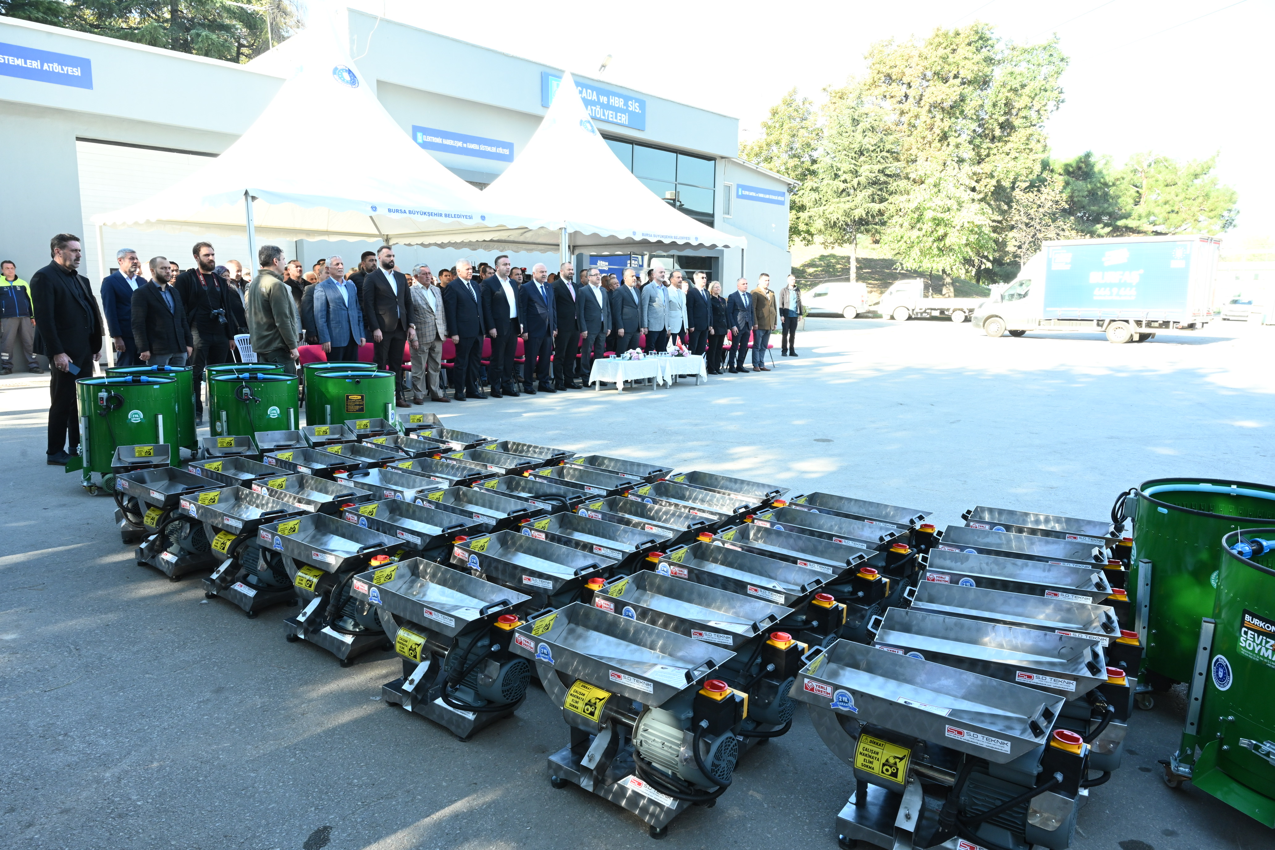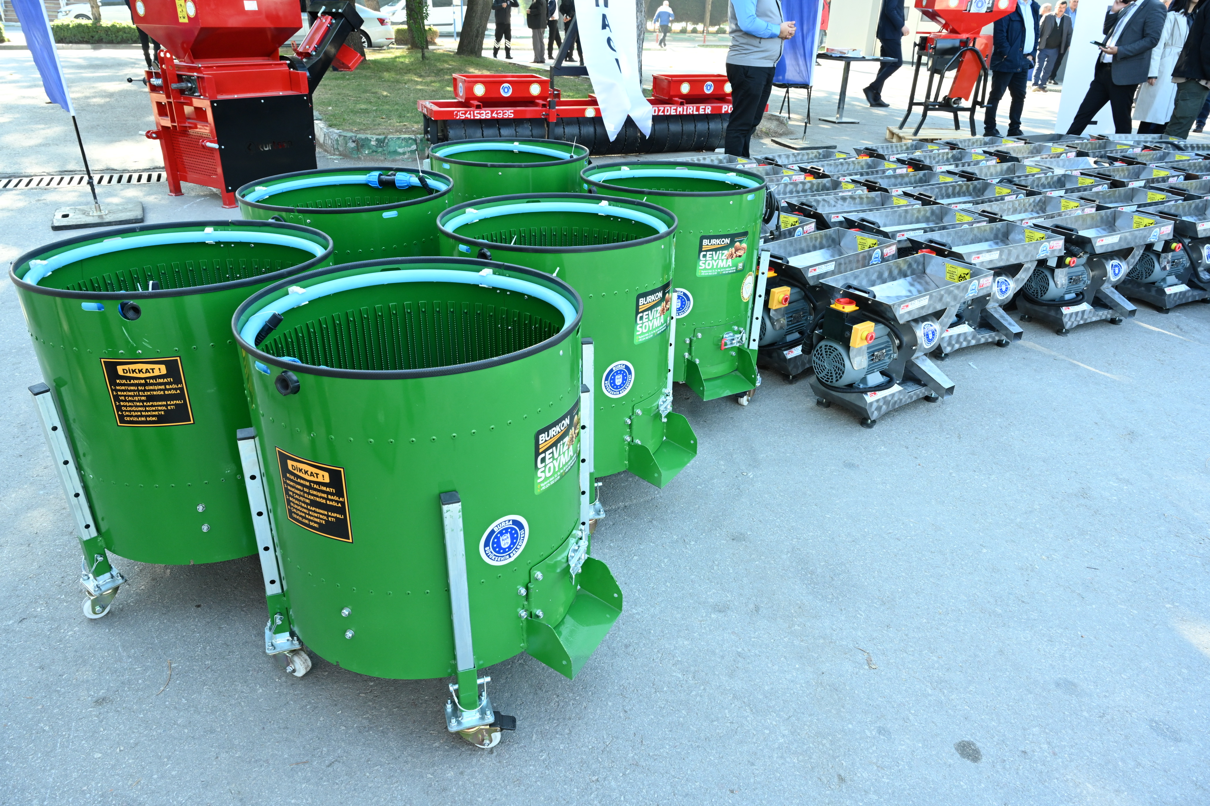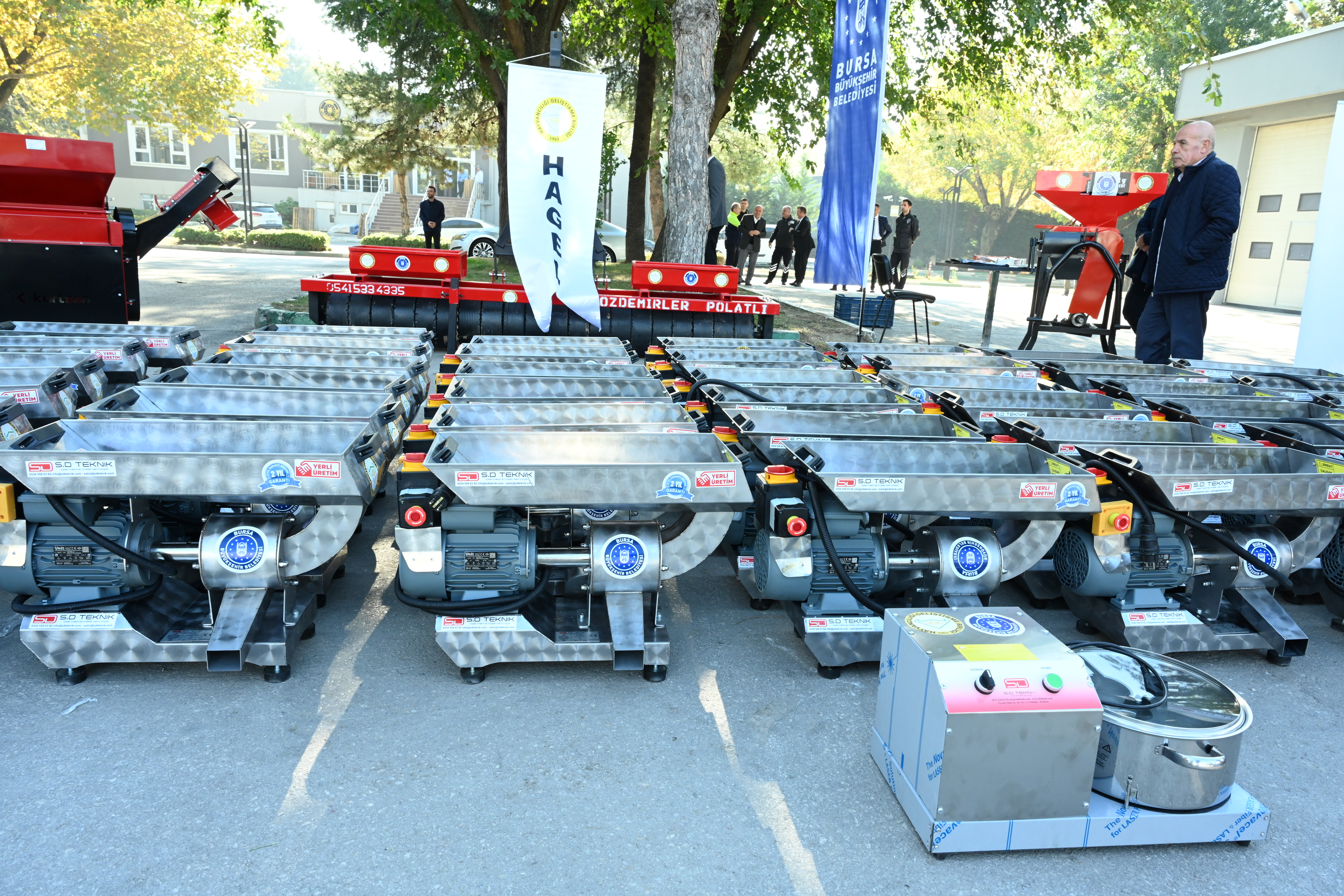 BURSA - Bursa Büyükşehir Belediyesi’nin kırsal kalkınma hedefleri doğrultusunda Bursa İli Hayvancılığı Geliştirme Birliği (HAGEL) destekleriyle temin edilen tarım makineleri törenle çiftçilere dağıtıldı.