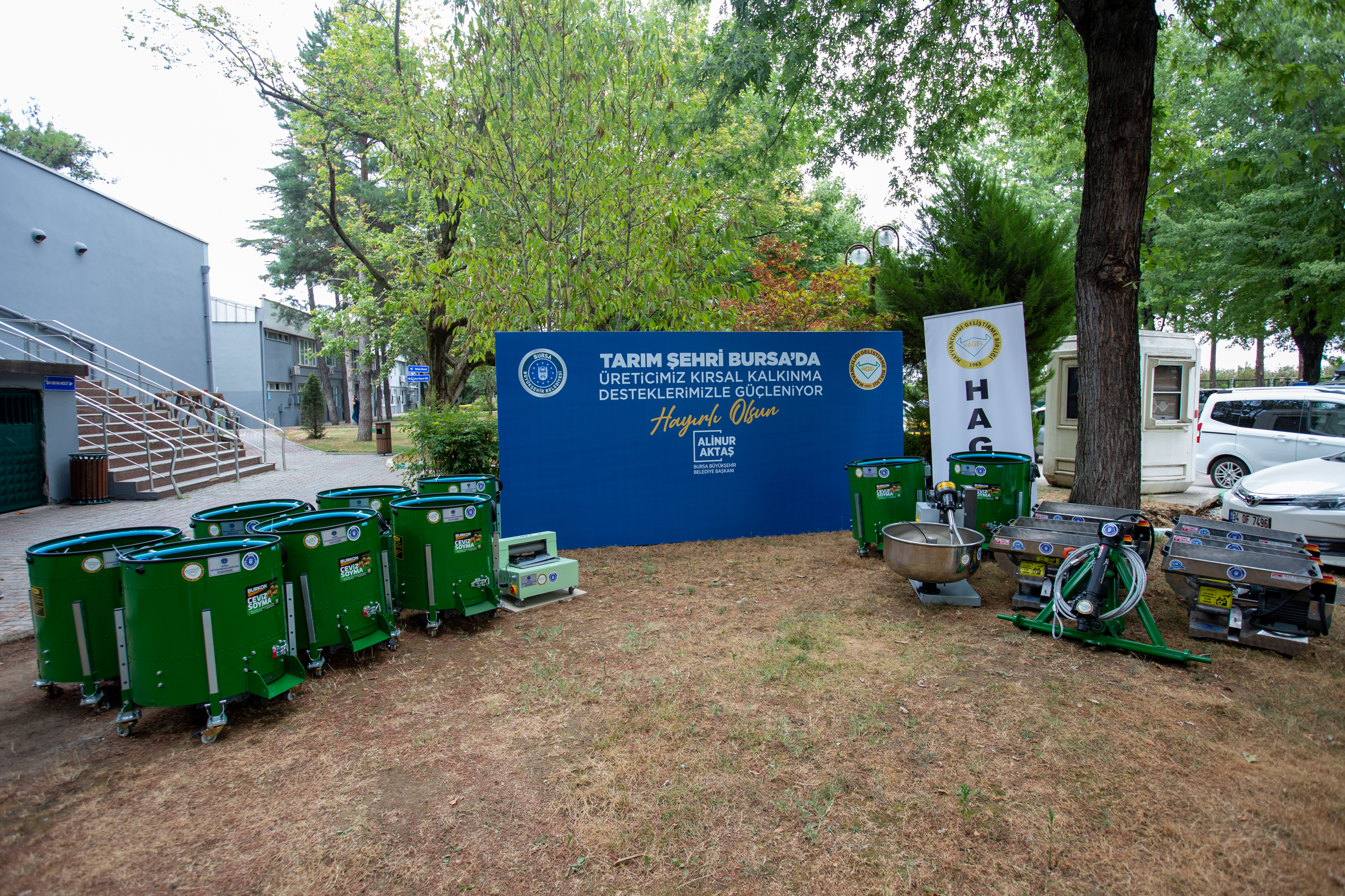 BURSA – Bursa Büyükşehir Belediyesi’nin kırsal kalkınma hedefleri doğrultusunda Bursa İli Hayvancılığı Geliştirme Birliği (HAGEL) destekleriyle temin edilen tarım makineleri törenle çiftçilere dağıtıldı.