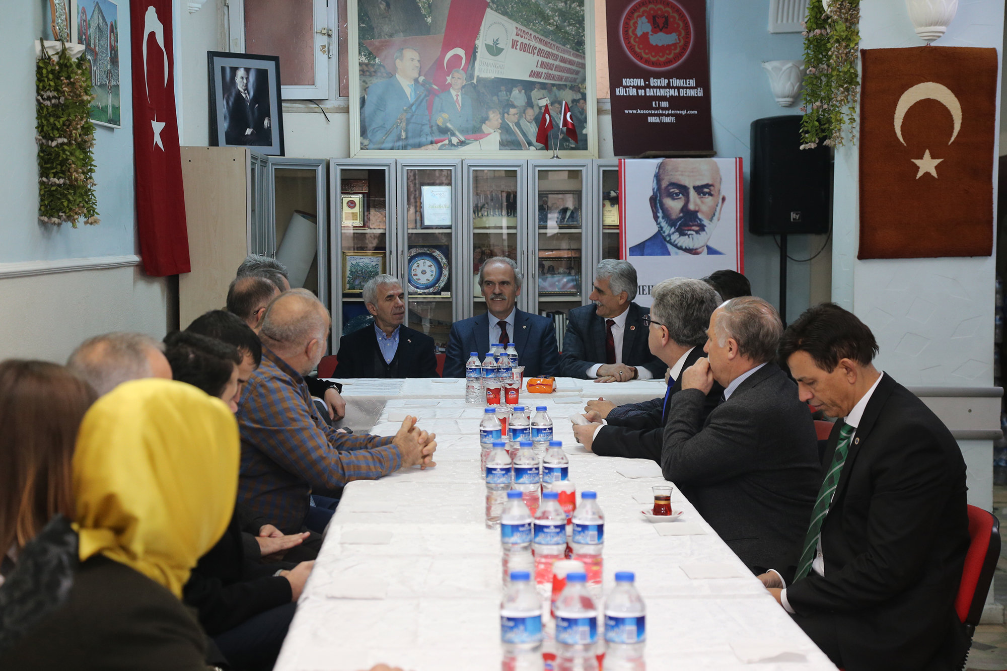 Bursa Büyükşehir Belediye Başkanı Recep Altepe, Büyükşehir Belediyesi bürokratlarıyla birlikte Zafer Mahallesi’nde faaliyet gösteren Kosova Üsküp Türkleri Kültür ve Yardımlaşma Derneği’ni ziyaret etti. Bursa’nın Balkanların dostu olduğunu söyleyen Başkan Altepe, Bursa ile Balkan ülkeleri arasındaki ilişkilerin gelişme sürecini anlatarak, “Bizler başkan olduğumuzda Balkanlardan çok ilgi gördük, mektuplar ve davetler aldık. Sonrasında Balkanlara turlar düzenledik, orada incelemelerde bulunduk, devamında da dostluklar gelişti. Her geçen gün Türkiye ve Bursa, tüm Balkanlar ve özellikle Doğu Avrupa ile bütünleşti. Tüm bölgede faaliyetlerimizi sürüyor. Özellikle Kosova ve Makedonya’da yoğun faaliyetler devam ediyor” diyerek, bu sayede Balkanlardaki ilk Türk lobi çalışmalarının başladığını anlattı.
