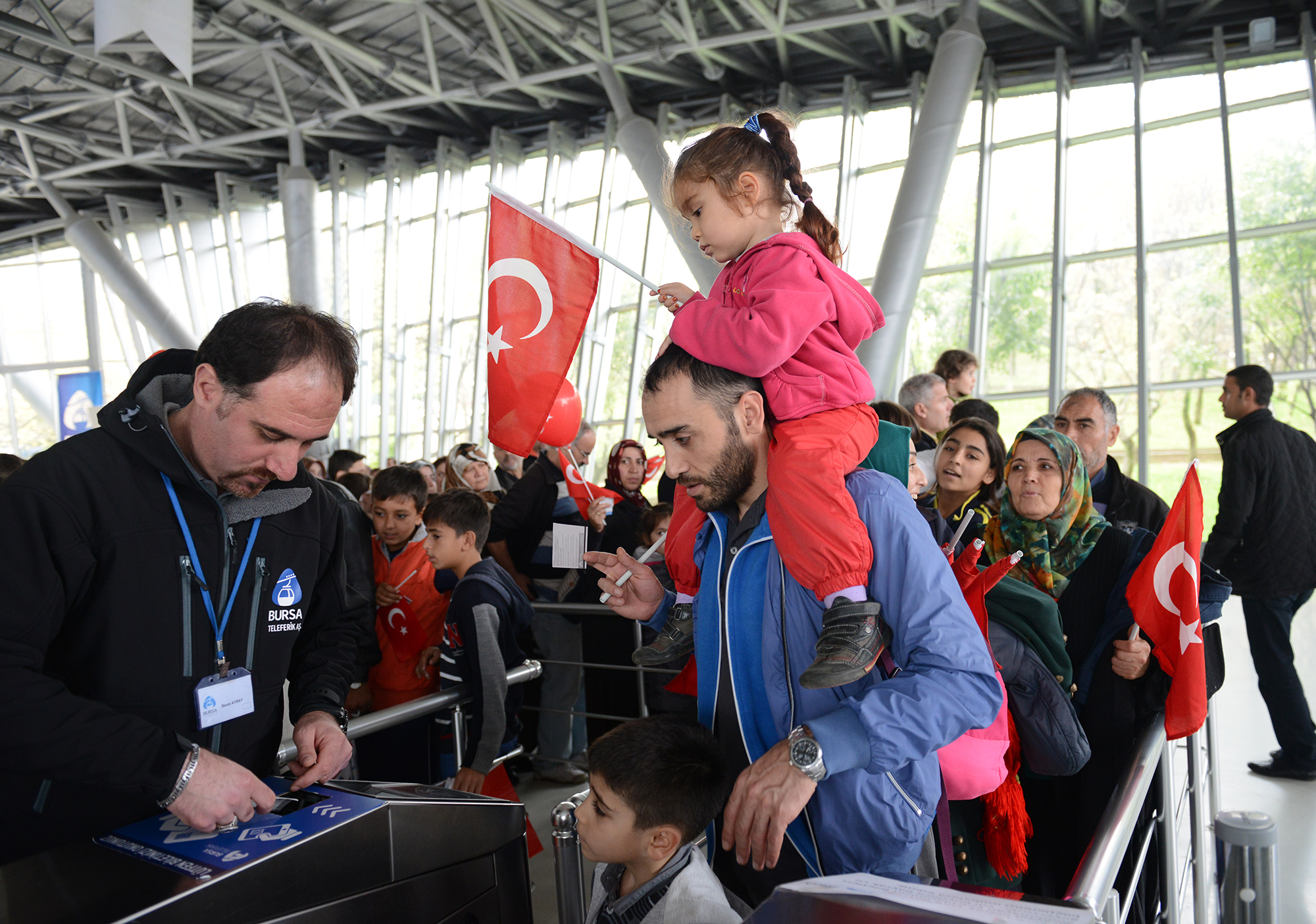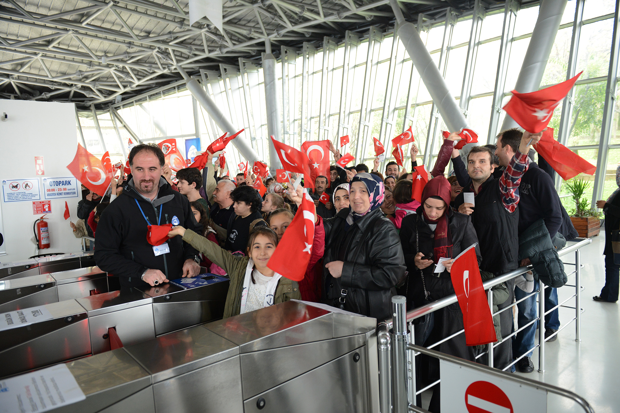 Bursa Büyükşehir Belediyesi’nin Uludağ’a ulaşımı daha konforlu ve seri hale getirmek amacıyla projelendirdiği ve geçtiğimiz Haziran ayında yolculu seferlere başlayan teleferik, Cumhuriyet Bayramı nedeniyle çok anlamlı bir kampanyaya ev sahipliği yaptı. Bursa Teleferik A.Ş.’nin önerisi ve Büyükşehir Belediyesi’nin desteğiyle düzenlenen ‘Cumhuriyet Bayramı’nda elinde Türk Bayrağı ile gelene teleferik bedava’ kampanyası vatandaşlardan büyük ilgi gördü. Teleferikle yolculuk yapmak için eline Türk Bayrağı alan binlerce vatandaş sabahın erken saatlerinden itibaren Teferrüç İstasyonu’na akın etti.