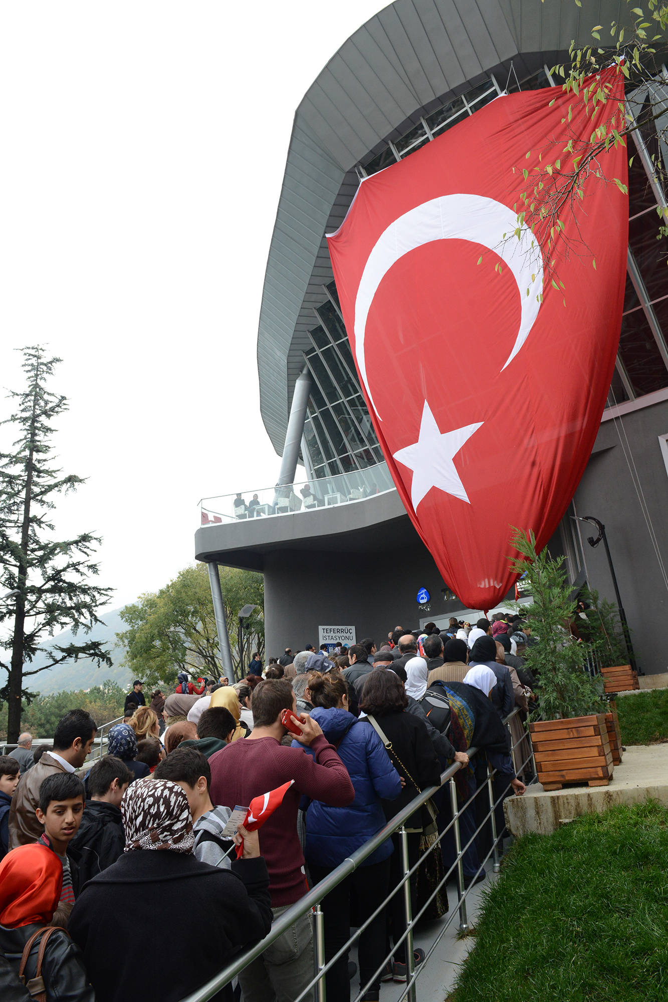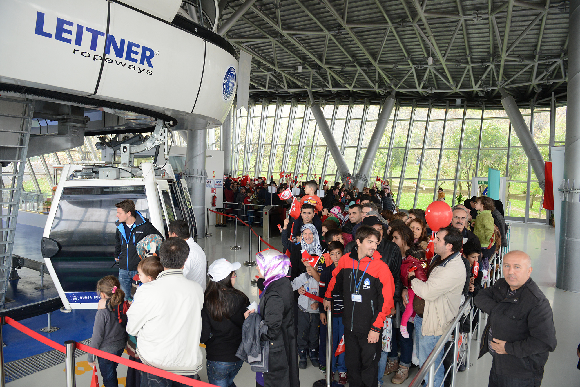 Cumhuriyet coşkusu ve teleferik heyecanını bir arada yaşamak isteyen vatandaşlar turnikelerin bulunduğu noktadan istasyon binasının önündeki caddeye kadar uzun bir kuyruk oluşturdu. Görevliler tarafından kontrollü bir şekilde kabinlere binen vatandaşlar, Cumhuriyet coşkusu ücretsiz bir teleferik yolculuğu ve Uludağ’ın eşsiz doğa manzarasında yaşama imkanı buldu. Vatandaşların ücretsiz yolculuk için gösterdiği yoğun ilgiyle aynı zamanda bir rekor kırılmış oldu. Bugüne kadar günlük ortalama 2-3 bin kişi taşıyan teleferik, Cumhuriyet Bayramı’nda 10 bin kişi taşıdı. Uludağ’a çıkan vatandaşların dönüşlerinde gecikme ve herhangi bir sorun yaşanmaması için üst sınır 10 bin rakamına ulaşıldığında saat 15.00 itibariyle yukarıya çıkışlar durduruldu. Bu sayede Uludağ’da olan vatandaşların inişlerden herhangi bir sorun yaşamasının da önüne geçilmiş oldu.