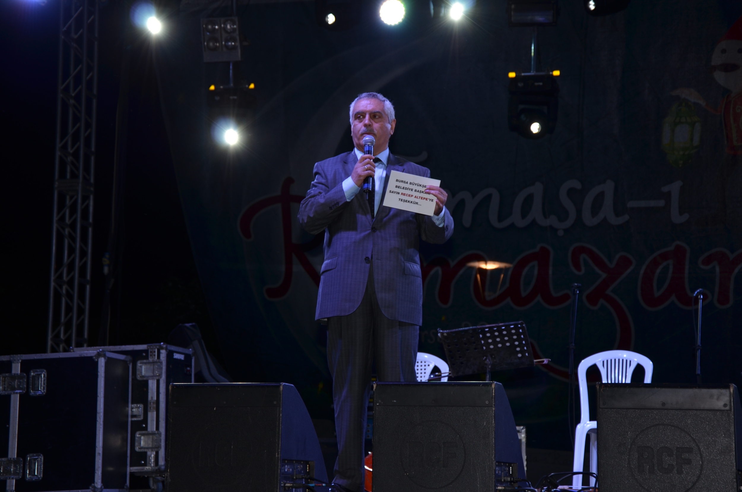 Bursa’da Büyükşehir Belediyesi iştiraklerinden Kültür A.Ş. tarafından organize edilen Temaşa-i Ramazan programı, Merinos Park’ta başladı. Bursa Kültür A.Ş. Genel Müdürü Rıfat Bakan, ‘Temaşa-i Ramazan 2014’ün ilk programında yaptığı konuşmada, “Yardımlaşma ve paylaşma duygularının arttığı Ramazan ayı, dostlukları ve kardeşliği de pekiştiriyor. Bursa’da Ramazan ayının tüm renkleriyle yaşanması için gereken çalışmaları gerçekleştirdik. Ramazan ayının kendine has kültürünü zenginleştirerek Bursa’da bu ayı daha da anlamlı yaşatmayı istedik” dedi.