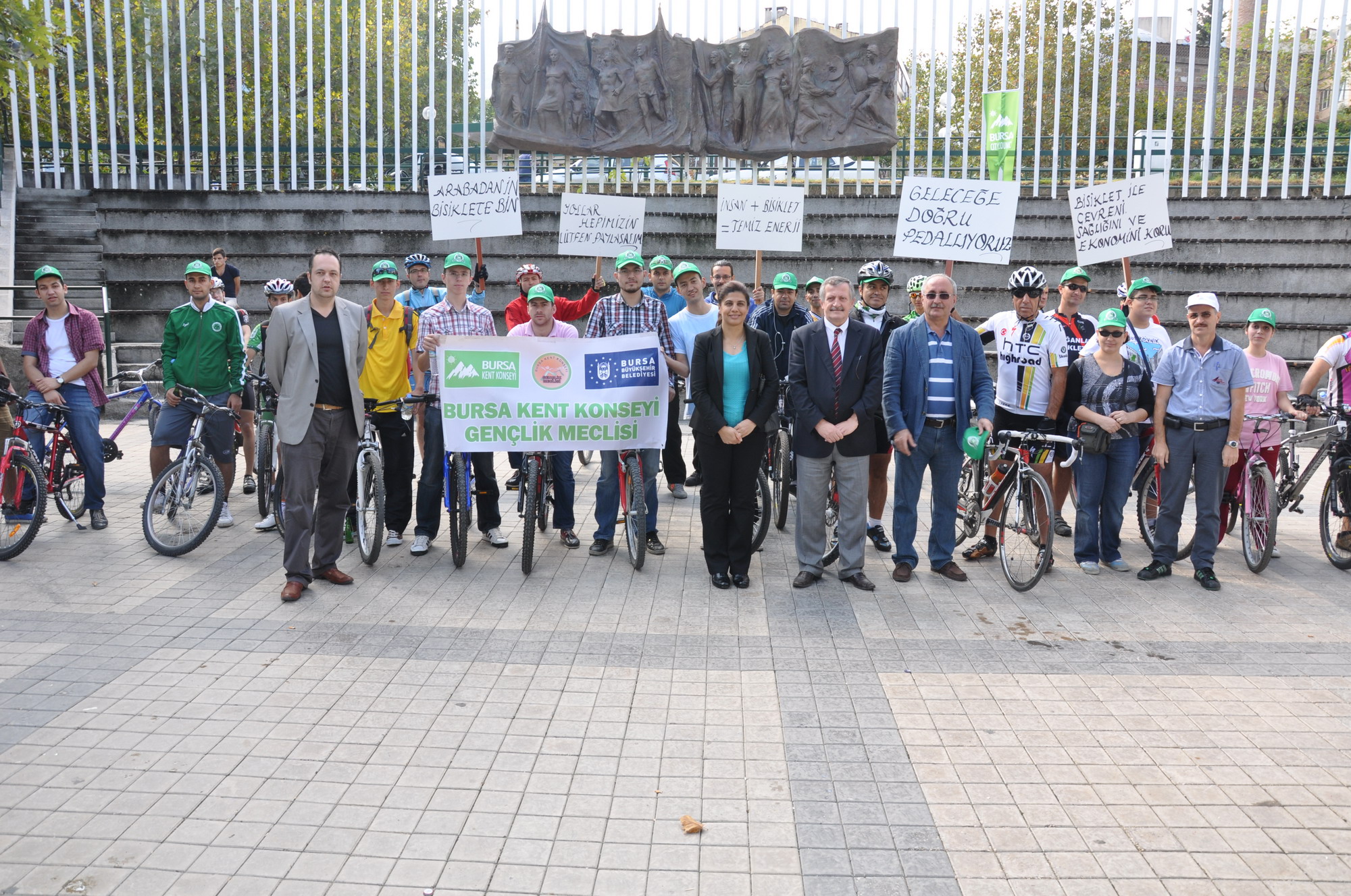 Bisiklet severler tur esnasında “Geleceğe Doğru Pedallıyoruz”, “Bisiklet İle Çevreni, Sağlığını ve Ekonomini Koru”, İnsan+Bisiklet=Temiz Enerji”, “Yollar Hepimizin Lütfen Paylaşalım” ve “Arabandan İn, Bisiklete Bin” pankartlarını açtılar.