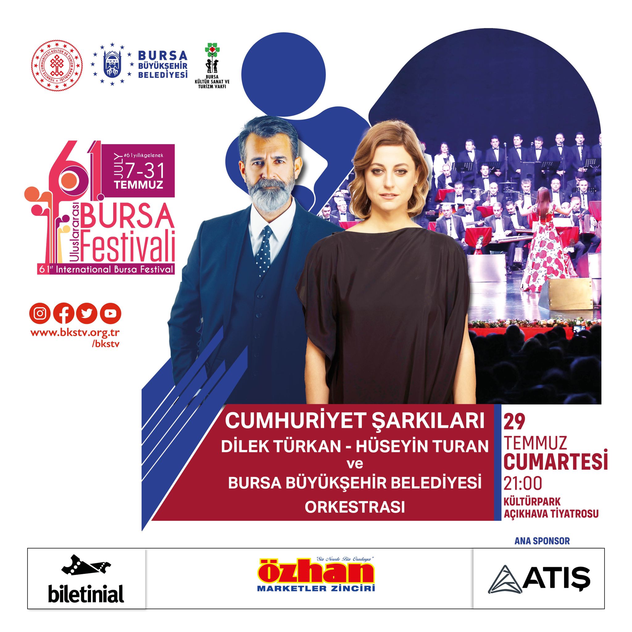 Bursa Kültür Sanat ve Turizm Vakfı Başkanı Sadi Etkeser de, “Müzeyyen Senar ve Zeki Müren’in eşsiz sesleriyle başlayan, kuşaktan kuşağa 61 yıldır devam bu öykü, 7-31 Temmuz tarihleri arasında şehrimizi aydınlatmaya devam edecek. Piyasa fiyatlarının yarısı belki daha azı olarak festival biletleri 100 TL ile 400 TL arasında satışa çıkacak. Kar amacı gütmeyen vakfımızın, kültür sanat faaliyetlerine katkılarını artırmak amacıyla her zaman yanımızda olan ve bize güç katan Büyükşehir Belediyemize, Kültür Turizm Bakanlığımıza ve her zaman bize destek veren sponsorlarımıza teşekkür ediyorum” dedi.