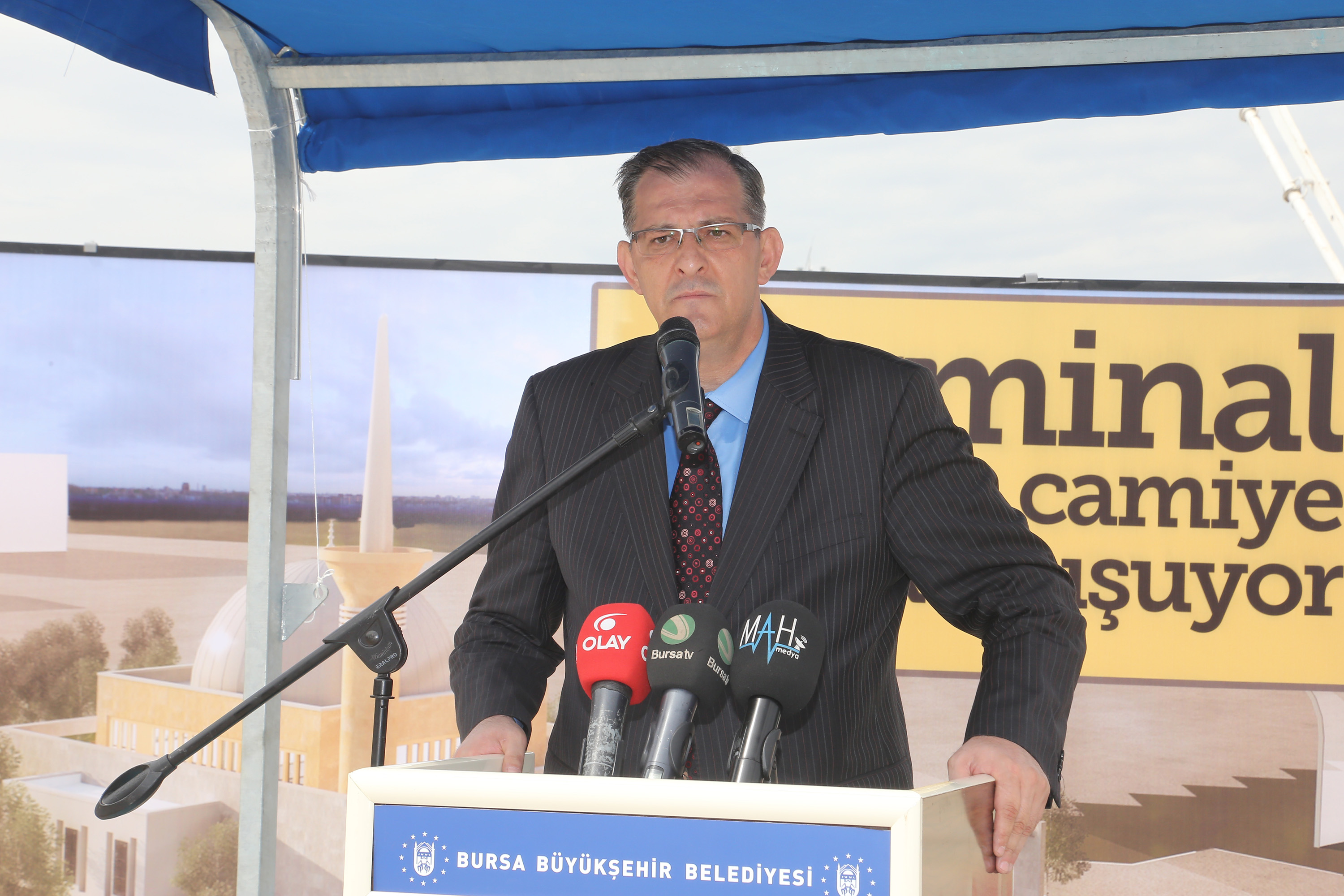 Büyükşehir Belediye Başkanı Recep Altepe, terminalin Bursa’nın misafir odası ve kentin giriş kapısı olduğunu hatırlatarak, bu nedenle terminalin hiçbir eksikliğinin bulunmaması gerektiğini kaydetti. BURULAŞ tarafından işletilen terminalde her alanda sağlıklaştırma yapıldığını ifade eden Başkan Altepe, “Burada her şeyin 4 -4’lük olması gerekir. Yıllardır konuşulan ancak somut bir adım atılamayan önemli bir ihtiyacı gideriyoruz. Mevcut mescit artık ihtiyacı karşılamıyordu. Kabe’nin bir şubesinin burada da olması gerekiyordu. Bu konuda gerekli adımları attık. Geçtiğimiz günlerde cami yaptırma ve yaşatma derneğimiz kuruldu ve bugün de temelini atıyoruz. Mimarisiyle, kullanılan malzemesiyle, işçiliğiyle ve yapılacak çevre düzenlemeleriyle ayrıcalıklı bir camiyi buraya kazandırıyoruz. Şimdiden hayırlı olsun” dedi.