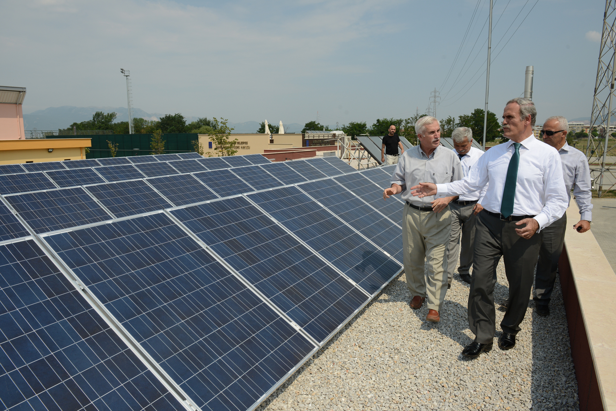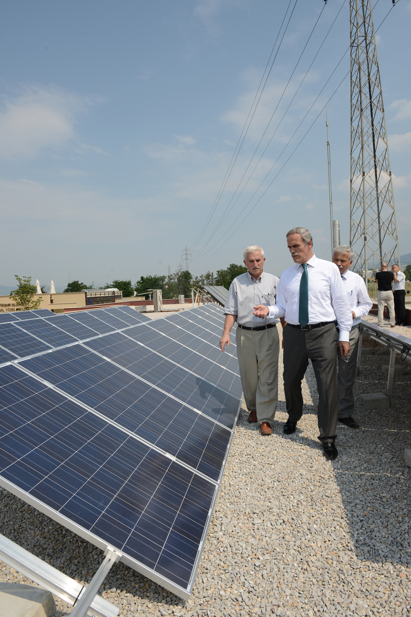 Büyükşehir Belediye Başkanı Recep Altepe, Şahin Başol Spor Tesisleri’nde uygulamaya başlayan örnek çalışmayı yerinde inceledi. Beraberindeki BUSKİ Genel Müdürü İsmail Hakkı Çetinavcı ve Genel Müdür Yardımcısı Talat Özen’den sistemin çalışma şekli hakkında bilgiler alan Başkan Altepe, önemli bir çevre projesinin hayata geçirildiğini söyledi. Sadece bu dönem 100’ün üzerinde spor tesisini Bursa’ya kazandırdıklarını ve bu tesislerde ısıtma, soğutma, aydınlanma gibi enerji maliyetlerinin önem taşıdığını ifade eden Başkan Altepe, “Kente kazandırdığımız tesislerin sürdürülebilirliğini sağlamak için işletme maliyetlerinin mümkün olduğunca düşürmemiz gerekiyor. Özellikle enerji maliyetlerinin en aza indirilmesi için yenilenebilir enerji kaynaklarına yöneldik. Şahin Başol Spor Kompleksi’nde başlattığımız uygulama ile güneş enerjisinden elektrik üretmeye başladık. Burada üretilen elektrik, tesisin ihtiyaçlarının karşılanmasına kullanılıyor. Tüm tesislerimizde güneşten elektrik elde ederek, tesislerin sürdürülebilir olmasını amaçlıyoruz” diye konuştu.