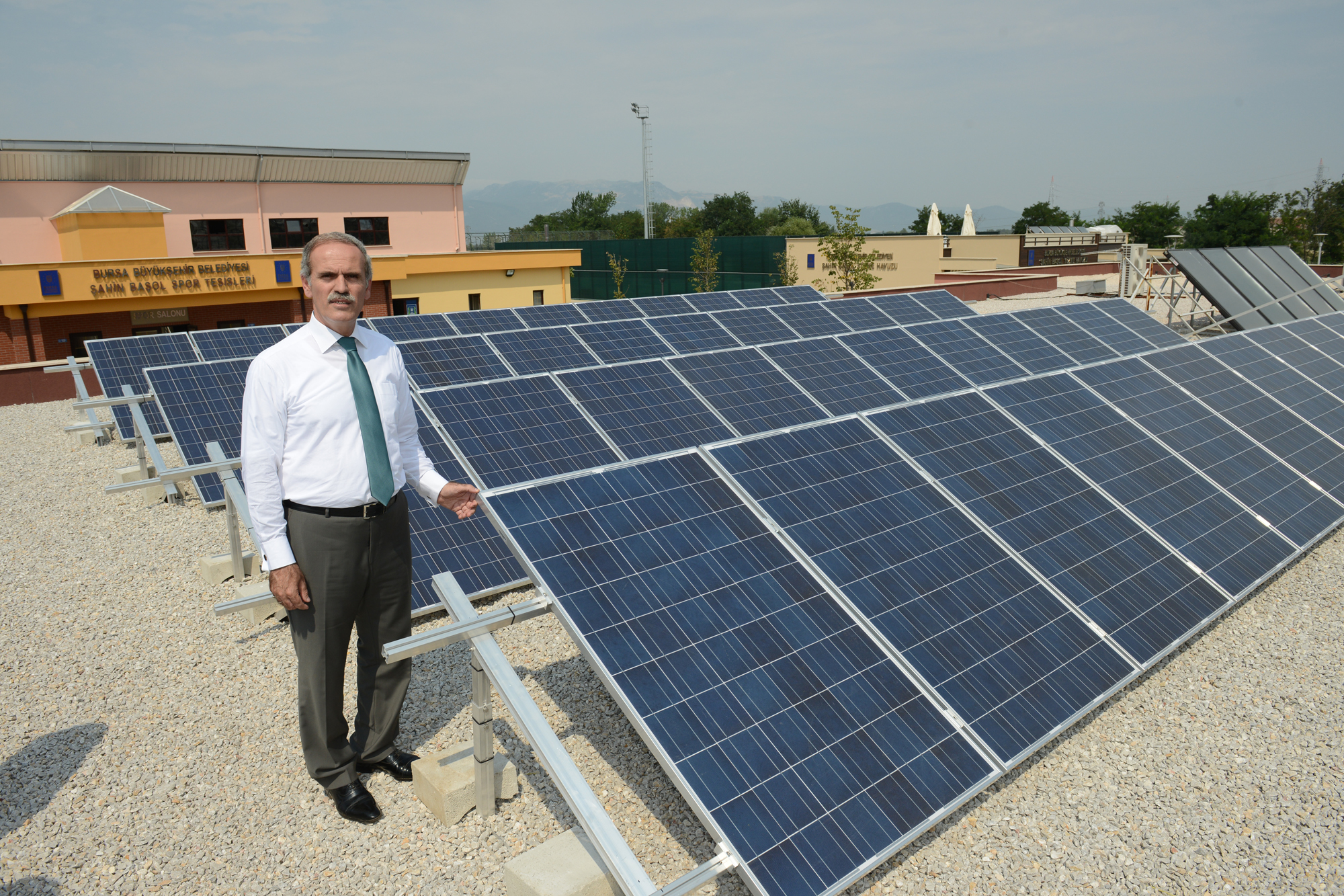 - BURSA BÜYÜKŞEHİR BELEDİYESİ HEM KAYNAKLARIN VERİMLİ KULLANILMASI HEM DE ENERJİ MALİYETLERİNİN EN AZA İNDİRİLMESİ AMACIYLA ŞAHİN BAŞOL SPOR KOMPLEKSİ’NDE GÜNEŞ ENERJİSİNDEN ELEKTRİK ÜRETMEYE BAŞLADI.