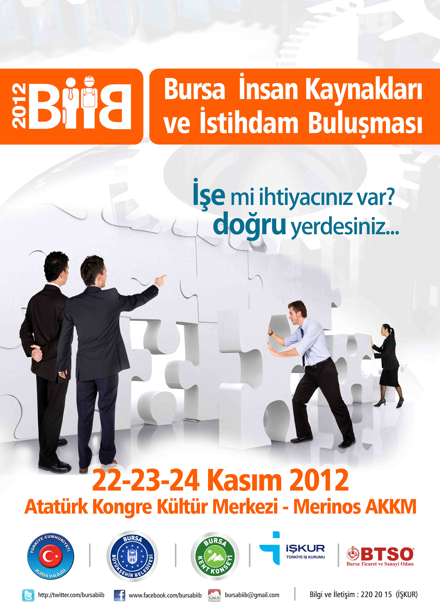 - BURSA VALİLİĞİ, BÜYÜKŞEHİR BELEDİYESİ, BURSA KENT KONSEYİ, BTSO VE İŞKUR ORTAKLIĞINDA 22–24 KASIM TARİHLERİ ARASINDA DÜZENLENECEK OLAN ‘BURSA İNSAN KAYNAKLARI VE İSTİHDAM BULUŞMASI’NIN (BİİB) HAZIRLIKLARI SÜRÜYOR.