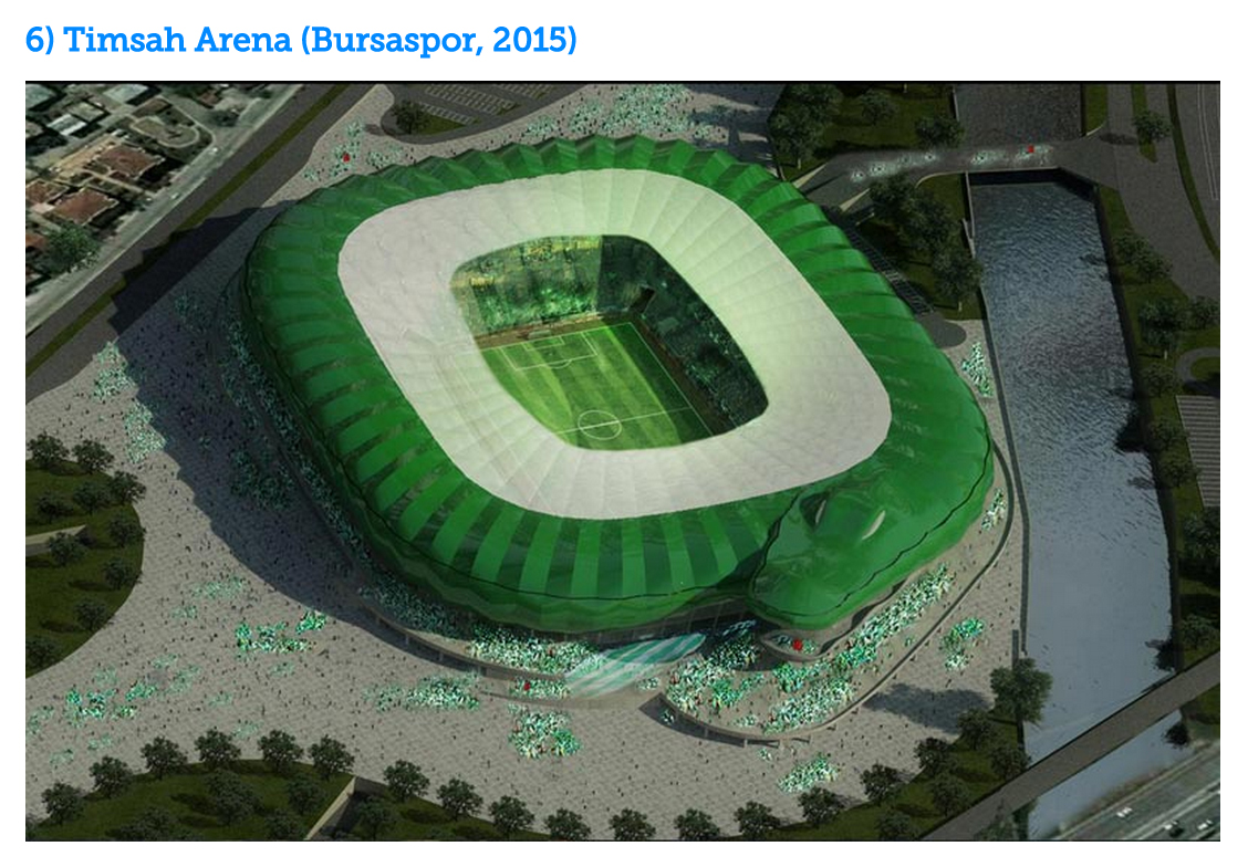 - İNGİLTERE’NİN YÜKSEK TİRAJLI GAZETESİ THE TELEGRAPH’IN EDİTÖRÜ ADAM HURREY, DÜNYADAKİ DEV STAT PROJELERİNİ ARAŞTIRDI VE BURSA BÜYÜKŞEHİR BELEDİYESİ TARAFINDAN YAPTIRILAN YENİ STADYUMU DÜNYANIN EN HEYECAN VERİCİ 10 STAT PROJESİ ARASINDA GÖSTERDİ.