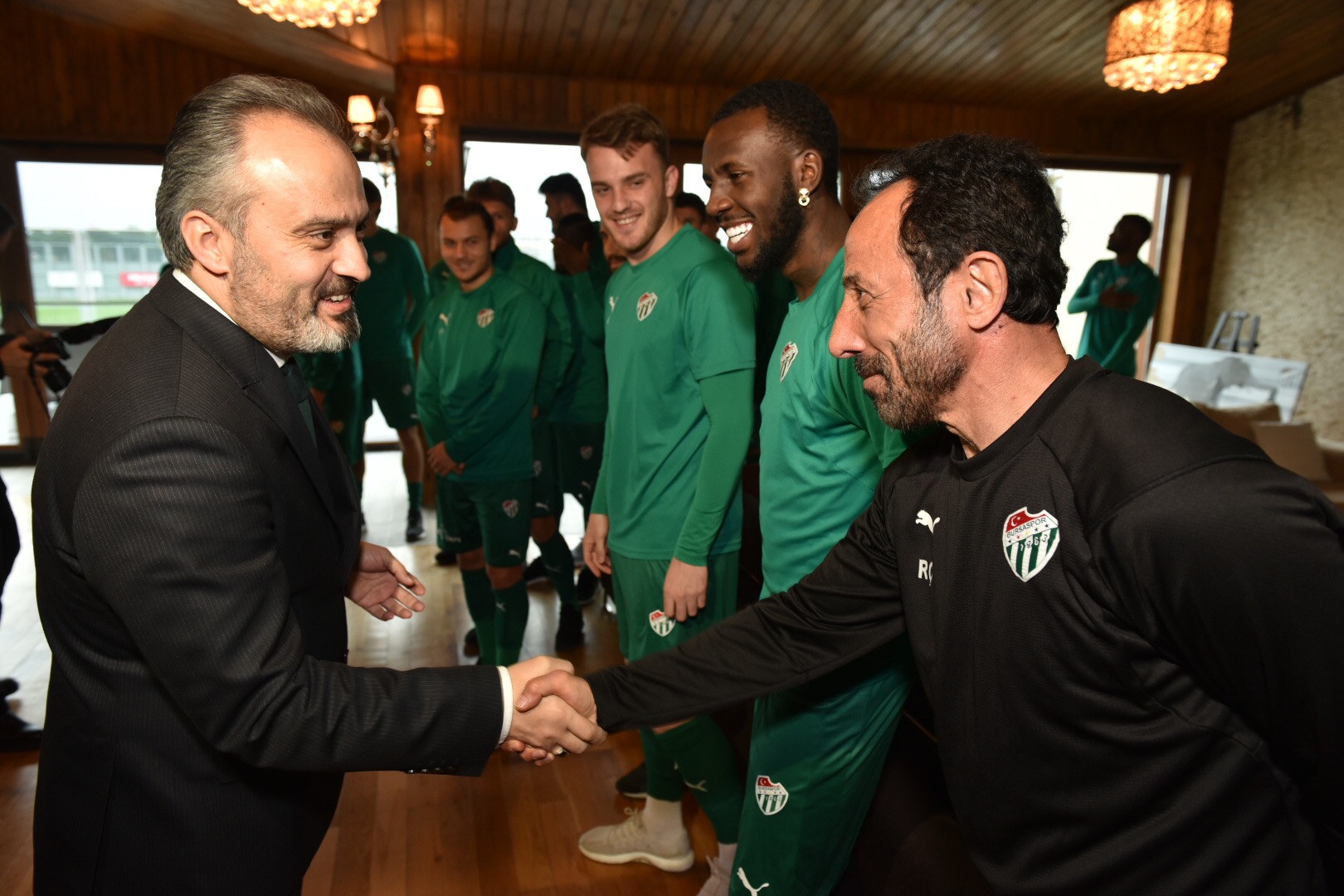 Spor Toto Süper Lig’de 12 beraberlik, 4 galibiyet ve 5 mağlubiyetle 13’üncü sırada yer alan Bursaspor, Çaykur Rizespor maçı öncesi, Büyükşehir Belediye Başkanı Alinur Aktaş’ı, tesislerde ağırladı. Takıma moral vermek için Özlüce Tesisleri’ni ziyaret eden Başkan Aktaş, futbolculara baklava ikram edip, binlerce taraftarın hafta sonu için galibiyet beklediğini hatırlattı. Ziyarette, Kulüp Başkanı Ali Ay, Yönetim Kurumu Üyeleri Erkan Aydemir, Enver Kumova, Yusuf Berat Rızvanoğlu, Nihat Arı, Ömer Faruk Şahin, AK Parti Nilüfer İlçe Başkanı Ufuk Ay, teknik heyet ve futbolcular hazır bulundu.