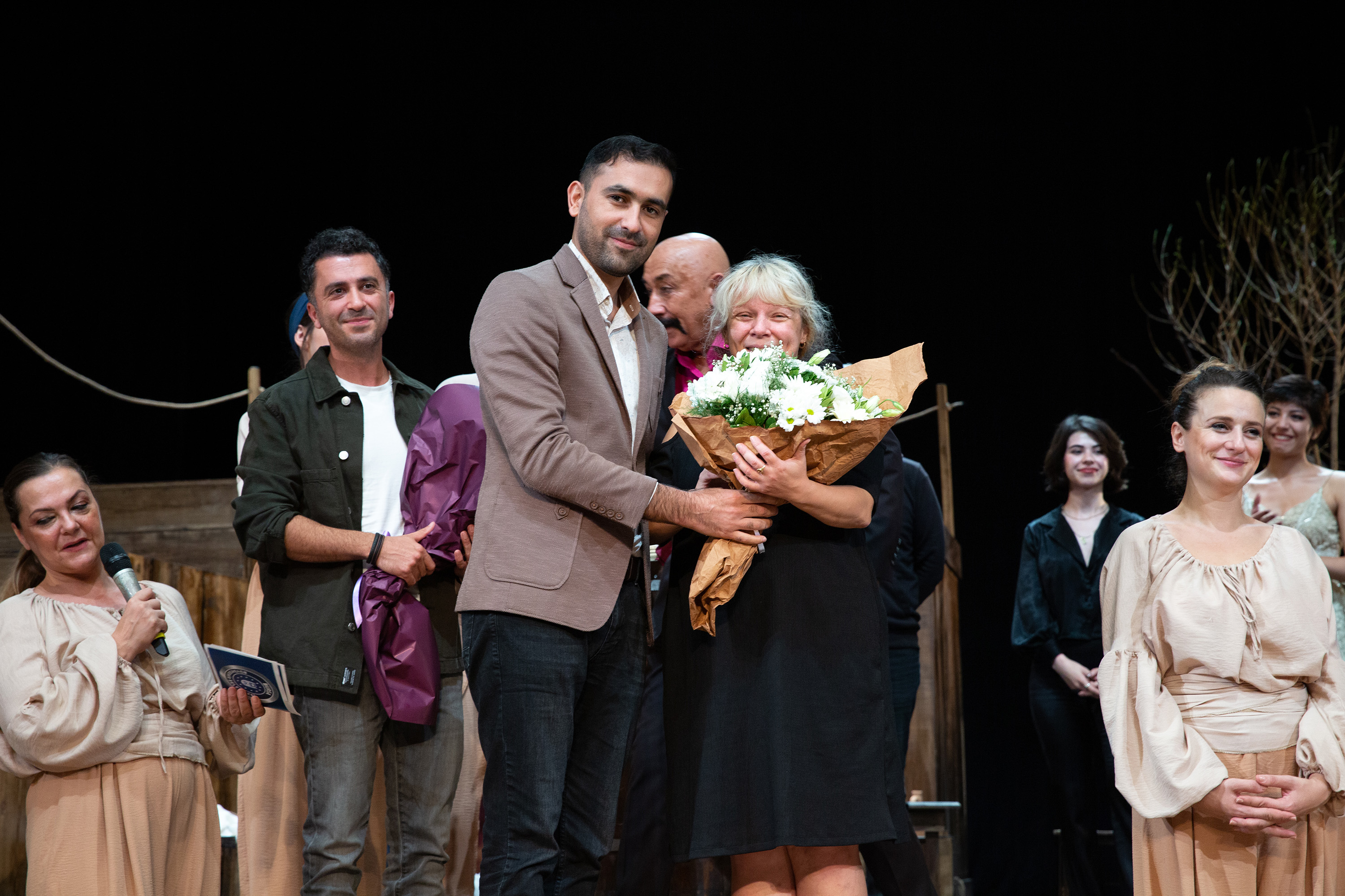 Tiyatrocuların performanslarıyla sahnede adeta devleştiği oyunu beğeniyle izleyen Bursa Büyükşehir Belediyesi Başkanvekili Fethi Yıldız, oyunun sonunda performansları nedeniyle tebrik ettiği tiyatroculara çiçek takdim etti.