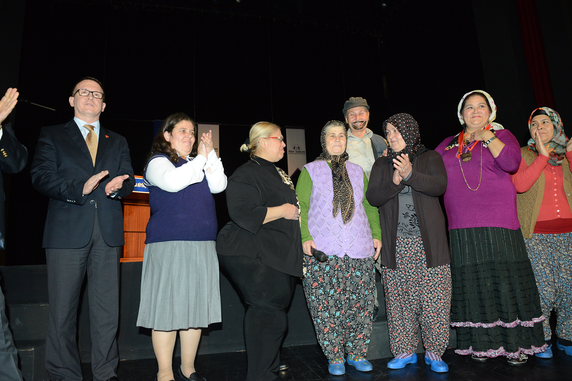Ziyarette konuşan Büyükşehir Belediye Başkanvekili Şükrü Köse, kadına karşı şiddeti konu alan tiyatro oyununu sergileyen Mersinli kadınları kutladı. Türk toplum yapısında kadının ayrı bir öneminin bulunduğunu, her kadına bir anne gözüyle baktıklarını ve onu sahiplendiklerini belirten Başkanvekili Köse, kültürde var olan söylemleri uygulamakla yükümlü olduklarını söyledi. Büyükşehir Belediyesi olarak kadının toplum yapısındaki konumunu yükseltmek, yaşanılan problemleri minimize etmek için imkanlar çerçevesinde yoğun çaba sarf ettiklerini vurgulayan Başkanvekili Köse, “365 gün 7/24 her zaman kadına yönelik şiddeti önlemek için çalışmalıyız. Çünkü şiddeti ortaya çıkartan evlatları yetiştiren de bizleriz. O yüzden bilinçli olarak birlikte çok etkin bir mücadele yürütmeliyiz” dedi.