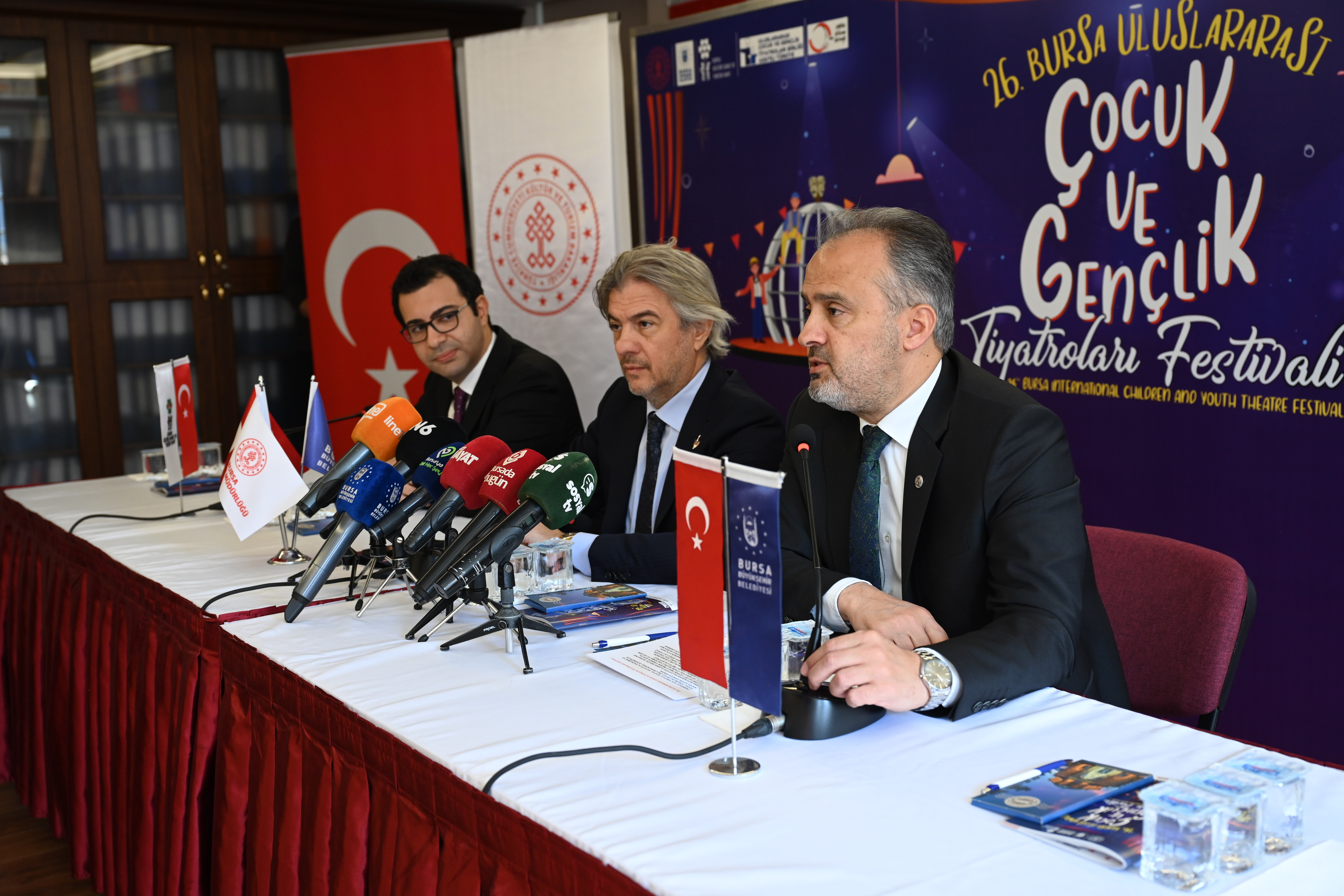 Bursa’nın kültür sanat anlamında uluslararası marka etkinliklerinden olan Uluslararası Çocuk ve Gençlik Tiyatroları Festivali’nin 26’ncısı, 12-17 Kasım tarihleri arasında gerçekleştirilecek. Festivalin tanıtım toplantısı, Tayyare Kültür Merkezi’nde Bursa Büyükşehir Belediye Başkanı Alinur Aktaş, Kültür ve Turizm Bakan Yardımcısı Ahmet Misbah Demircan, Bursa Kültür Sanat ve Turizm Vakfı (BKTSV) Başkanı Sadi Etkeser ve İl Kültür ve Turizm Müdürü Dr. Kamir Özer’in katılımıyla yapıldı.