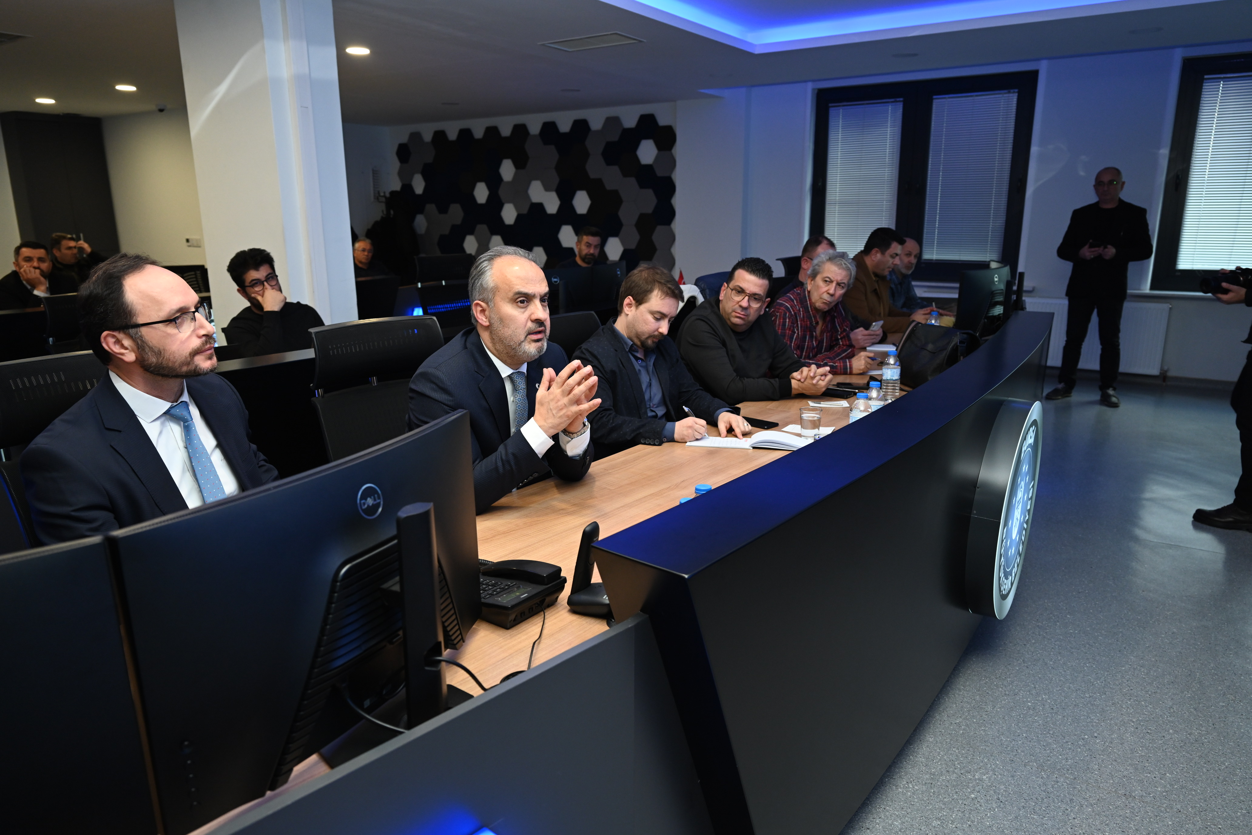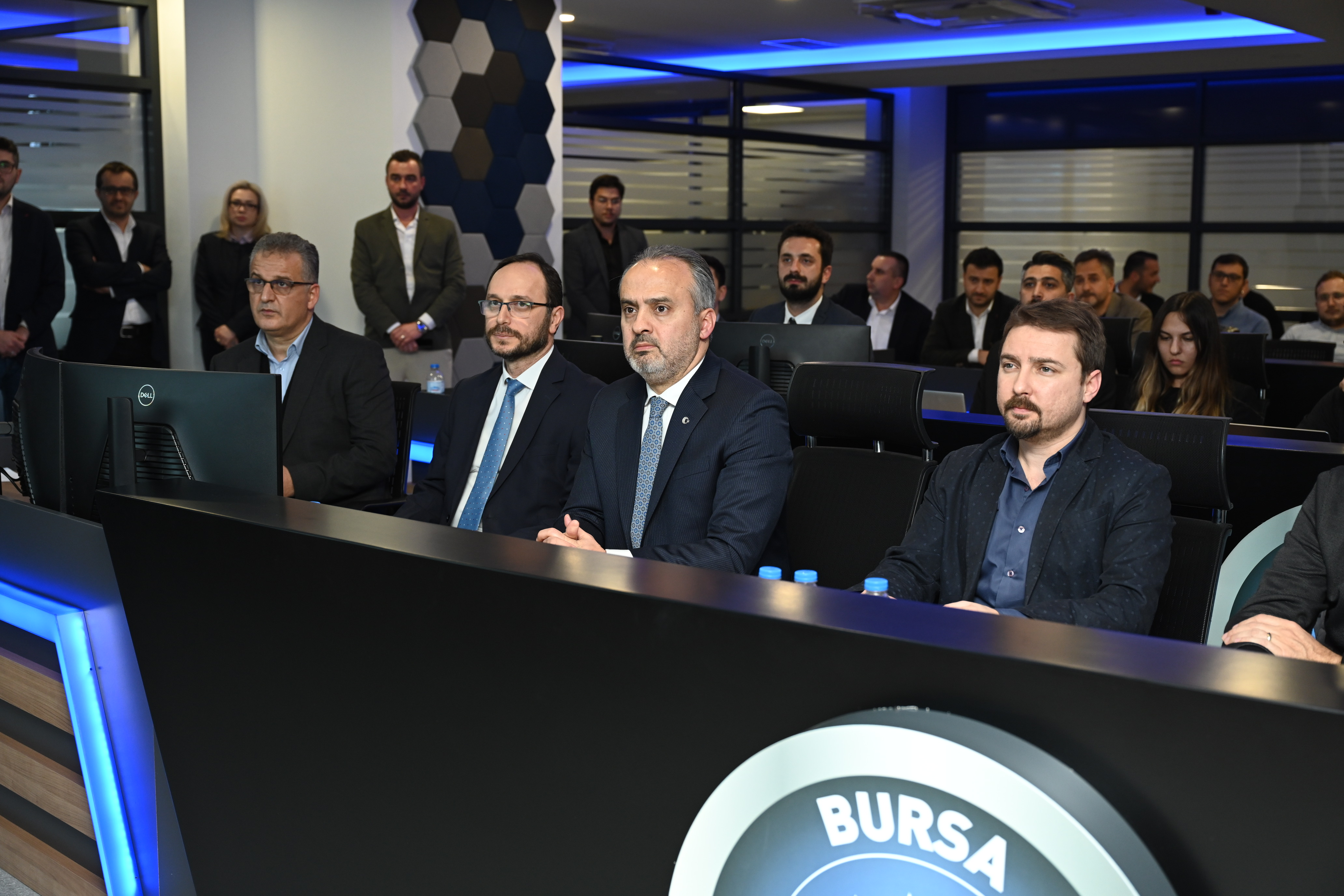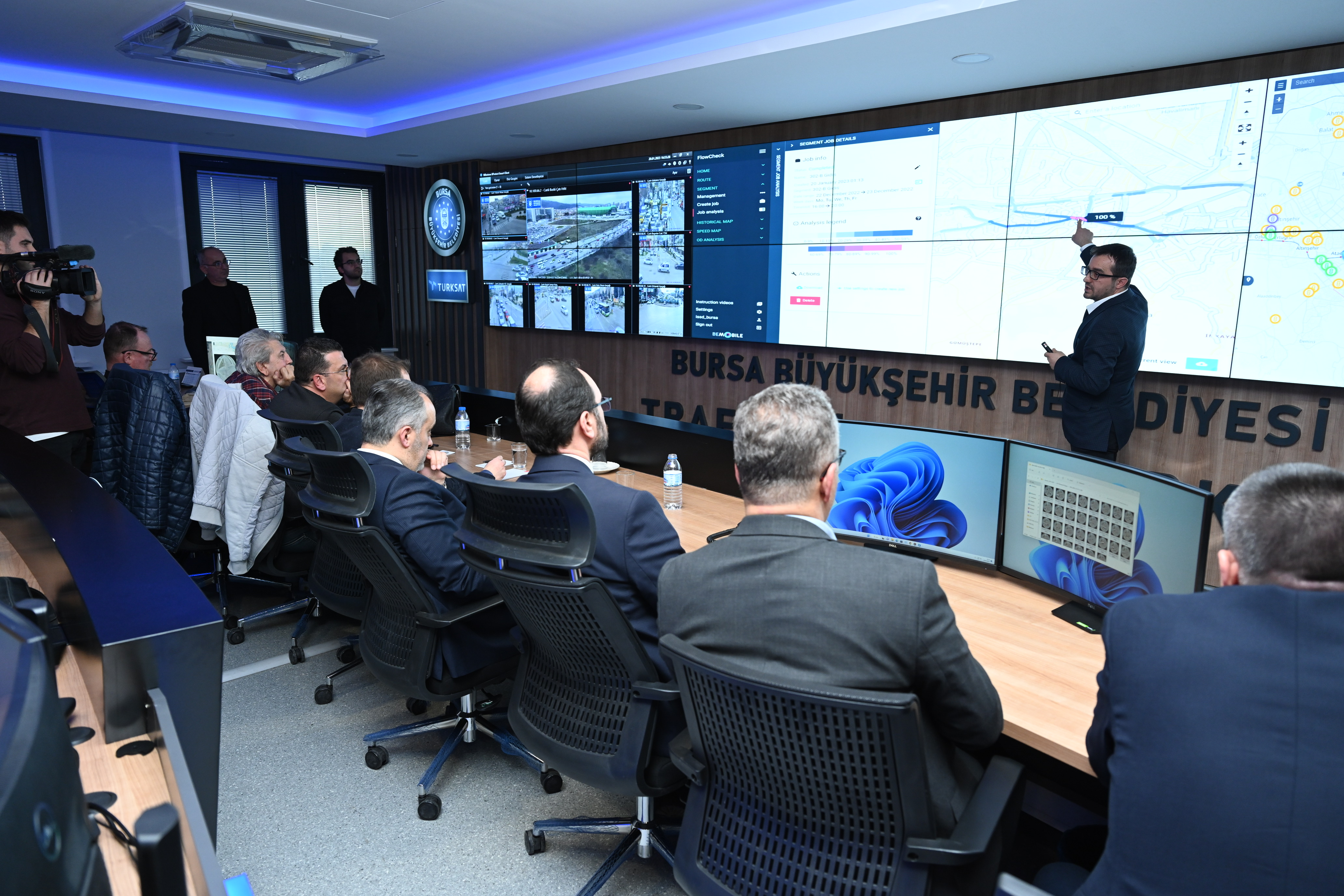 Bursa'da trafik sorununa köklü çözümler üretmek amacıyla raylı sistem, yeni yol, yol genişletme, köprü ve kavşak yatırımlarını aralıksız sürdüren Bursa Büyükşehir Belediyesi, trafik yönetiminde çığır açacak yeni bir projeyi devreye aldı. Büyükşehir Belediyesi'nin TÜRKSAT işbirliğiyle hayata geçirdiği Trafik Yönetim Merkezi'nde yapay zeka başta olmak üzere teknolojik ve bilimsel yöntemler ışında Bursa trafiği geleceğe güvenli ve sağlıklı bir şekilde taşınacak. Bursa Büyükşehir Belediye Başkanı Alinur Aktaş, beraberindeki TÜRKSAT Genel Müdür Yardımcısı Ahmet Savaş ile birlikte Bursa trafiğinin tek merkezden yönetildiği Trafik Yönetim Merkezi'nde incelemelerde bulundu. Bursa'da her geçen gün trafikteki araç sayısının arttığını, bunun da çeşitli olumsuzluk ve aksaklıklara yol açtığını hatırlatan Başkan Aktaş, bunun önüne geçmek için çalışmalar yaptıklarını, teknolojik ve bilimsel yöntemler ışığında Bursa trafiğini geleceğe güvenle taşımak adına 'Bursa Kentsel Trafik Yönetim Merkezi Projesi'ni başlattıklarını söyledi.