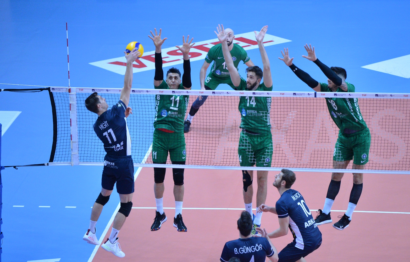 AXA Sigorta Efeler Ligi'nin 18'inci haftasında Bursa Büyükşehir Belediyespor Kulübü ve İzmir ekibi Arkas, Cengiz Göllü Voleybol Salonu'nda karşı karşıya geldi. Karşılaşmaya Morteza Sharifi’nin elinden üst üste bulduğu sayılarla başlayan Bursa Büyükşehir Belediyespor, hücumda etkinliğini sürdüremeyince geriye düştü. File üzerinde sayılar arayan yeşil-beyazlılar Arkas’ın etkili bloklarına takıldı ve ilk seti 18-25 geride kapadı. Karşılaşmanın ikinci setinde moral düşüklüğü gözlenen Bursa ekibi hatlarını sürürdü ve bu seti de 17-25 geride tamamladı. Maçın üçüncü setinin ilk bölümleri karşılıklı sayılarla geçti. Morteza ve Ediz ile köşelerden sayı arayan yeşil-beyazlılar sonuca gidemedi ve seti 17-25 maçı da 0-3 mağlubiyetle tamamladı.