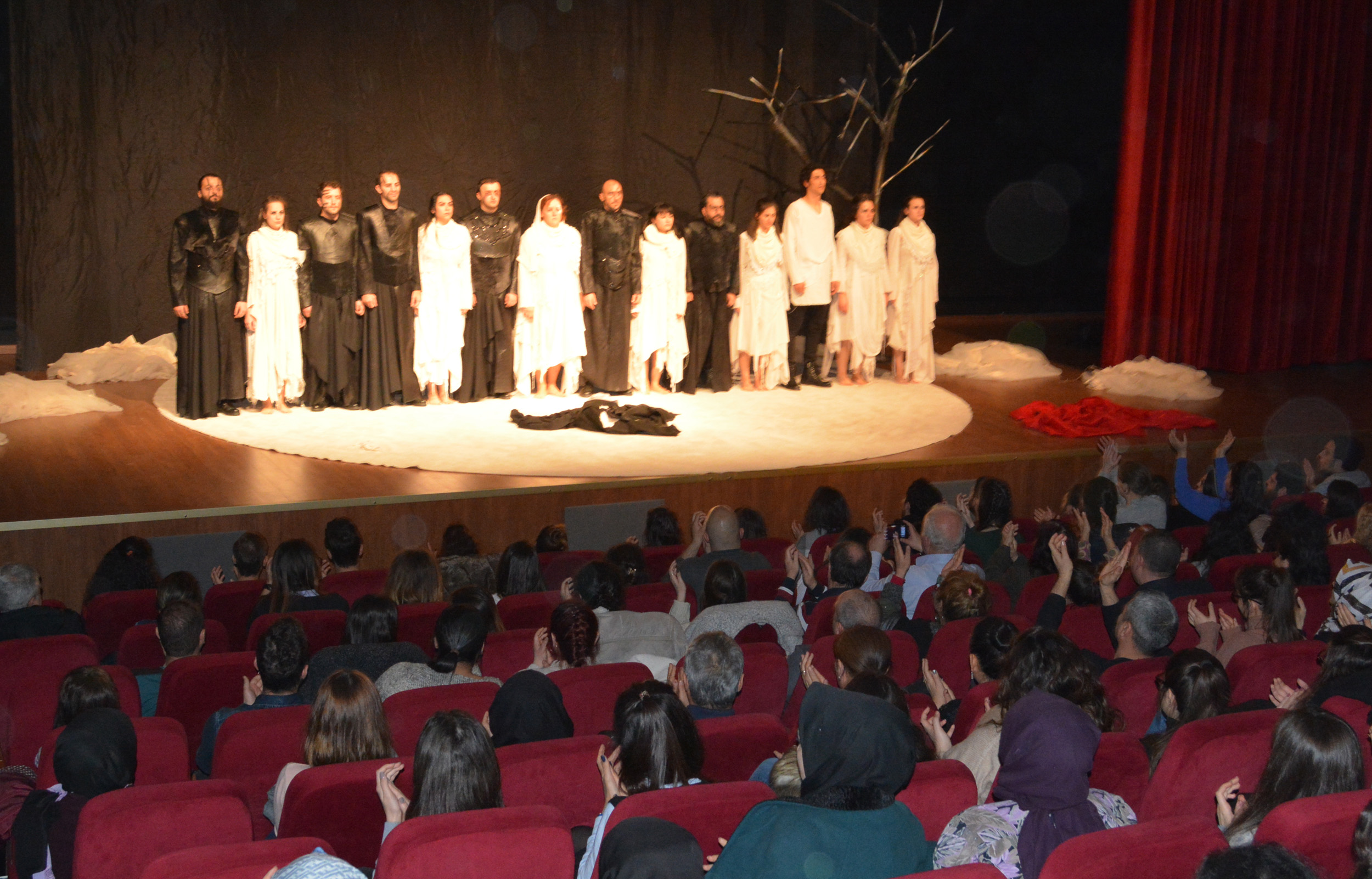 Jean Paul Sartre’ın yazdığı ‘Troyalı Kadınlar’, usta sanatçı Altuğ Görgü’nün yönetmenliğinde, Şehir Tiyatrosu sanatçıları tarafından sahnelendi. Şiirleri Füruğ Ferruhzad, müzikleri Murat Gedikli imzasını taşıyan oyun, dekorundan ışıklarına, kostümlerine ve danslarına kadar her yönüyle izleyicileri adeta büyüledi. Oyunun dramaturjisi Ruteba Doğan, dekor ve kostümleri ise Candan Günay Tuna tarafından yapıldı. Troya’da 10 yıl süre işgal süresince özgürlüklerini kaybetmiş kadınların dramını konu alan oyunda Müge Açıkdüşünenler, Seçil Girgin Serener, Burcu Sarıgül, Tuba Bayram Böbek, Didem Akın Açık, Işıl Keskin Peynirci, Yüksel Hakverdi, Deniz Gürsucu, Aykan Yılmaz, Fırat Üste, Murat Erten, Serdar Soyer, Mehmet Ali Açıl, Faruk Oğur, Kutlay Akbal ve Kerim Çağrı Zora rol aldı. Oyuncuların sahne performansı Çanakkale’de sanatseverlerden yoğun alkış aldı. Çanakkale İl Kültür ve Turizm Müdürü Kemal Dokuz, yönetmen Altuğ Görgü’yü ve oyuncuları tebrik etti.