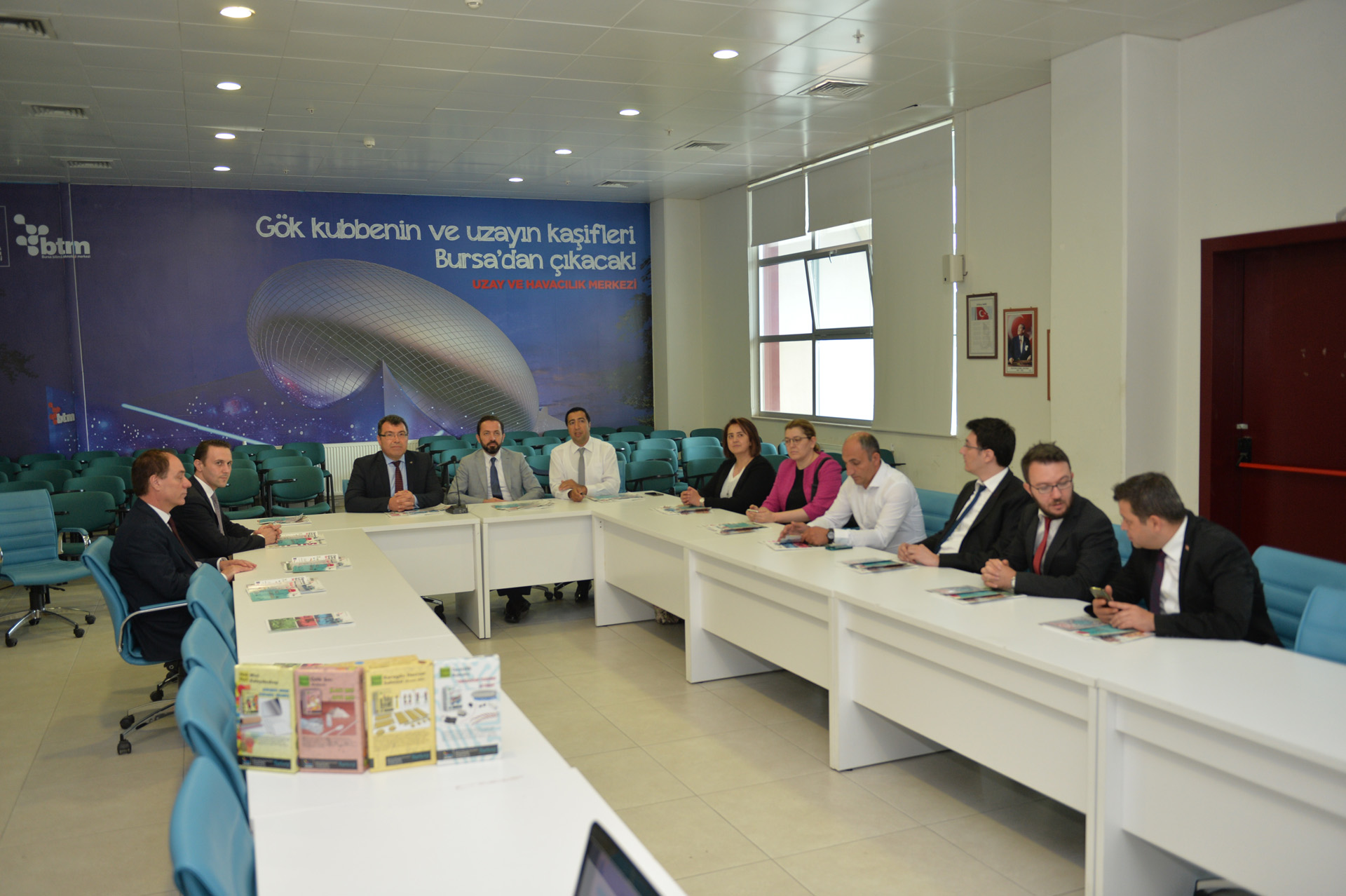 TÜBİTAK Başkanı Prof. Dr. Hasan Mandal ise Bursa BTM Koordinatörü Fehim Ferik’in de hazır bulunduğu ziyarette, Türkiye’de 5 adet aktif bilim merkezinin yer aldığını ve bunlar arasında Bursa’nın ‘süreci kendisinin başlatması nedeniyle’ ayrı bir yerinin bulunduğunu ifade etti. Bursa'nın ‘bilim ve teknoloji alanındaki çalışmaların önemini önceden fark edip’ Büyükşehir Belediyesi'nin katkılarıyla yol aldığını anlatan Prof. Mandal, TÜBİTAK olarak bilim ve teknoloji merkezlerini tematik yerler haline getirmeyi planladıklarını ifade etti. Bursa'da uzay ve havacılık alanında yapılan girişimlerin Türkiye'de bir ilk olacağının altını çizen Prof. Dr. Mandal, "Yeni kurulan hükümet sistemimiz kapsamında 100 günlük eylem planı hazırlandı. Bu plan içerisinde, 3 bilim merkezini daha aktif hale getireceğiz. Bunlardan birisi de Bursa'dır. 9 Kasım tarihine kadar uzay ve havacılık alanındaki serginin önemli kısmını açacağız. Bilim merkezlerine yönelik çalışmalar yakın zamanda başladı. Artık buralardan daha fazla öğrencinin, bireyin ve ailenin yararlanmasını istiyoruz. Hatta bilim merkezlerini ‘müfredat odaklı olarak’ bireylerin kendilerini daha fazla geliştirebileceği mekanlar haline dönüştürmeliyiz. Buraları ziyaret edilen müze gibi değil de bir takım becerilerin, geleceğin nitelikli insan kaynaklarının geliştirildiği ara yüzler olarak görüyoruz" şeklinde konuştu.