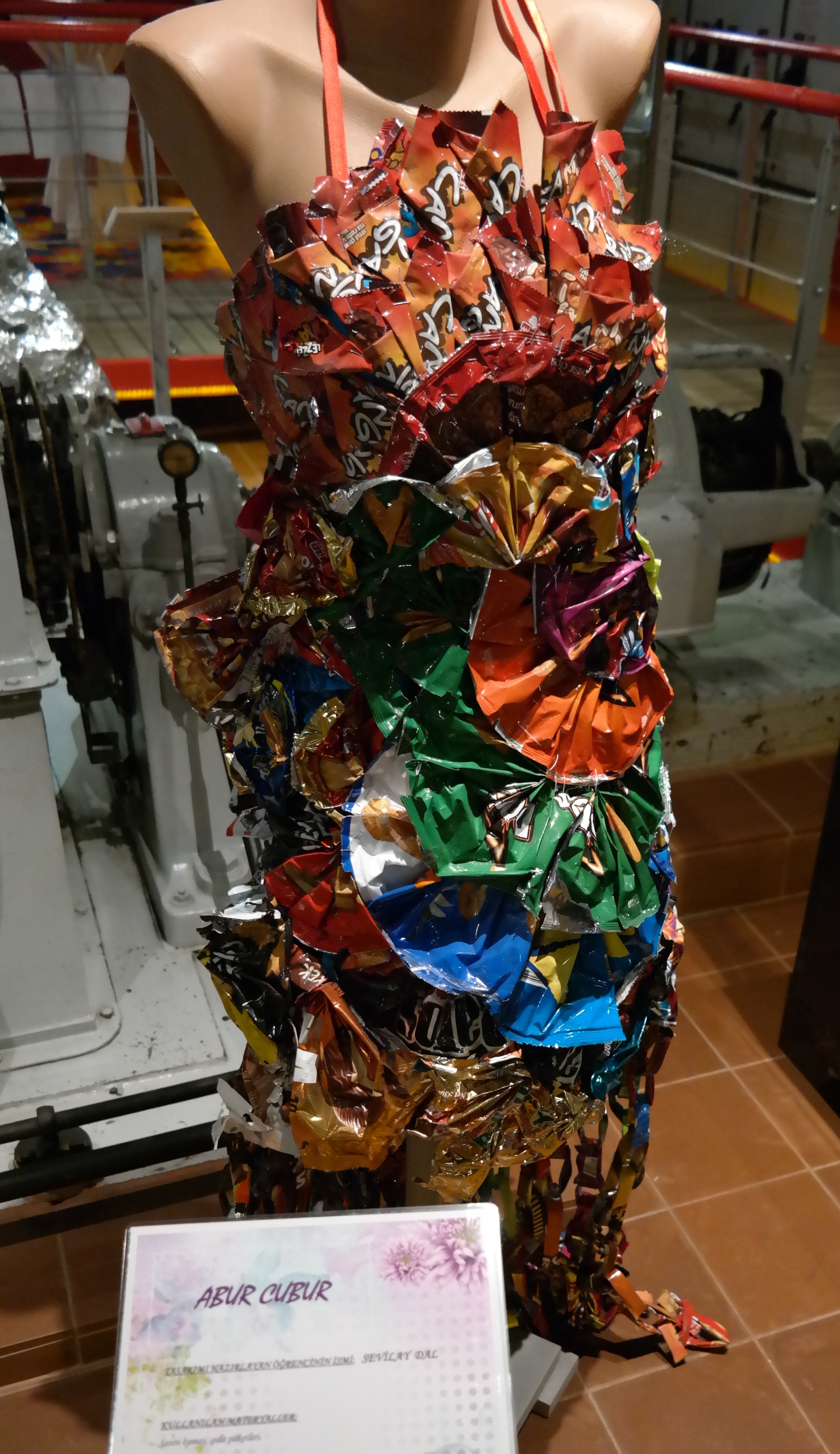 Cam şişe kırıklarından poşetlere, kağıt bardaklardan plastik kaşıklara ve gazoz kapaklarından tekstil dokuma atıklarına kadar pek çok malzemenin kullanılarak üretildiği sergi, hem sanatsal hem de sosyal sorumluluk açısından çok önem taşıyor.