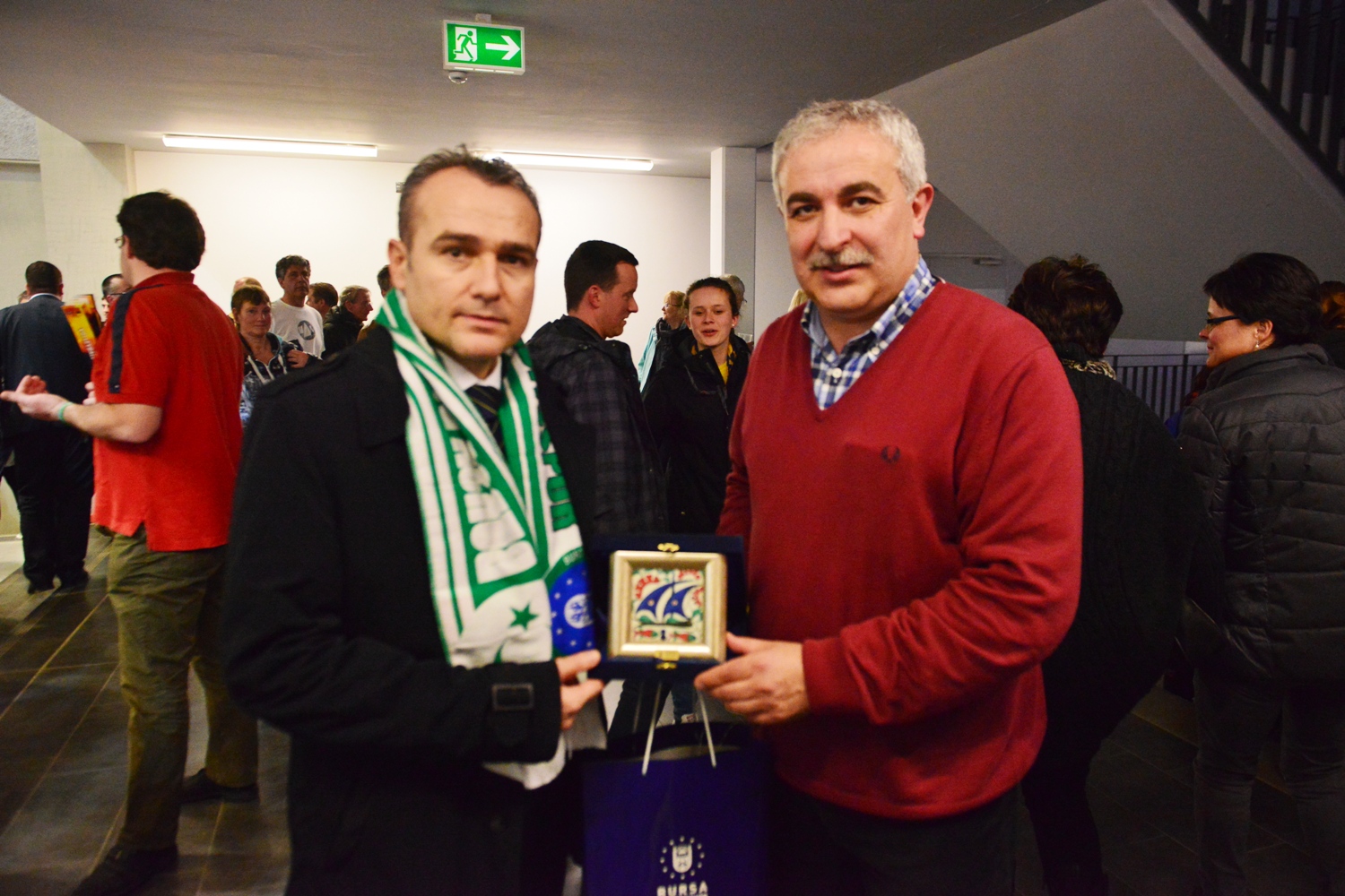 Hamburg Başkonsolos’u Mehmet Fatih Ak’ın da izlediği maçın ardından Bursa Büyükşehir Belediyespor Kulübü Başkan Yardımcısı İlhan Satık, Hamburg Başkonsolos’u Ak’a İznik Çinisi ve Bursa’ motifleri taşıyan hediyeler verdi. Temsilcimiz Bursa Büyükşehir Belediyespor yarı final rövanş maçını 29 Mart saat 15:00’te Cengiz Göllü Voleybol salonunda oynayacak.