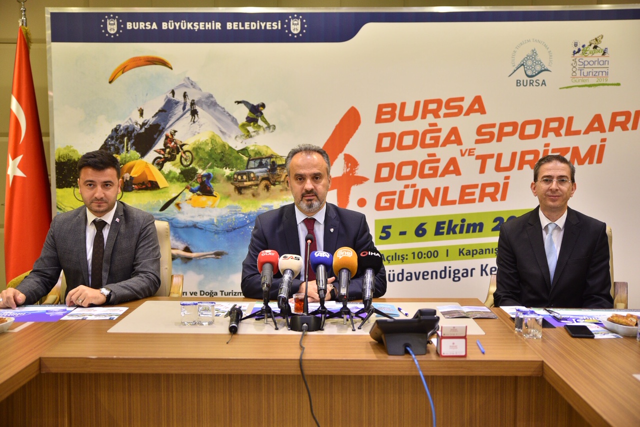 birçok seçenek var. Zengin turizm değerlerimiz var. Biz bu zenginliklerinden hareketle, doğru ve planlı çalışmalarla Bursa’mızın geleceğini inşa etmeye çalışıyoruz. Festivallerimizle, kongrelerimizle, içeriği zenginleştirilmiş ulusal ve uluslararası organizasyonlarla Bursa adını her platformda gündeme taşıyoruz. İnşallah bundan sonra daha da fazla gündeme gelecek. Büyükşehir Belediyesi olarak fiziki iyileştirmelerin yanında yaptığımız ulusal ve uluslararası etkinliklerle Bursa’nın turizm standartlarını yukarılara taşımaya devam edeceğiz. Kentimizin sahip olduğu doğal zenginlikleri ve yapılabilecek doğa sporlarını ulusal ve uluslararası alanda tanıtmak amacıyla doğa sporları ve doğa turizmi günleri etkinliğimizi dördüncü kez hayata geçiriyoruz. Önceki yıllarda olduğu gibi bu yıl da spor ve doğa tutkunlarını bir araya getireceğiz. Bu heyecanı hep birlikte yaşamak için 5-6 Ekim tarihlerinde tüm vatandaşlarımızı Hüdavendigar Kent Parkı’na bekliyoruz” diye konuştu.