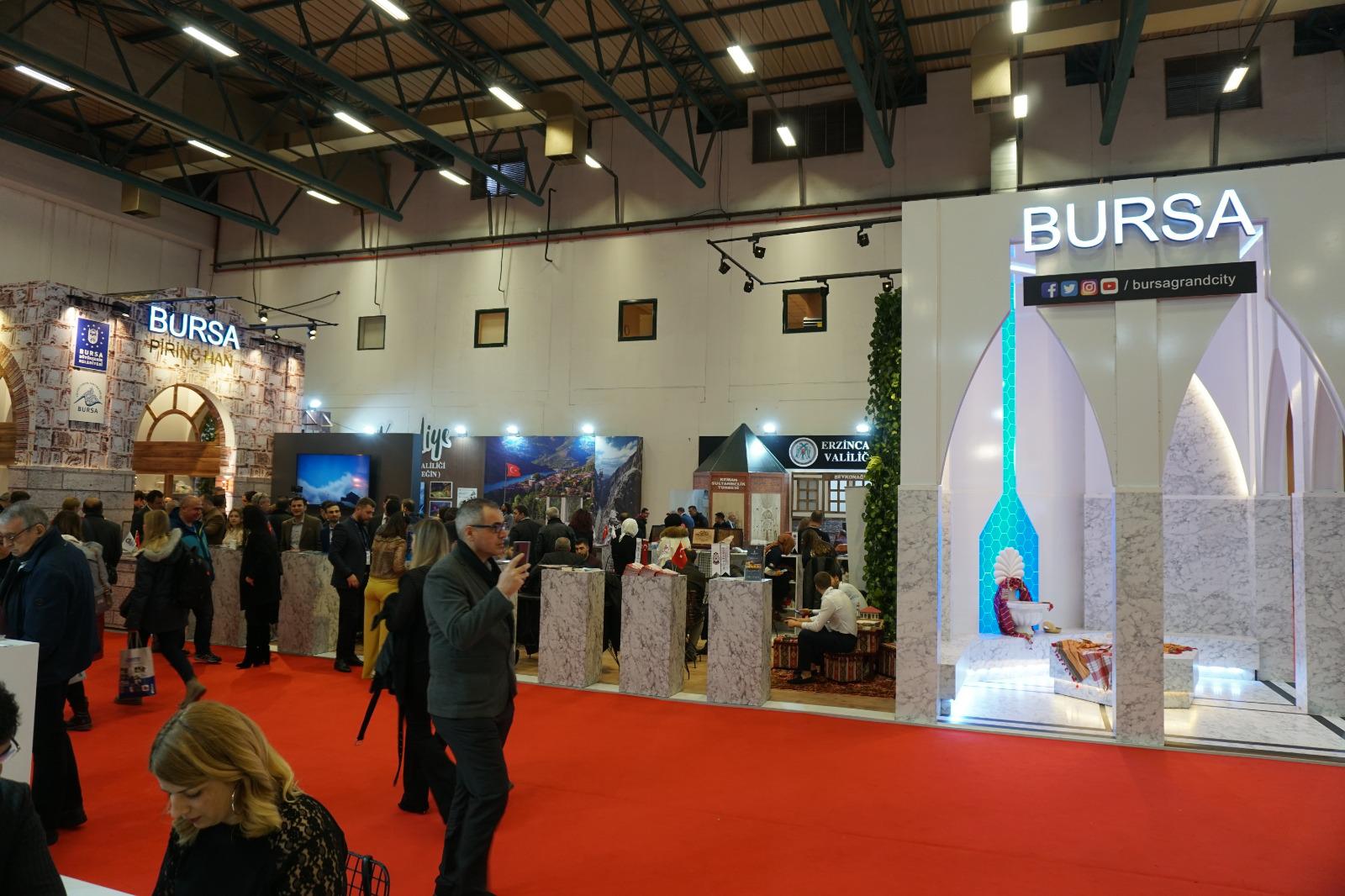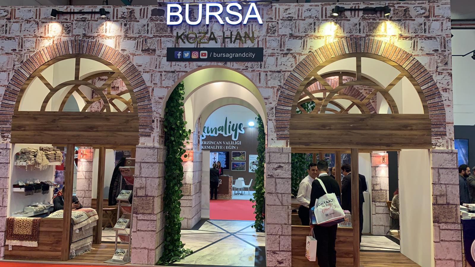 Sanayi kenti kimliği ile öne çıkan Bursa’nın rotasını turizm olarak belirleyen Bursa Büyükşehir Belediyesi’nin destekleriyle Bursa Kültür ve Turizm Tanıtma Birliği tarafından EMITT’te ayrıcalıklı bir stant kuruldu. Yaklaşık 110 metrekare alan üzerine kurulan stantta Bursa’nın tarihi kimliğini yansıtan Tarihi Çarşı ve Hanlar Bölgesi ile Bursa’nın hamamları tasvir edildi. Standın tarihi çarşıyı anlatan bölümünde oluşturulan küçük dükkanlarda Bursa İpeği, kestaneci ve kahveci dükkanları da oldukça ilgi gördü. Yine standın hamam bölümü ve Uludağ’ı yansıtan bölümlerinde de ziyaretçiler bol bol hatıra fotoğrafı çektirdi. Bursa Kültür ve Turizm Tanıtma Birliği Müdürü ve Büyükşehir Belediyesi Basın Yayın ve Halkla İlişkiler Dairesi Başkanı Ahmet Bayhan ile Turizm ve Tanıtma Şube Müdürü Ercüment Yılmaz da standı ziyaret eden turizm profesyonellerine Büyükşehir Belediyesi’nin destinasyon stratejileri ile kentin tarihi, doğal ve turistik yerleri hakkında bilgi verdi.