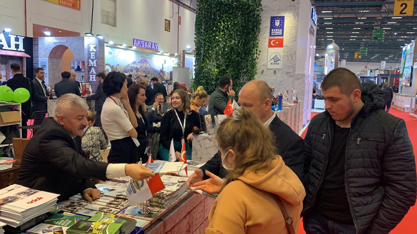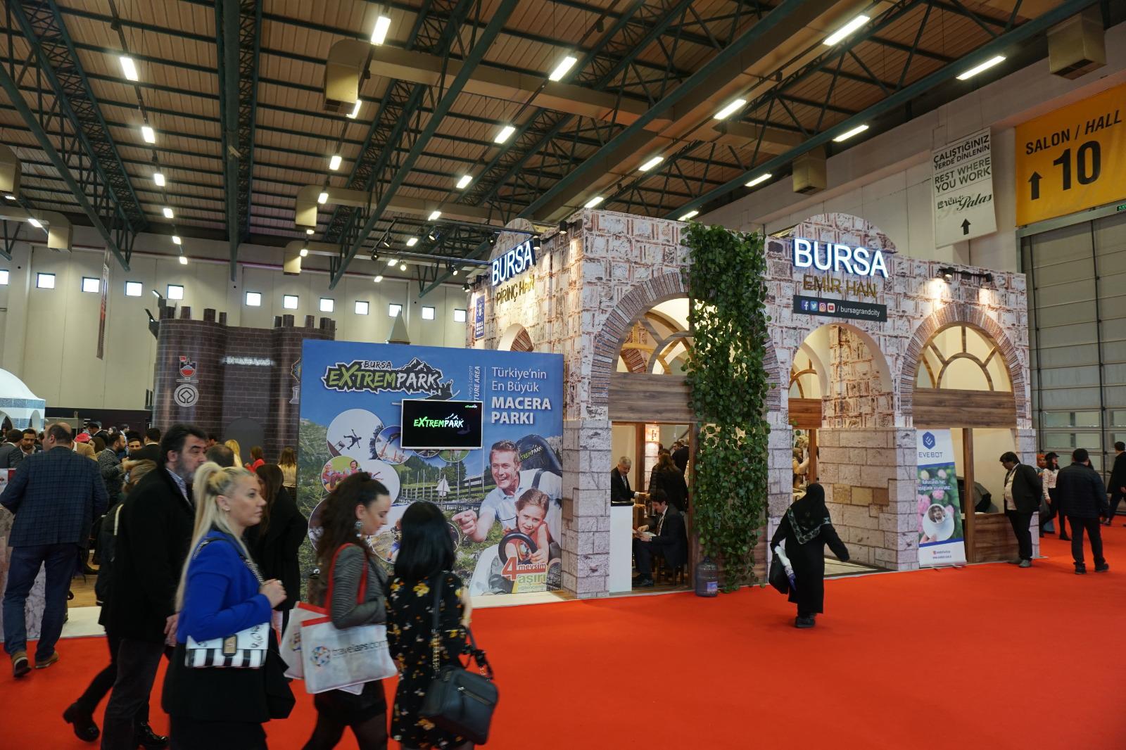 BURSA - Dünyanın en büyük dört turizm fuarından biri olan 24’üncü Doğu Akdeniz Uluslararası Turizm ve Seyahat Fuarı’nda (EMITT) Tarihi Çarşı ve Hanlar Bölgesi ile Bursa Hamamları temalı stantla yer alan Bursa’ya yerli ve yabancı turizmciler büyük ilgi gösterdi.