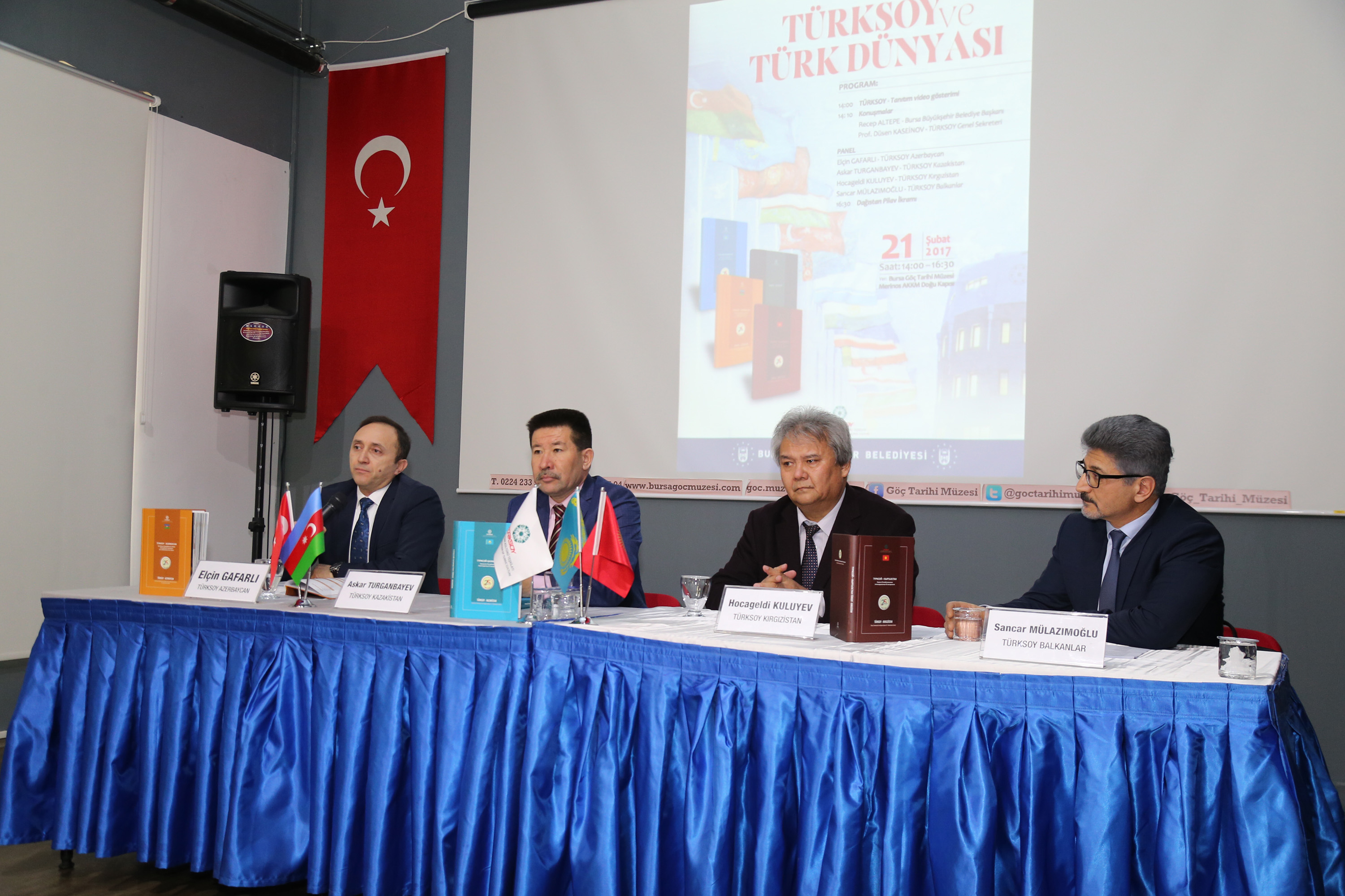 - BÜYÜKŞEHİR BELEDİYESİ VE ULUSLARARASI TÜRK KÜLTÜRÜ TEŞKİLATI (TÜRKSOY) İŞBİRLİĞİYLE ‘KAZAKİSTAN’IN TÜRKİSTAN ŞEHRİNİN 2017 TÜRK DÜNYASI KÜLTÜR BAŞKENTİ İLAN EDİLMESİ MÜNASEBETİYLE’ BURSA’DA ‘TÜRKSOY VE TÜRK DÜNYASI’ KONULU PANEL DÜZENLENDİ.
