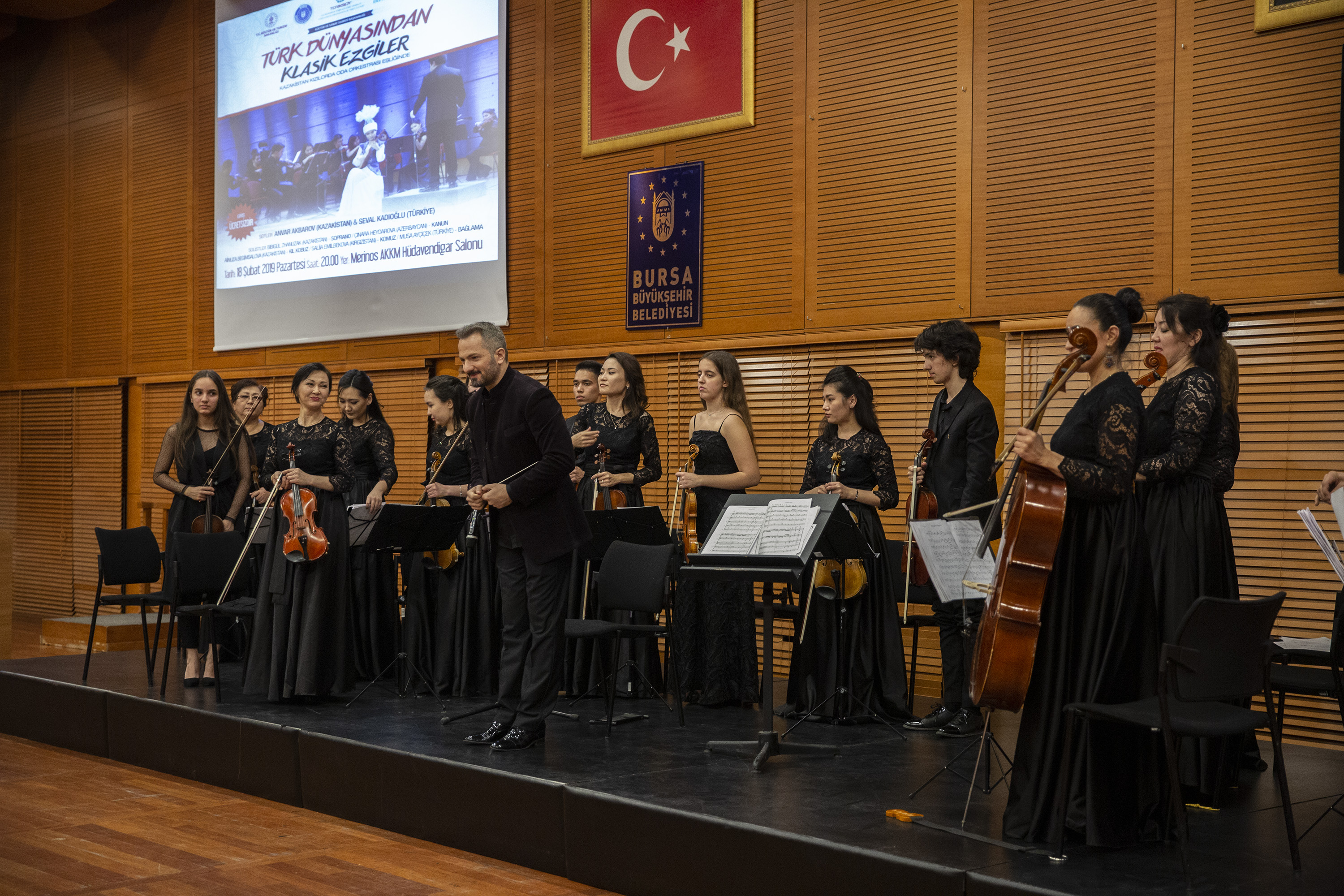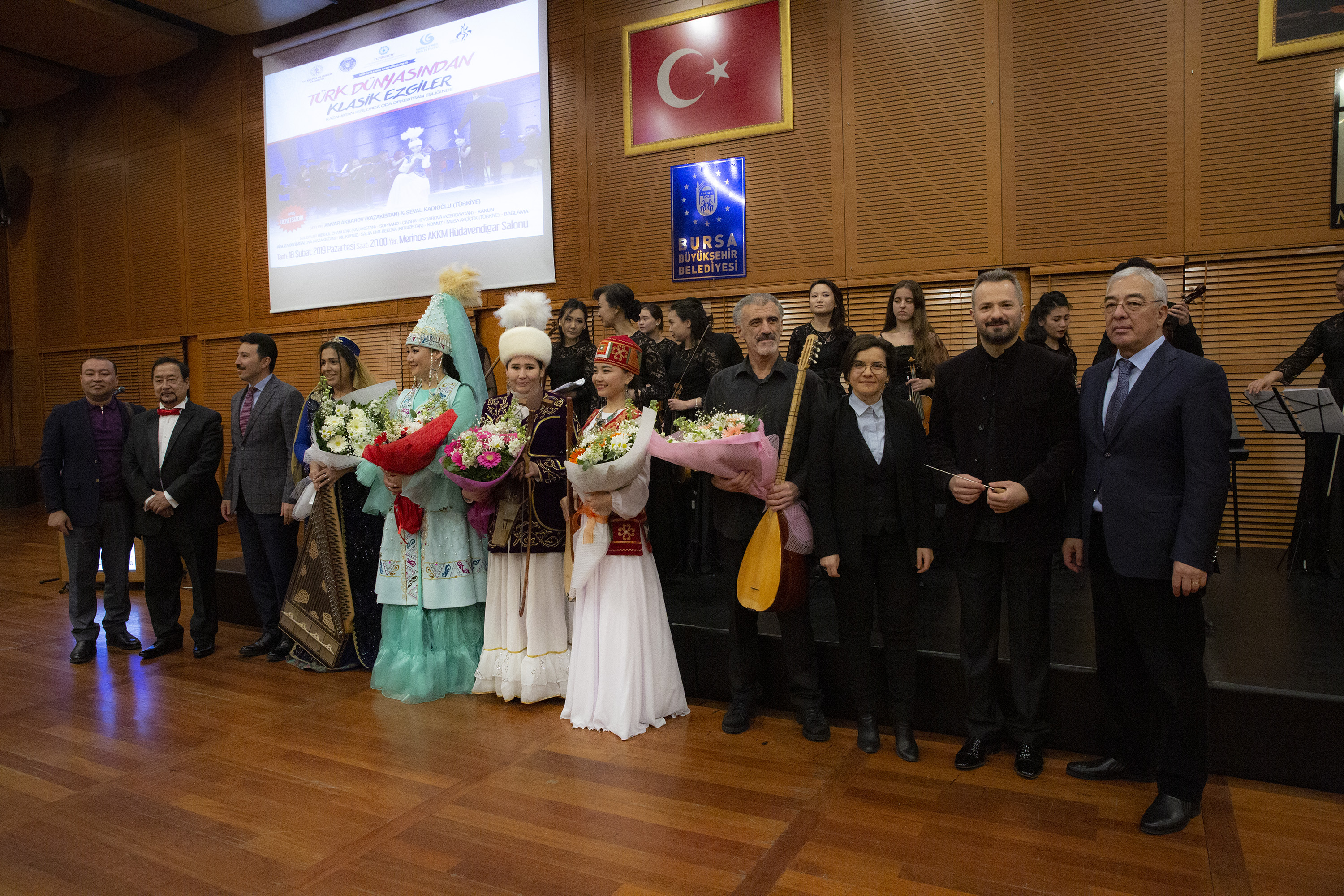 BURSA – Uluslararası Türk Kültürü Teşkilatı TÜRKSOY ile işbirliği halinde farklı projelere imza atan Bursa Büyükşehir Belediyesi bu kez Kazakistan Kızılorda Oda Orkestrası eşliğinde Türk dünyasından klasik ezgiler konserine ev sahipliği yaptı.