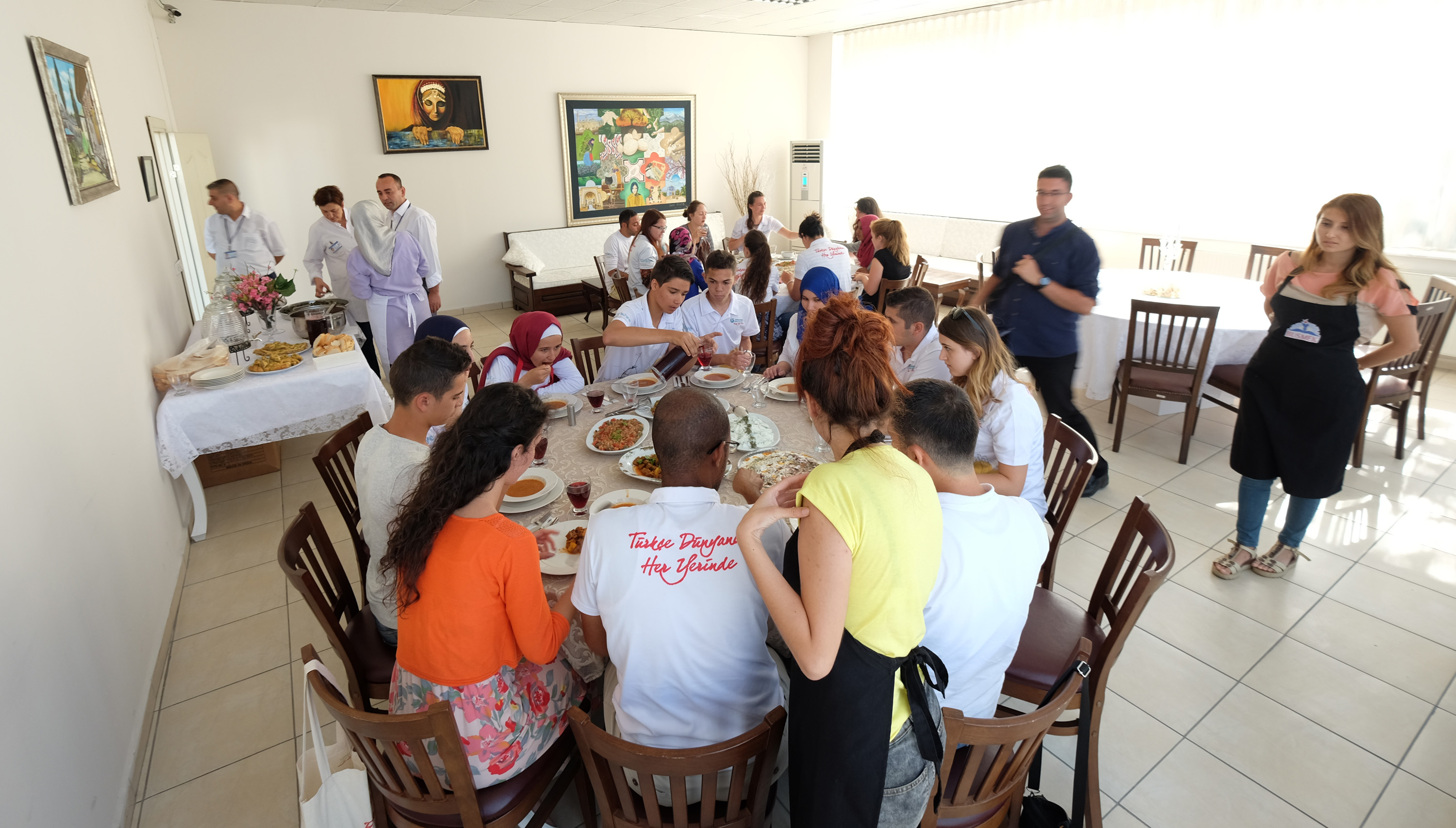 Yabancı öğrenciler BUSMEK Mesleki Eğitim Merkezi’nde de mutfağa girerek hünerlerini sergilediler. Mesleki Eğitim Merkezi Yiyecek ve İçecek Hizmetleri ekibiyle birlikte Türk mutfağına ait lezzetleri hazırlayan öğrenciler keyifli anlar yaşadılar. Tarhana çorbası, közde patlıcan salatası, tas kebabı, Kayseri mantısı, yaprak sarma, kıymalı biber dolması ve baklavadan oluşan zengin mönüyü hazırlayan öğrenciler, Türk yemeklerini çok beğendiklerini söylediler.