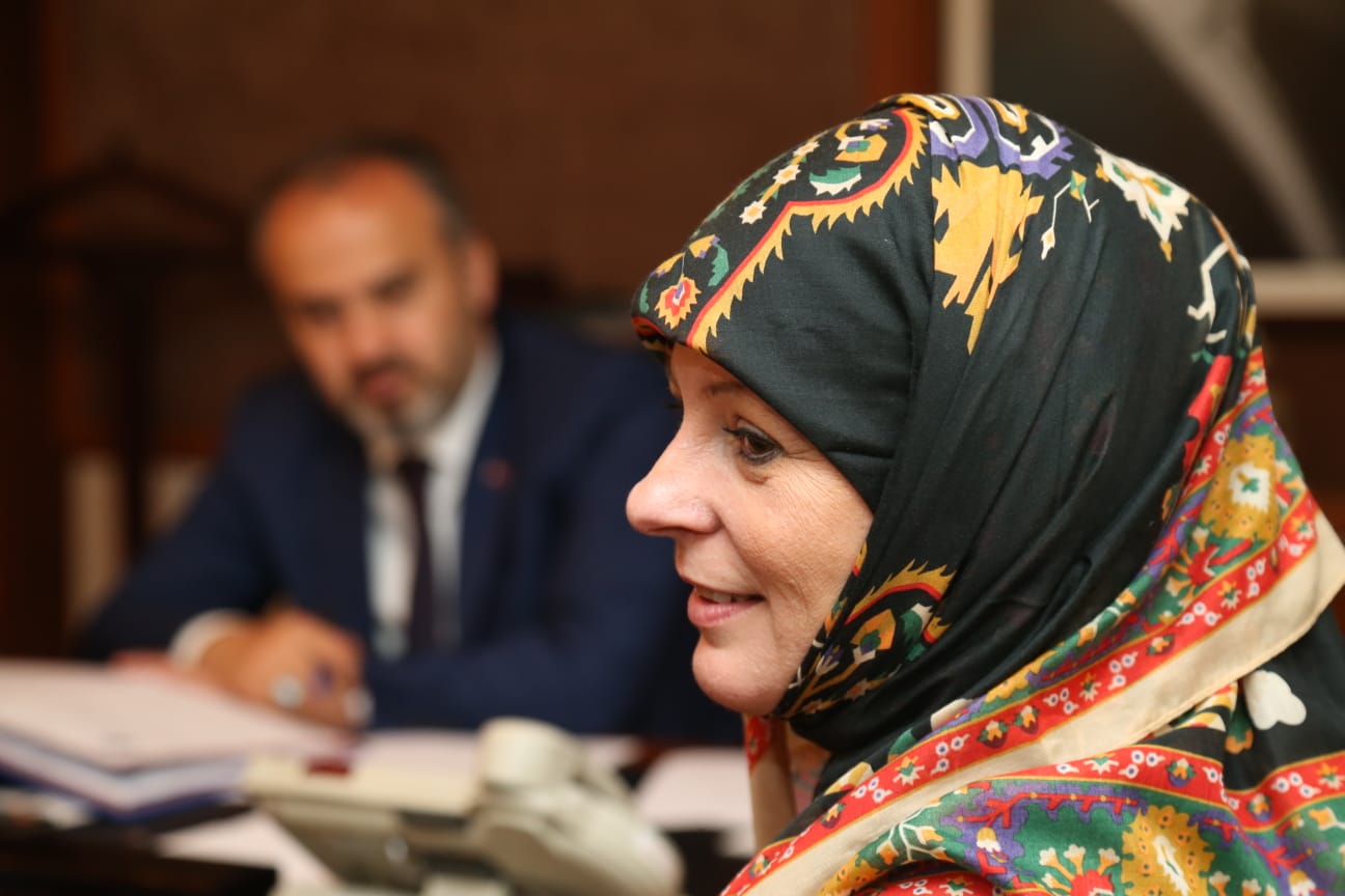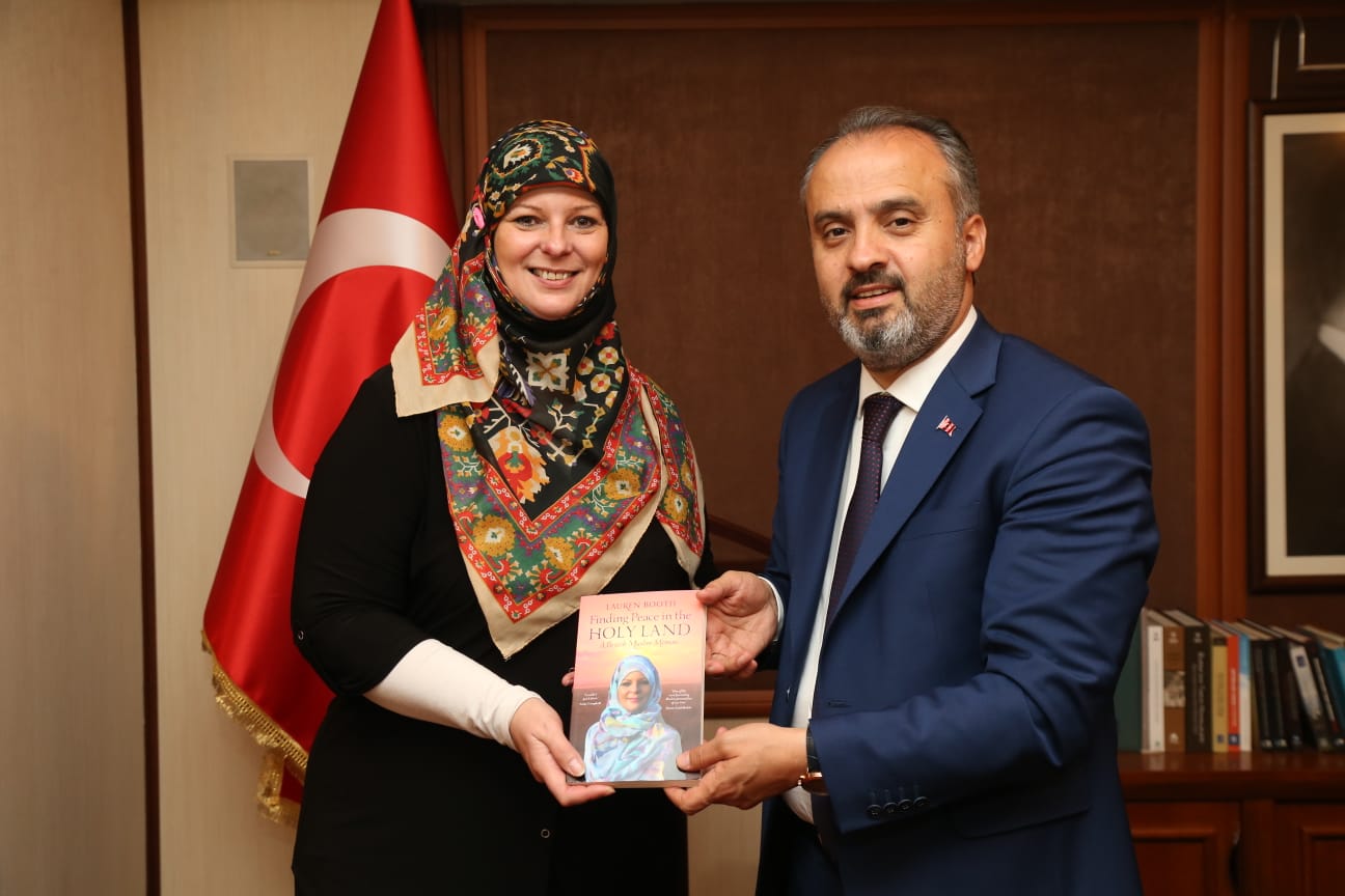 BURSA - Bursa Büyükşehir Belediye Başkanı Alinur Aktaş, İngiltere’nin eski başbakanlarından Tony Blair’in baldızı olan Gazeteci Lauren Booth’u ağırladı. Müslüman olduktan sonra 8 yılda 32 İslam ülkesini gezdiğini ve her yerde farklı özelliklere şahit olduğunu anlatan Booth, Türkiye’nin Batı’daki Müslümanlar tarafından rol model olarak benimsendiğini söyledi.