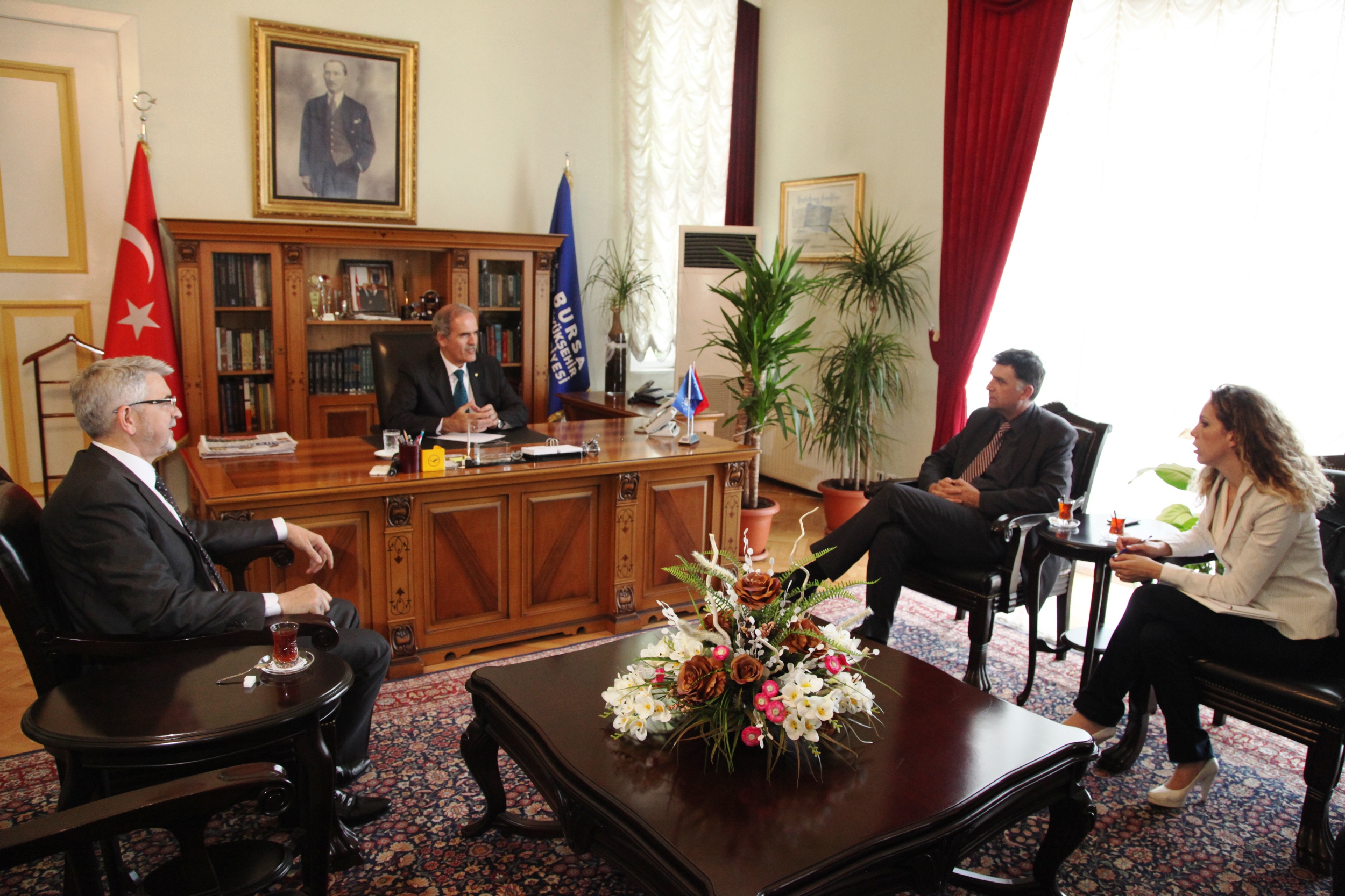 Bosna Hersek Büyükelçisi Damir Dzanko, Bosna Hersek Fahri Konsolosu Muzaffer Çilek ile birlikte Bosna Hersek’te yaşanan sel felaketinin yaralarını sarmak için Bursa’da yerel yöneticilerle görüşüyor. Büyükşehir Belediye Başkanı Recep Altepe ile Tarihi Belediye Binası’nda bir araya gelen Büyükelçi Dzanko, Başkan Altepe’ye ülkedeki durumu anlatarak, destek istedi.