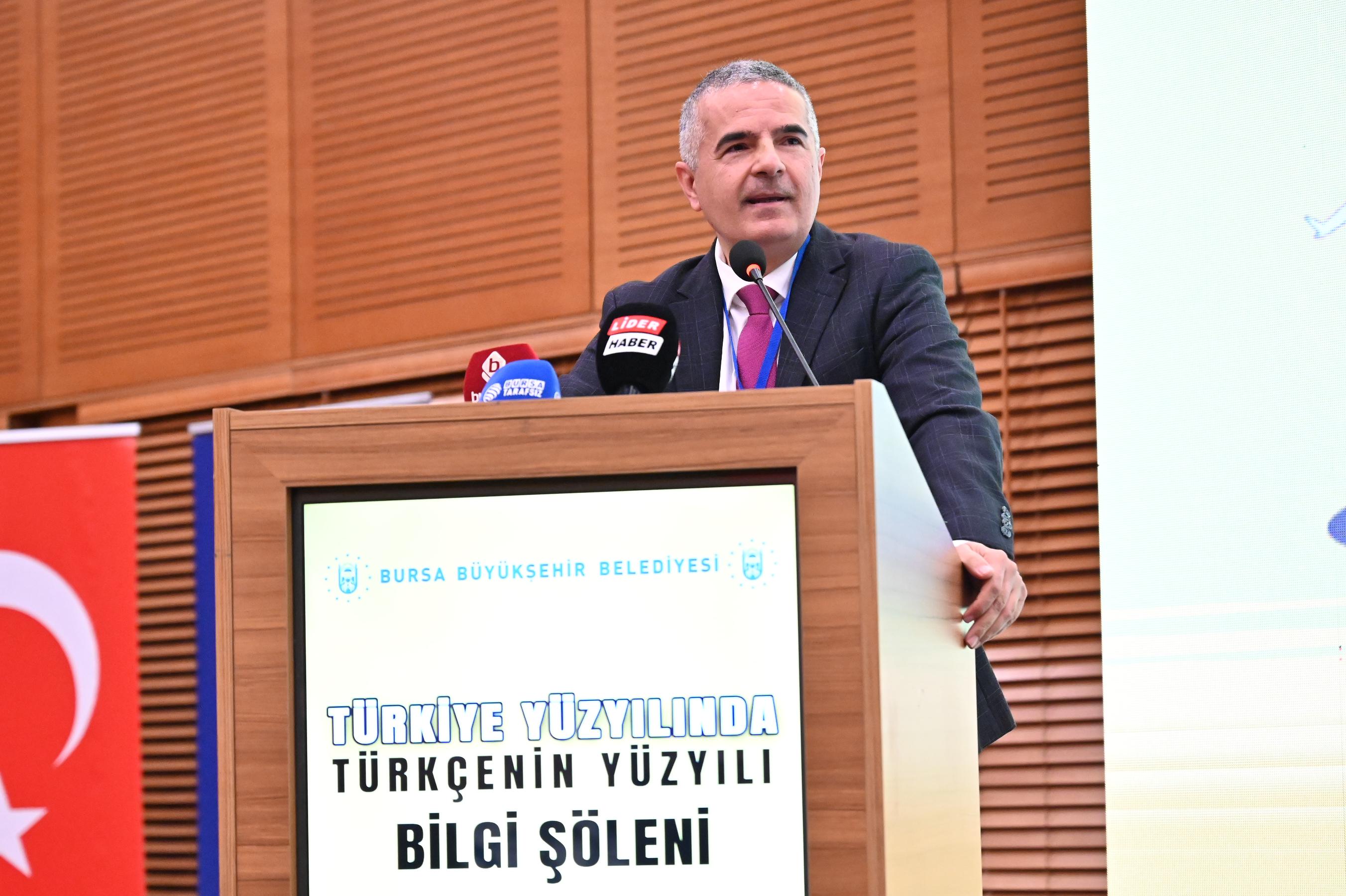 Programda konuşan Türk Dil Kurumu Yüksek Uzmanı Yaşar Yılmaz, Türk milletinin geniş coğrafyada derin köklere sahip olduğunu söyledi. Türk milletinin en eski izlerinin Çin askeri kaynaklarında görüldüğünü belirten Yılmaz, “Asya’dan, Avrupa’nın içine kadar her yönüyle izlerini gördüğümüz Türk milleti böylesine geniş bir coğrafyaya yayılmanın yanında geniş köklere sahiptir. Maddi ve manevi bu kültürü oluşturan derin köklerin en eski izlerini Çin askeri kaynaklarında, Köktürk Yazıtlarında, Divan-ı Lügat-it Türk’te görüyoruz. Bilimsel çalışmalar yapmak üzere Türkiyat Araştırmaları Enstitüsü, Türk Tarih Kurumu, Türk Dil Kurumu, Dil-Tarih Coğrafya Fakültesi gibi kısa sürede peş peşe kurumlar kuruldu. Özellikle Türk tarihinin, kültürünün ve dilinin derin köklerine inilerek çok önemli çalışmalar yapılmıştır. Büyükşehir Belediyesi'nin katkılarıyla düzenlenen Türkçenin Yüzyılı Bilgi Şöleni bu duyarlılığın devamını gösteriyor” dedi.