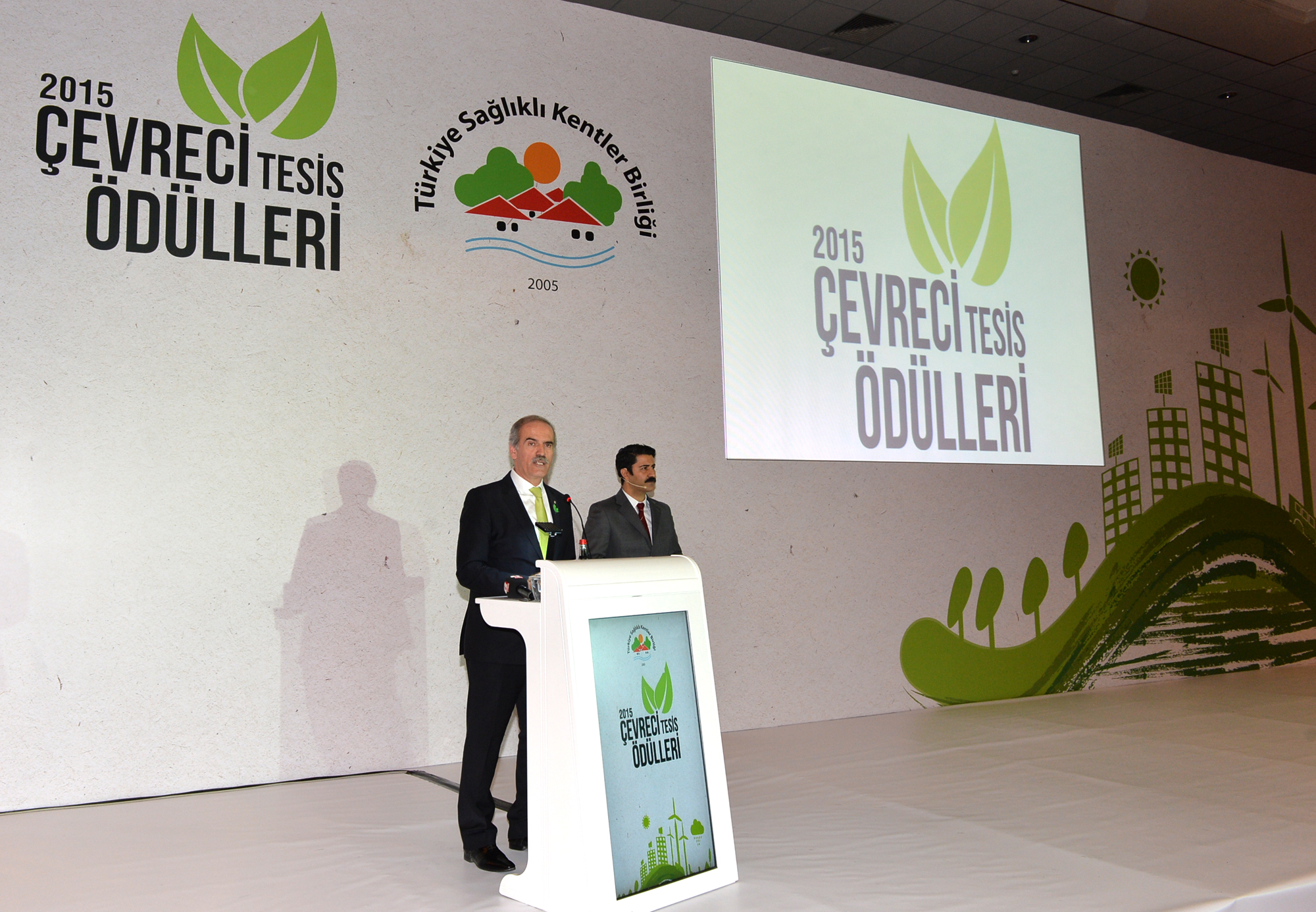 İstanbul Hilton Otel’de gerçekleştirilen ödül törenine Sağlık Bakanı Dr. Mehmet Müezzinoğlu, İstanbul Büyükşehir Belediye Başkanı Kadir Topbaş, Türkiye Sağlıklı Kentler Birliği ve Bursa Büyükşehir Belediye Başkanı Recep Altepe, birliğe üye belediyelerin temsilcileri, organize sanayi bölgelerinin başkanları, iş adamları ve basın mensupları katıldı. Türkiye Sağlıklı Kentler Birliği ve Bursa Büyükşehir Belediye Başkanı Recep Altepe, sağlığa duyarlı üretim yapan tesisler ile organize sanayi bölgelerini tüm Türkiye’ye duyurmak, vatandaşlar adına şükran duygularını ifade etmek için çevreci ödül törenini düzenlediklerini hatırlattı. Çevreye duyarlı tesisler ile organize sanayi bölgelerinin insan sağlığını iyileştirmek için yürüdükleri yolda kendileri için birer moral kaynağı olduğunu kaydeden Başkan Altepe, ilkini 1 Mart 2013 tarihinde düzenledikleri organizasyonun ikincisinde 48 tesis ile 9 organize sanayi bölgesinin daha adını Türkiye’ye duyurmaktan büyük mutluluk duyduklarını söyledi. Ödül töreni değerlendirme süreci boyunca verdikleri destek nedeniyle birliğe üye belediyeler ile danışma kurulu üyelerine teşekkür eden Başkan Altepe, “Bugün burada örnek tesislerimiz ve organize sanayi bölgelerinin temsilcileriyle birlikte olmak, gurur ve cesaret verici. Ayrıca bu organizasyonumuzda bizleri yalnız bırakmayan Sağlık Bakanımız Dr. Mehmet Müezzinoğlu’na şükranlarımı sunuyorum” dedi.