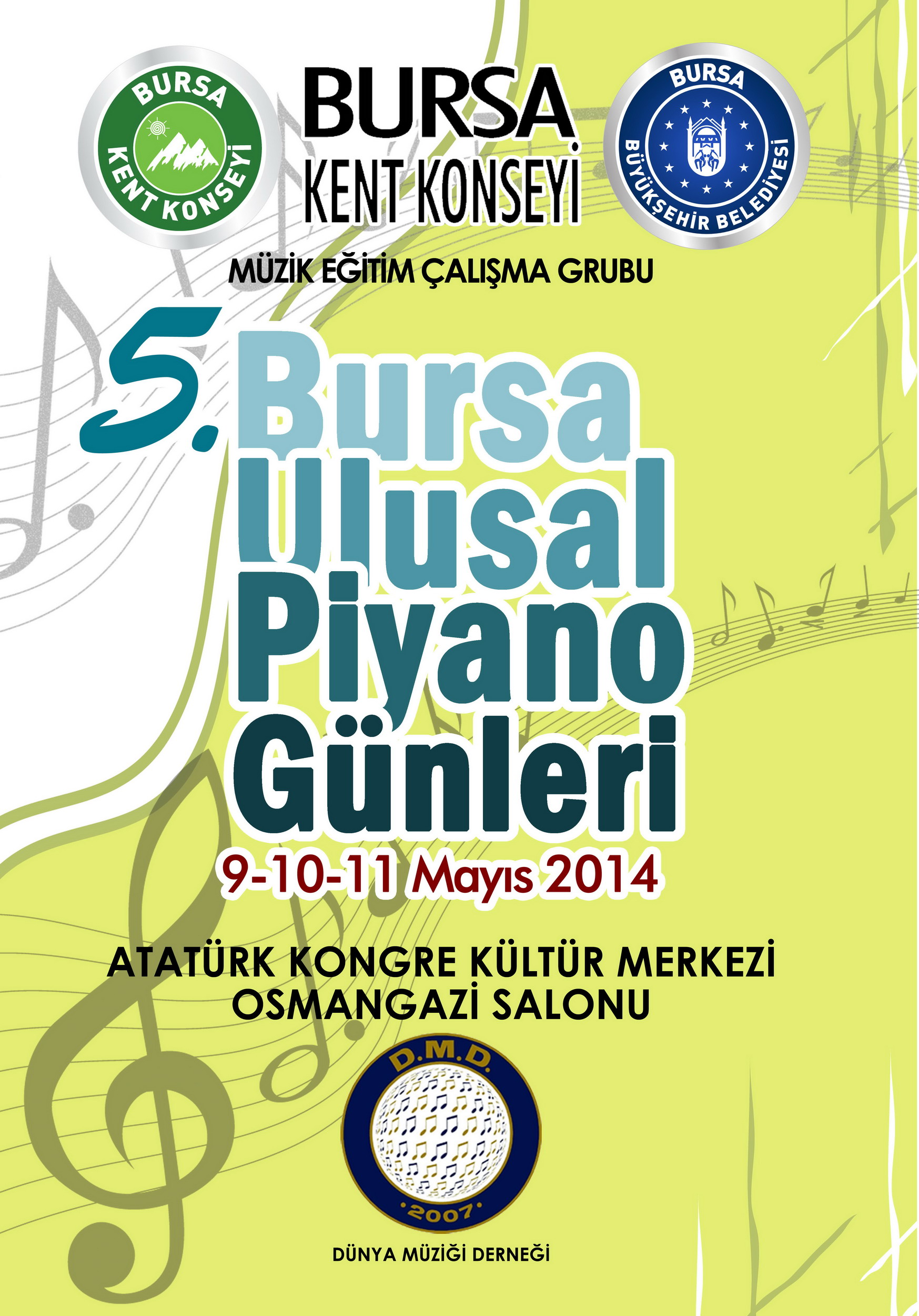- Bursa Kent Konseyi (BKK) Müzik Eğitim Çalışma Grubu ve Dünya Müzik Derneği tarafından bu yıl 5.’si düzenlenen ‘Bursa Ulusal Piyano Günleri’, 800 minik piyanistin katılımıyla başladı.