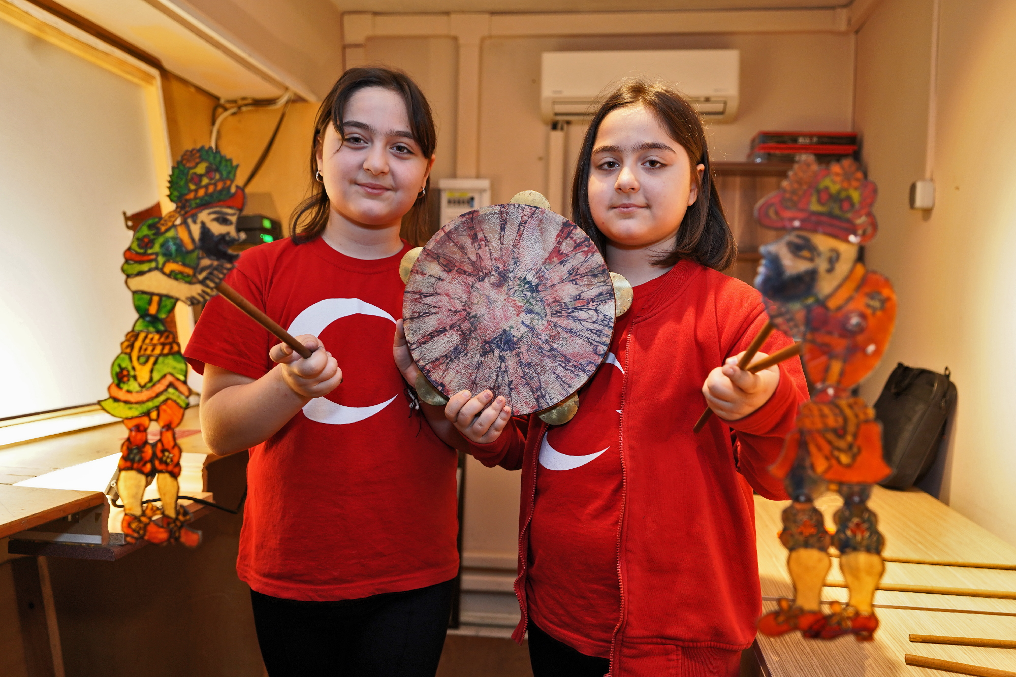 Yıl boyunca yoğun ilgi gören Büyükşehir Belediyesi Karagöz Müzesi, gösterilerin yanı sıra yapılan atölye çalışmalarıyla da karagöz gölge oyununu yeni nesillere aktarıyor. İki yıl önce gölge oyununu izlemek için geldikleri Karagöz Müzesi’nde tasvirlerin perde üzerinde canlandırılmasından etkilenen Görükle Hazinedar Özkan İlkokulu 4.sınıf öğrencileri Masal ve Destan Aykut kardeşler, sonrasında Karagöz Tasarım atölyesine düzenli olarak katılım sağladı. Atölyede ustalardan karagöz gölge oyununun tarihçesi, tasvir tasarım ve oynatma dersleri alan küçük hayaliler, ailesi ve arkadaşlarının da desteğiyle ilk gösterilerini sergiledi. Karagöz Müzesi’nde sınıf arkadaşları ve ailesine yaptıkları eğlenceli gösteri büyük beğeni toplarken, sınıf arkadaşları Bursalı ikizleri dakikalarca alkışladı.