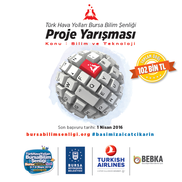 - BURSA BİLİM TEKNOLOJİ MERKEZİ EV SAHİPLİĞİNDE TÜRK HAVA YOLLARI’NIN ANA SPONSORLUĞUNDA BU YIL 5’İNCİSİ DÜZENLENEN BİLİM ŞENLİĞİ KAPSAMINDA YAPILACAK TOPLAM 102 BİN LİRA ÖDÜLLÜ PROJE YARIŞMASINA TÜRKİYE’NİN DÖRT BİR YANINDA HALEN 200 BAŞVURU YAPILIRKEN, SON BAŞVURU TARİHİ OLAN 1 NİSAN’A KADAR BAŞVURU SAYISININ 600’E ULAŞMASI BEKLENİYOR.