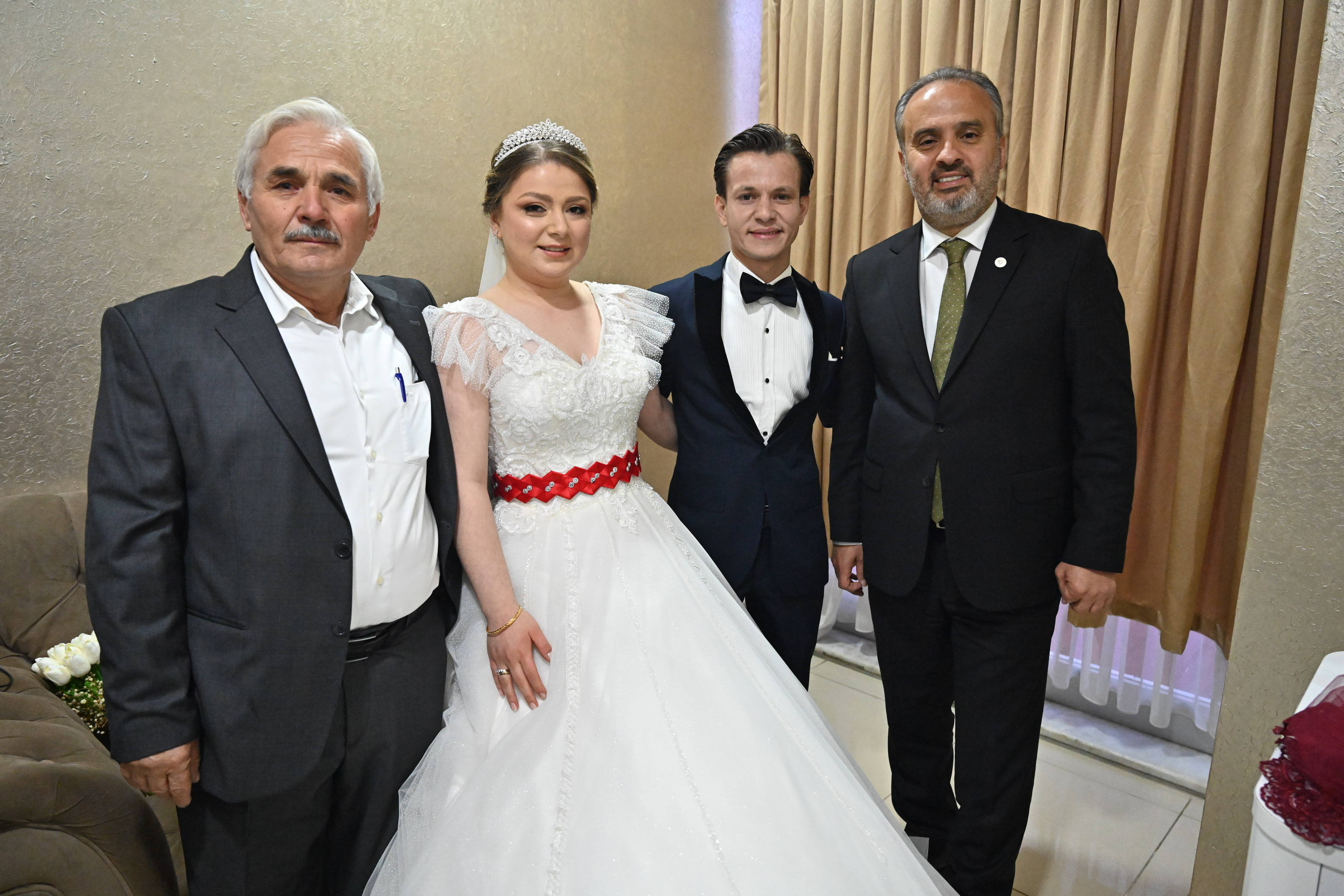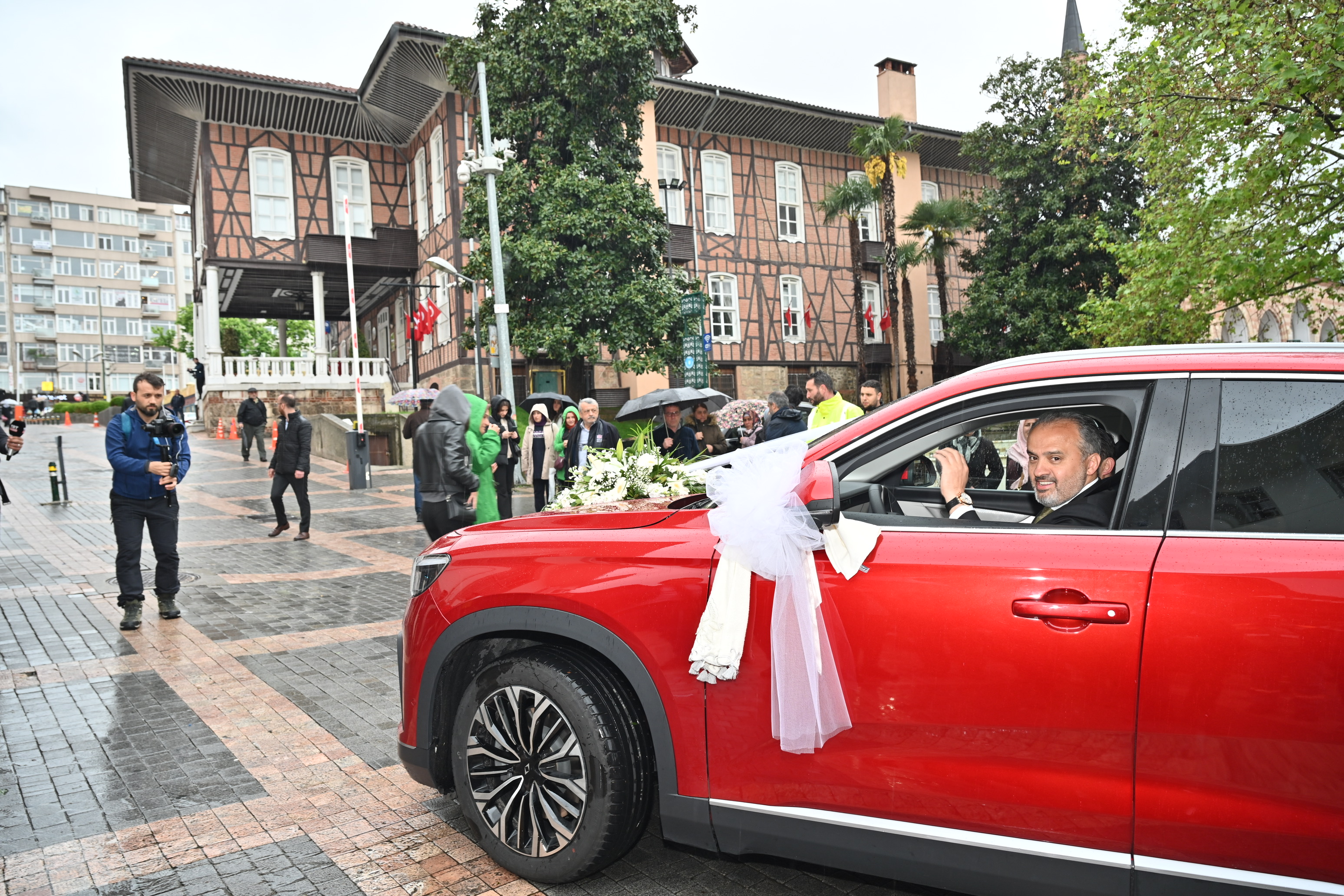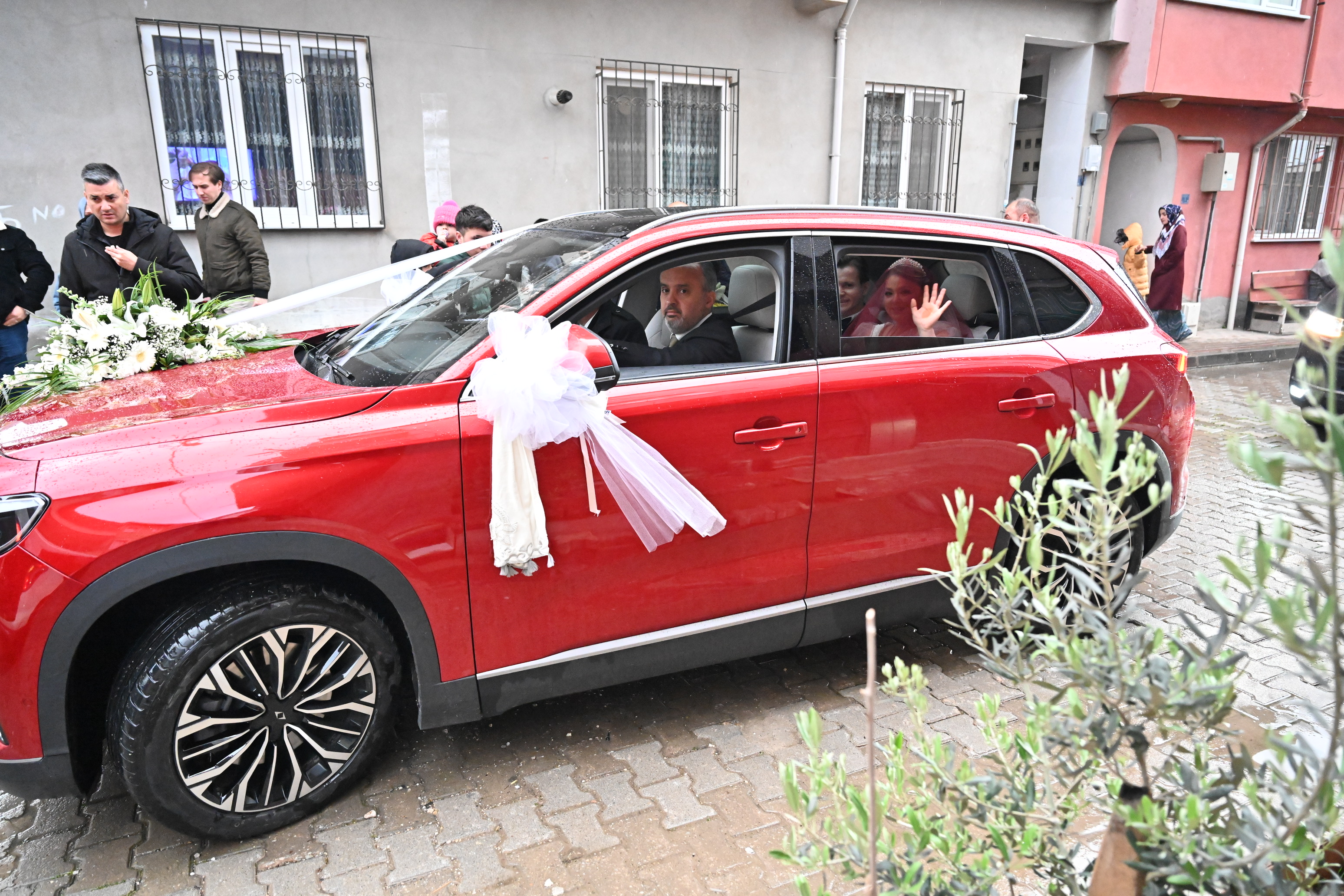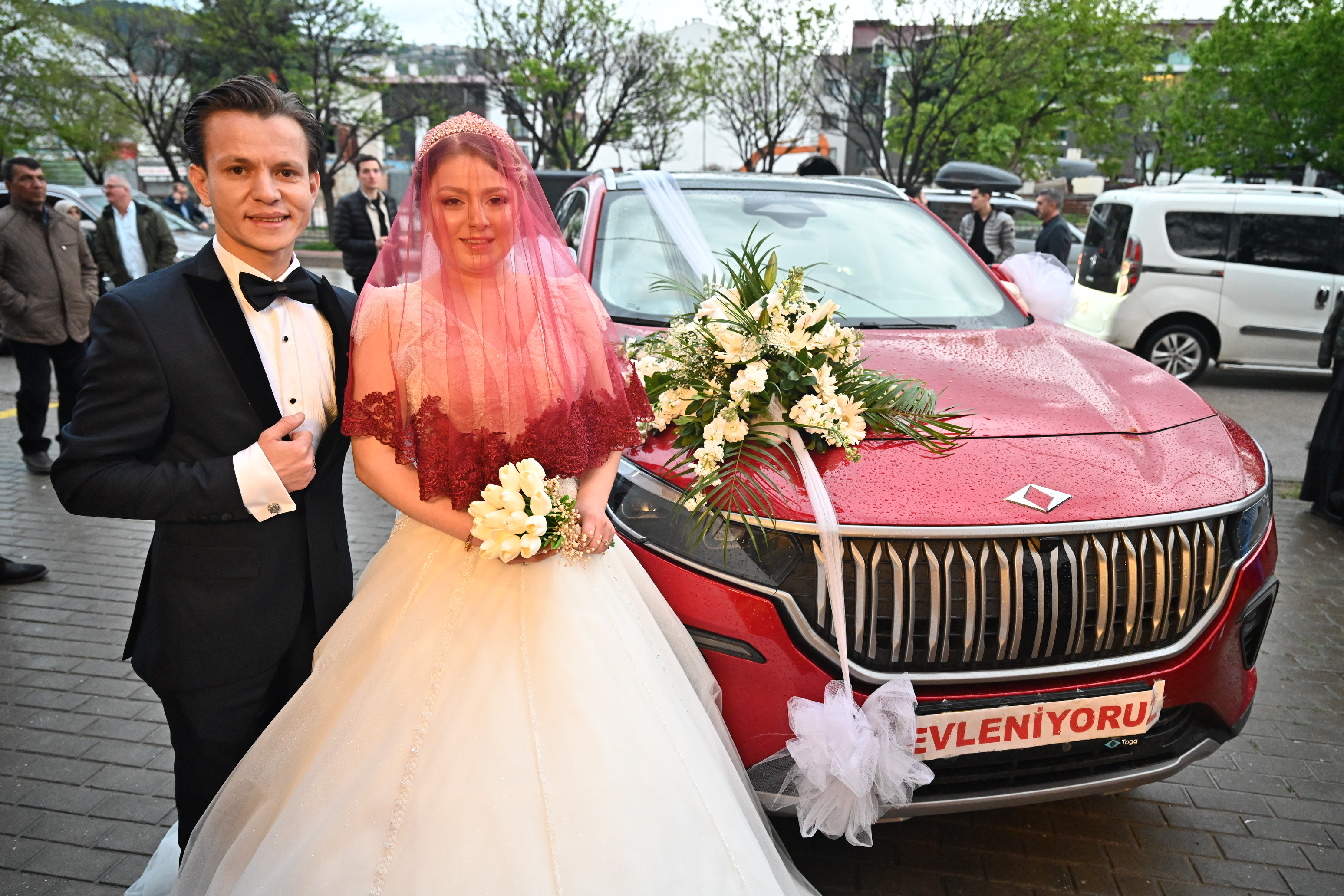 Bursa’dan milletvekili adayı olan Sanayi ve Teknoloji Bakanı Mustafa Varank, önceki gün bir kültür merkezi açılışında yanına gelen Hüseyin Özdemir’in düğünü olacağını öğrenince, jest yapıp kendisinin kullandığı Anadolu Kırmızısı Togg’u gelin arabası olacağının sözünü vermişti. Bakan Varank, sözünü tuttu ve aracı teslim ettiği Bursa Büyükşehir Belediye Başkanı Alinur Aktaş da şoförlüğünü yapacağı Togg’u süsletip, gelin arabasına dönüştürdü. Direksiyona geçen Başkan Aktaş, yanına aldığı damat Hüseyin Özdemir ile konvoy eşliğinde gelin Habibe Fatsa Özdemir'in Gemlik ilçesindeki evine geldi. Gelenekler gereği Türk Bayrağı açılarak, havai fişeklerle karşılanan konvoyda en büyük ilgiyi Türkiye’nin otomobili çekti. Gelin Habibe Fatsa Özdemir'i baba evinden dualar eşliğinde alan Başkan Aktaş, genç çifti düğün salonuna kadar götürdü.