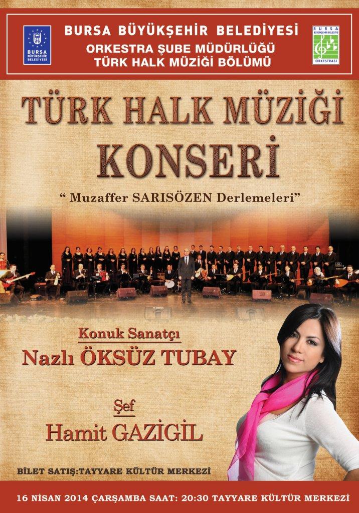 BURSA – Büyükşehir Belediyesi Orkestra Şube Müdürlüğü Türk Halk Müziği Bölümü’nün Nisan ayı konseri, 16 Nisan Çarşamba günü saat 20.30’da Tayyare Kültür Merkezi’nde gerçekleştirilecektir.