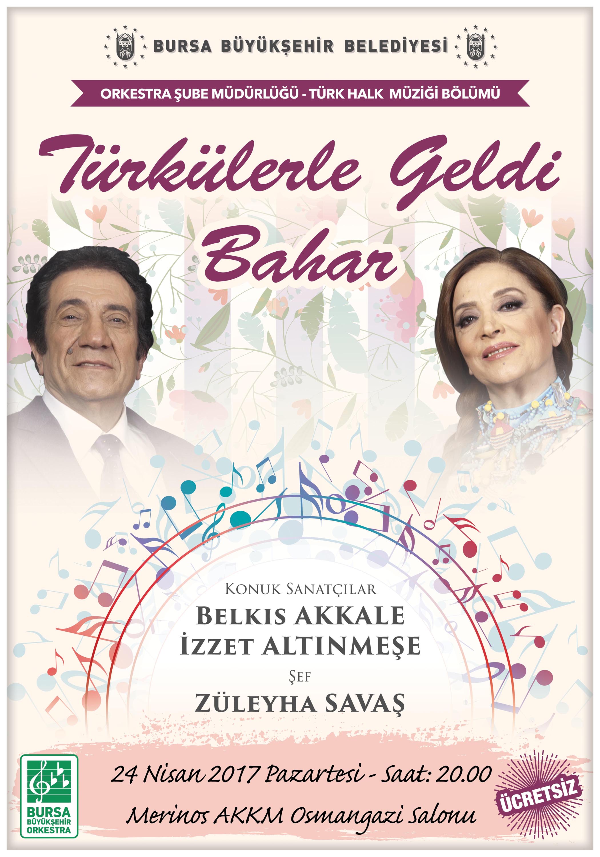 BURSA – Bursa Büyükşehir Belediyesi Orkestra Şube Müdürlüğü Türk Halk Müziği Bölümü’nün ‘Türkülerle Geldi Bahar’ temalı konseri, 24 Nisan Pazartesi, saat 20.00’da Atatürk Kongre Kültür Merkezi (Merinos AKKM) Osmangazi Salonu’nda gerçekleştirilecektir.