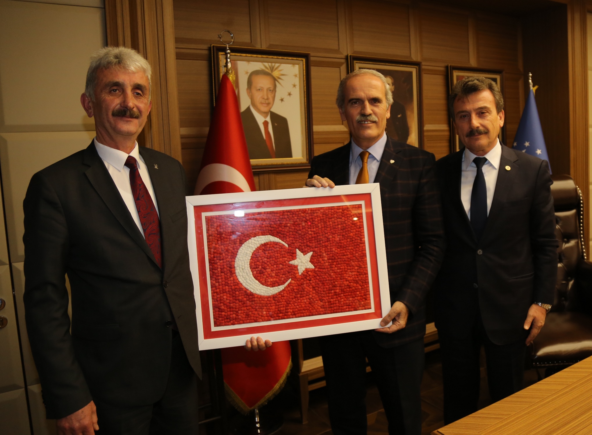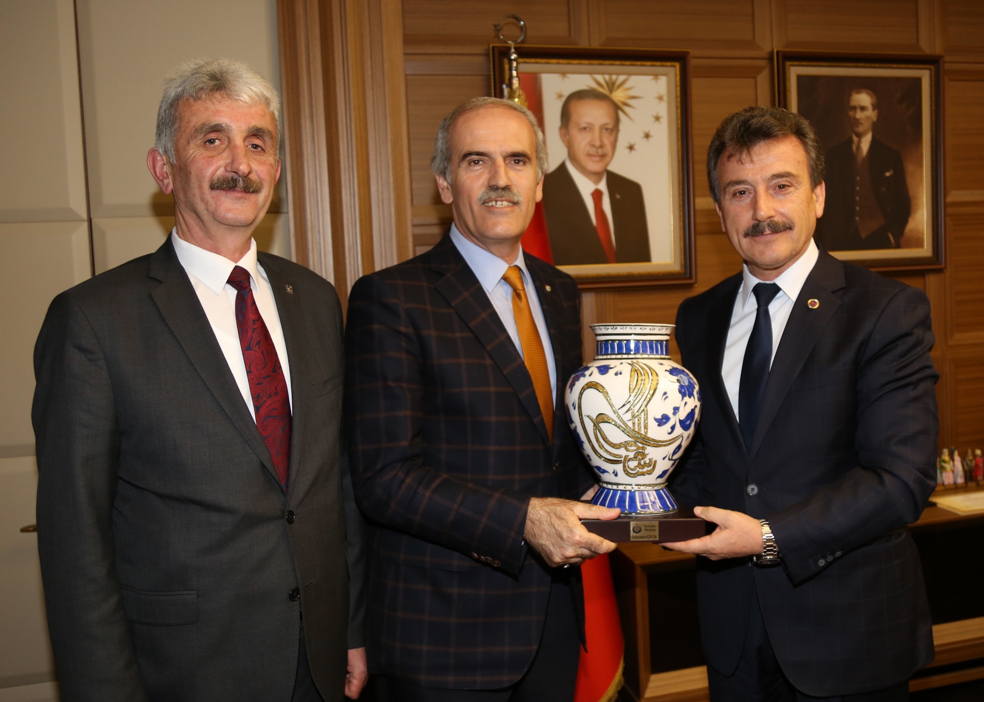 Yenişehir Belediye Başkanı Süleyman Çelik, ziyaretin anısına Başkan Altepe’ye çiniden vazo hediye etti. Ak Parti İlçe Başkanı Adnan Kamil de kozadan yapılmış Türk Bayrağı tablosu takdim etti. Başkan Altepe, Yenişehir ekibiyle hatıra fotoğrafı çektirdi.