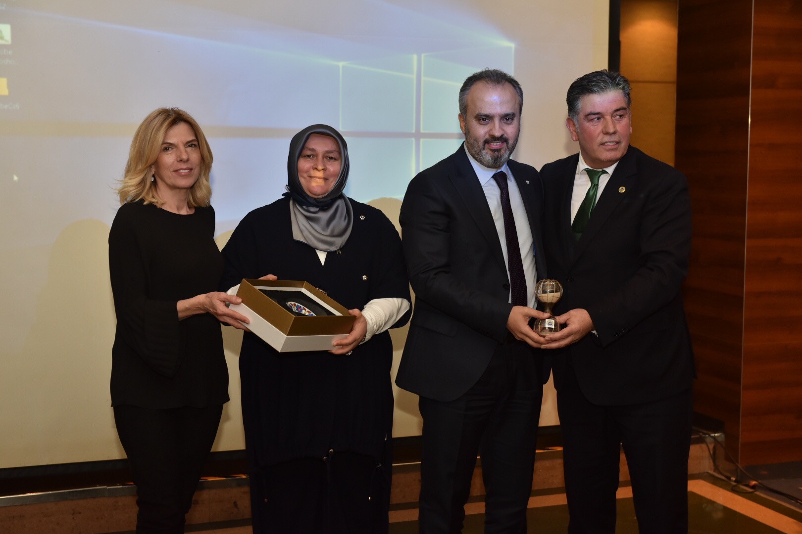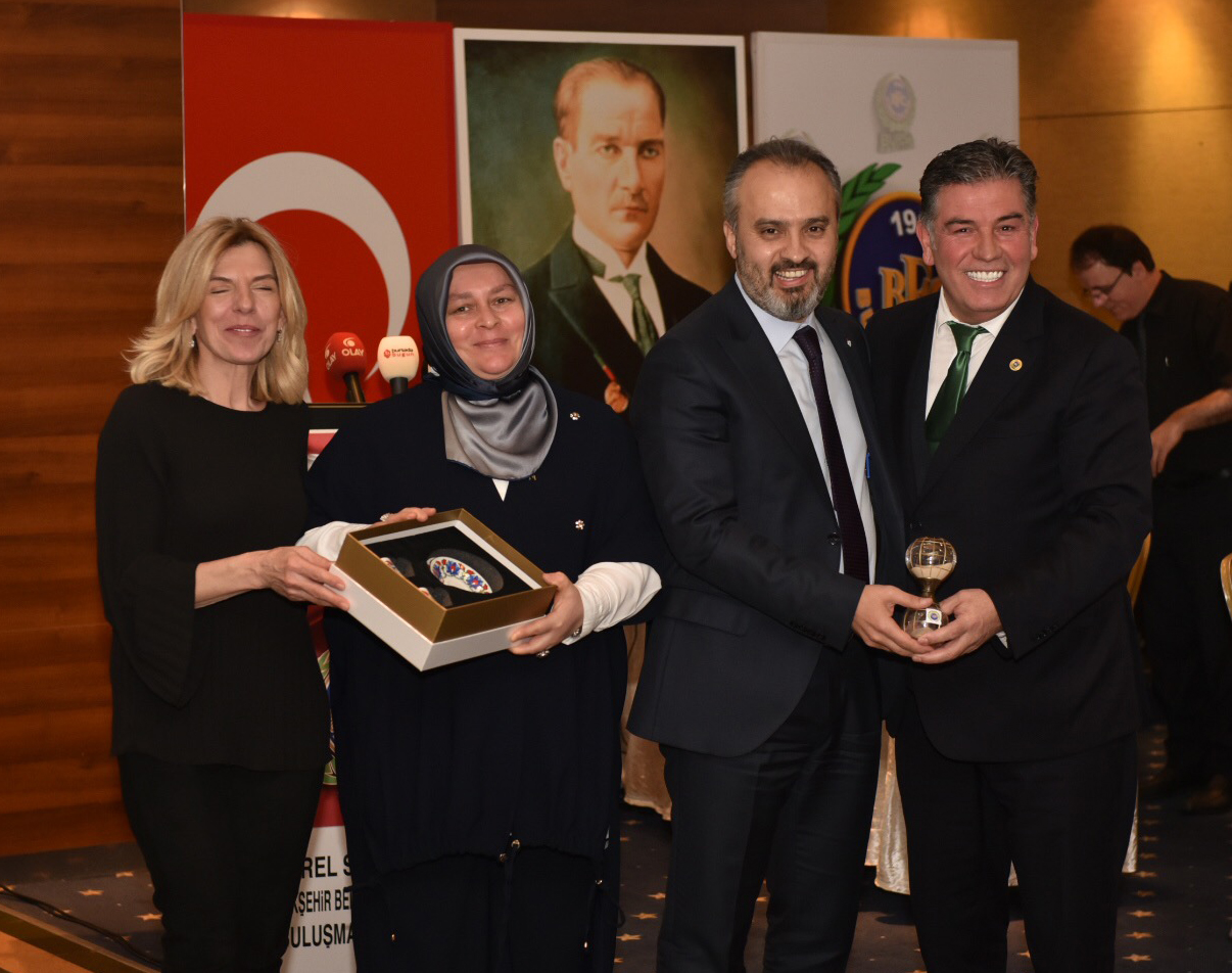 Bursa Fan Club Başkanı Ali Ademoğlu da Bursa’nın değerlerine ve Fan Club olarak yapılan çalışmalara değindiği sunumunun ardından Başkan Aktaş’a katılımından dolayı hediye takdim etti.