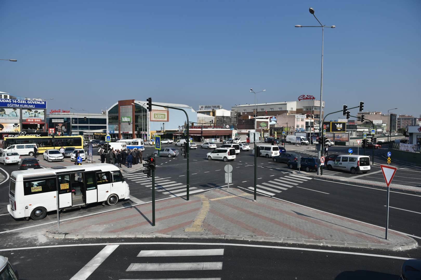 Bursa’nın 2035 yılını hedef alan Trafik Master Planı’yla ilgili çalışmaları kesintisiz sürdüren Büyükşehir Belediyesi, diğer taraftan yaklaşık bir yıl önce devreye aldığı Ulaşım Acil Eylem Planı’nda kararlı adımlarla sonuca ilerliyor. Trafik ışıklarında bekleme sürelerinin kısaltılması ve aynı anda çok daha fazla araca geçiş imkanı sağlayan akıllı kavşak modelleri ile kent merkezinde trafikte gözle görülür bir rahatlama sağlandı. Acil Eylem Planı doğrultusunda Esentepe, Otosansit, Tuna Caddesi FSM Bulvarı, Beşevler, Emek Besaş, Çalı Hafize Hatun Camii, İnegöl AVM, Orhaneli, Polis Okulu, İnegöl Belediye Önü, Gökdere, Mihraplı-Akpınar, Gürsu, İnegöl Adliye ve İnegöl Bedresu kavşaklarında çalışmalar tamamlandı. Kavşak düzenleme çalışmalarına son halka olarak Yüksek İhtisas Kavşağı da eklendi. Prof. Tezok, 11 Eylül ve Ankara Yolu Caddelerinin kesişme noktasında olan bu nedenle de özellikle sabah ve akşam saatlerinde zaman zaman trafiğin durma noktasına geldiği, Yüksek İhtisas Kavşağı’ndaki düzenleme çalışmaları da tamamlandı.