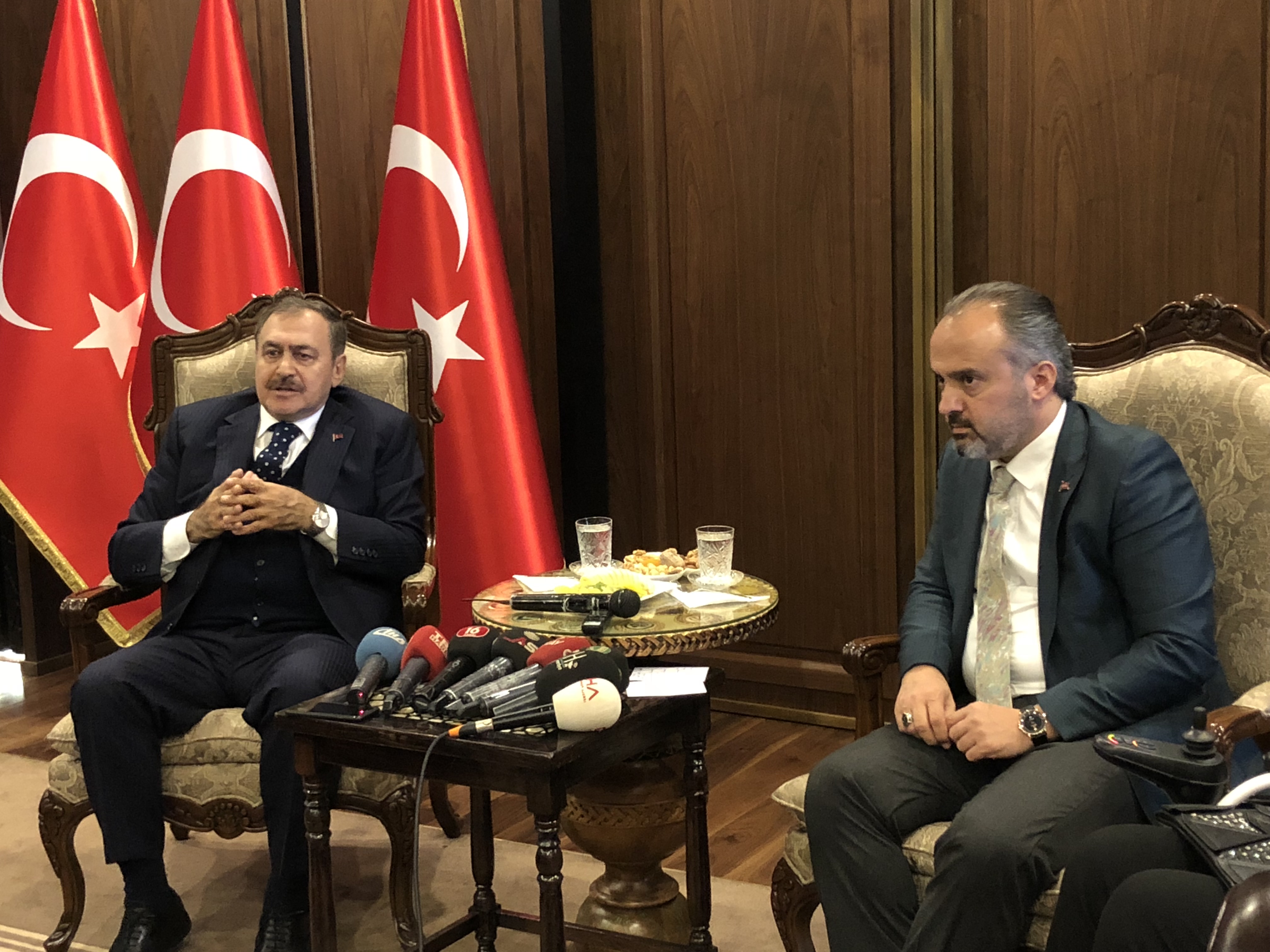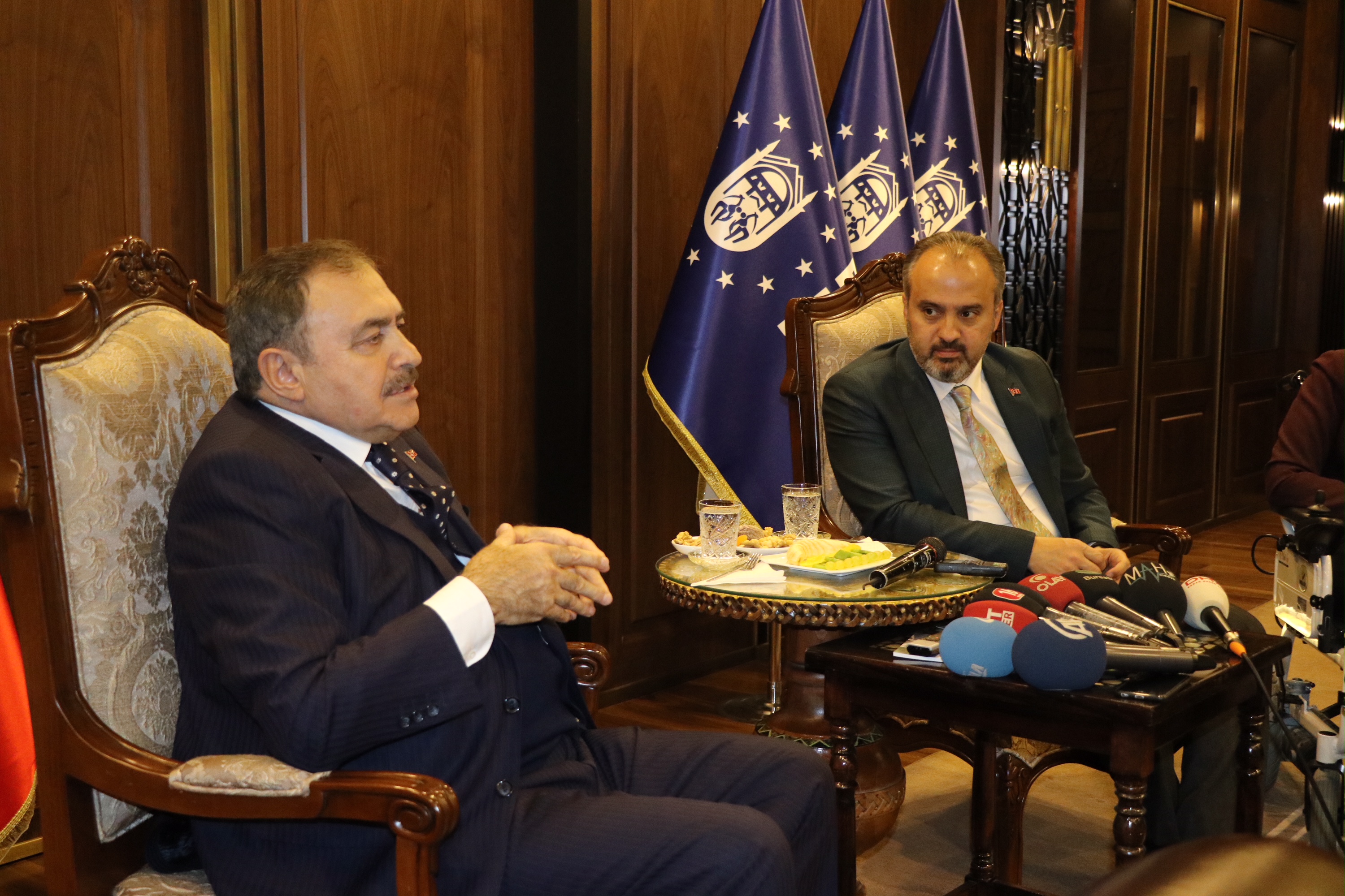 Büyükşehir Belediyesi başkanlık makamında gerçekleşen görüşmeye İçişleri eski Bakanı Efkan Ala, AK Parti Bursa İl Başkanı Ayhan Salman, AK Parti Bursa milletvekilleri Bennur Karaburun ve Emine Yavuz Gözgeç de katıldı. Orman ve Su İşleri Bakanı Veysel Eroğlu, ziyaretinin başlangıcında üstlendiği zor görev nedeniyle Başkan Aktaş’ı tebrik etti. Başkan Aktaş’ı İnegöl’den tanıdığını ve kendisiyle sıkı temaslarının bulunduğunu kaydeden Bakan Eroğlu, “Büyük düşünen ve çalışkan, hızlı ve pratik işler yapan bir başkan. İnegöl’de çok büyük tesislere mührünü vurdu. Bursa için bir değerdir. Yeni görevinin hayırlı ve uğurlu olmasını gönülden temenni ediyorum” diye konuştu.